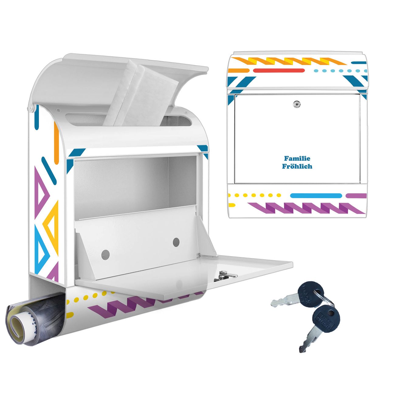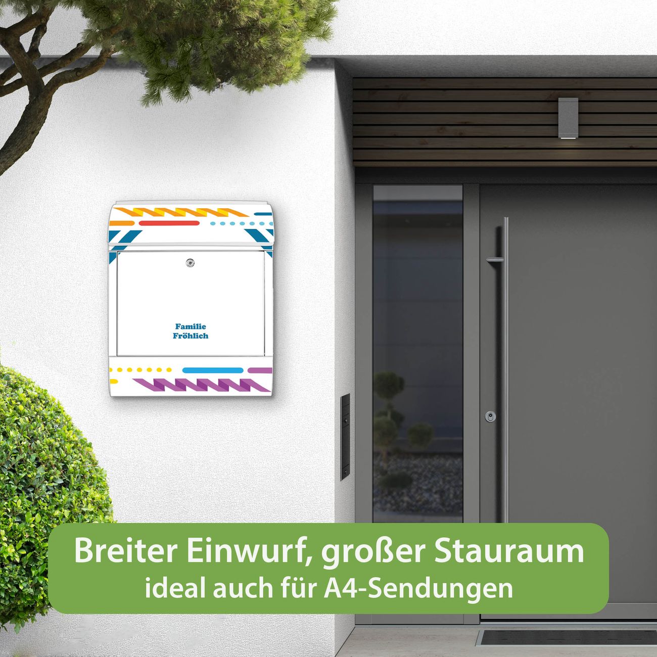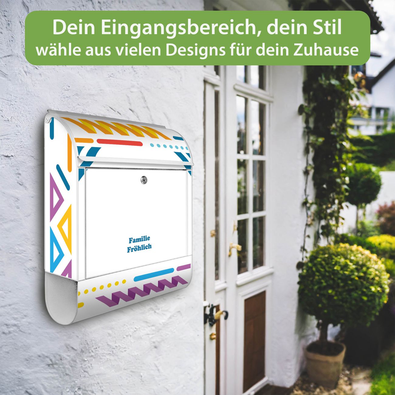 Großer Stahl Briefkasten Motiv Bunter Geometrischer Rahmen
