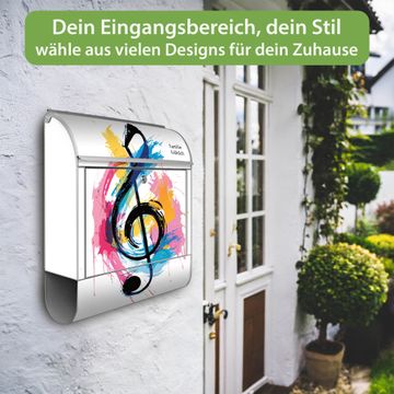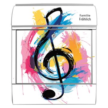 Großer Stahl Briefkasten Motiv Bunter Notenschlüssel