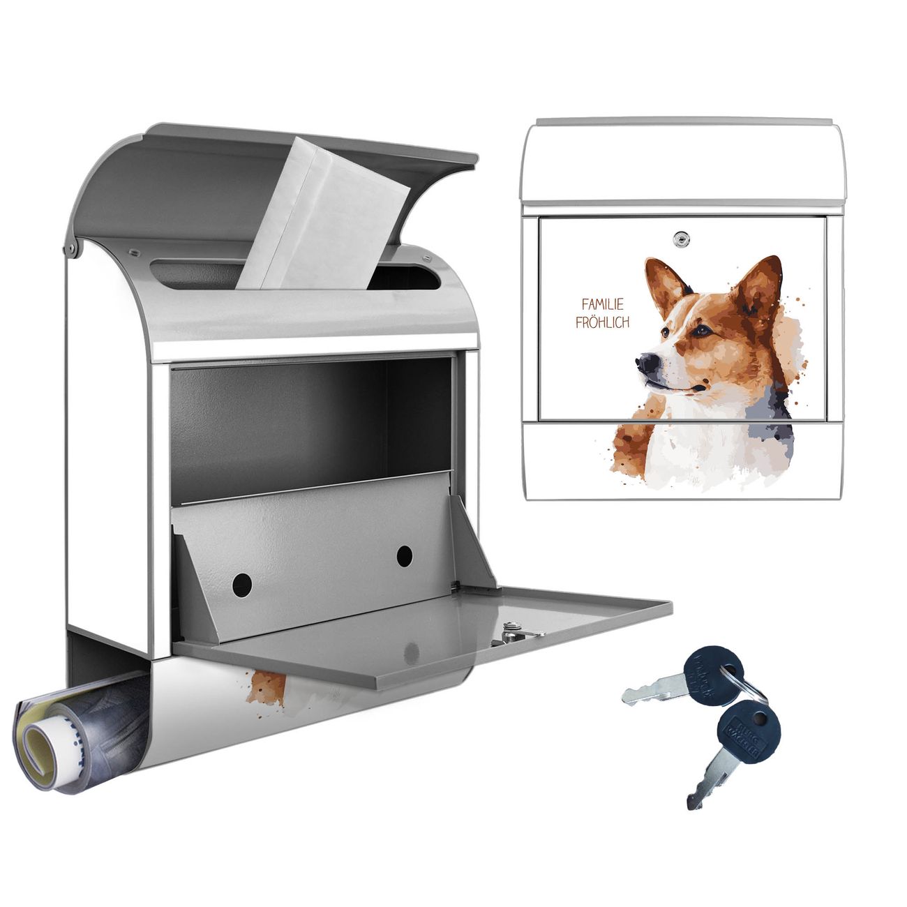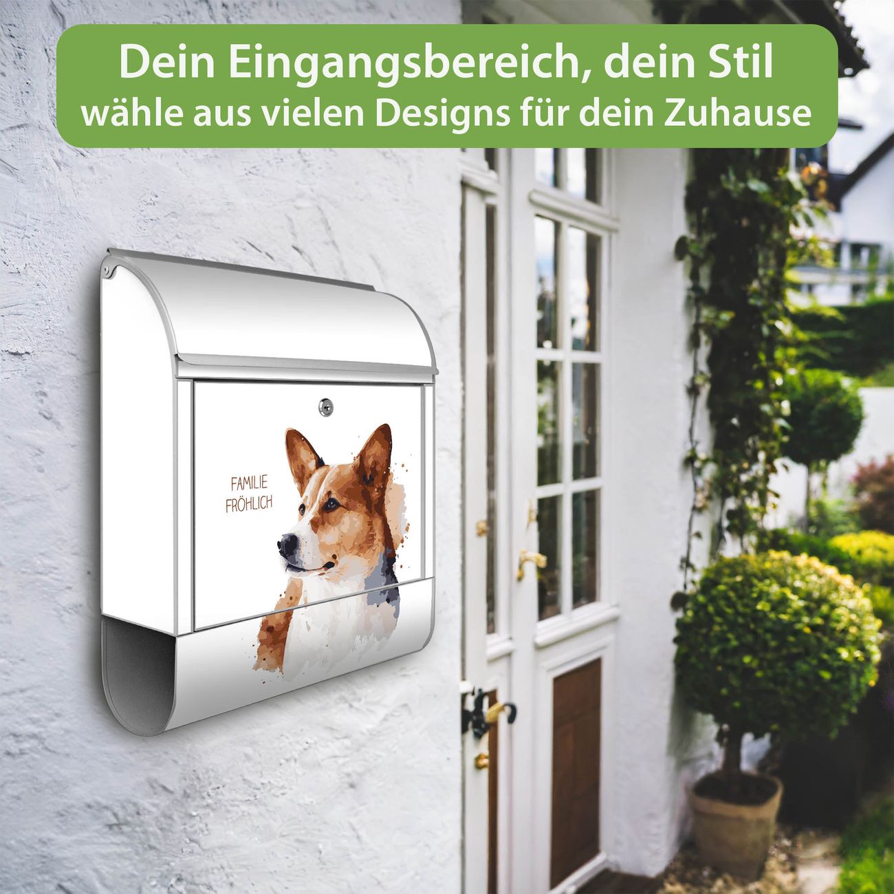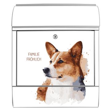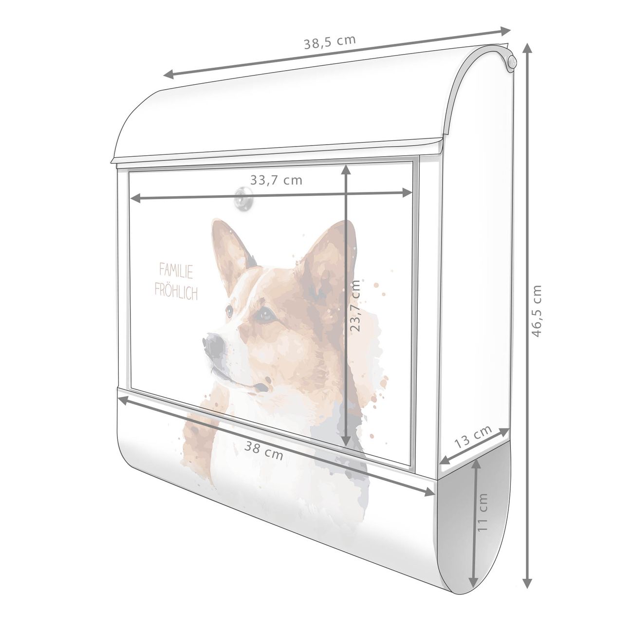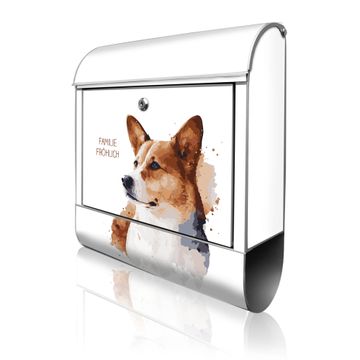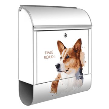 Großer Stahl Briefkasten Motiv Corgi Porträt Aquarell