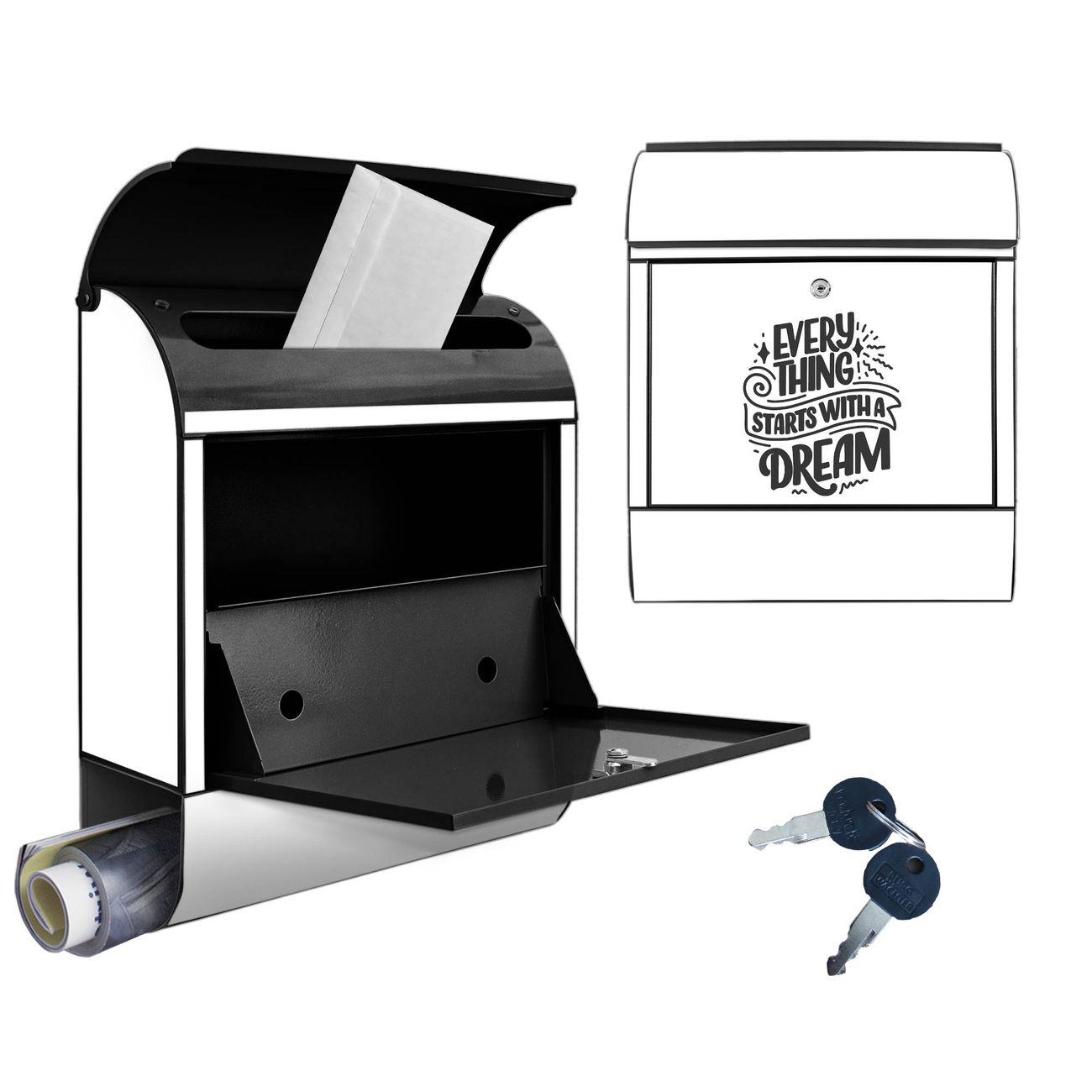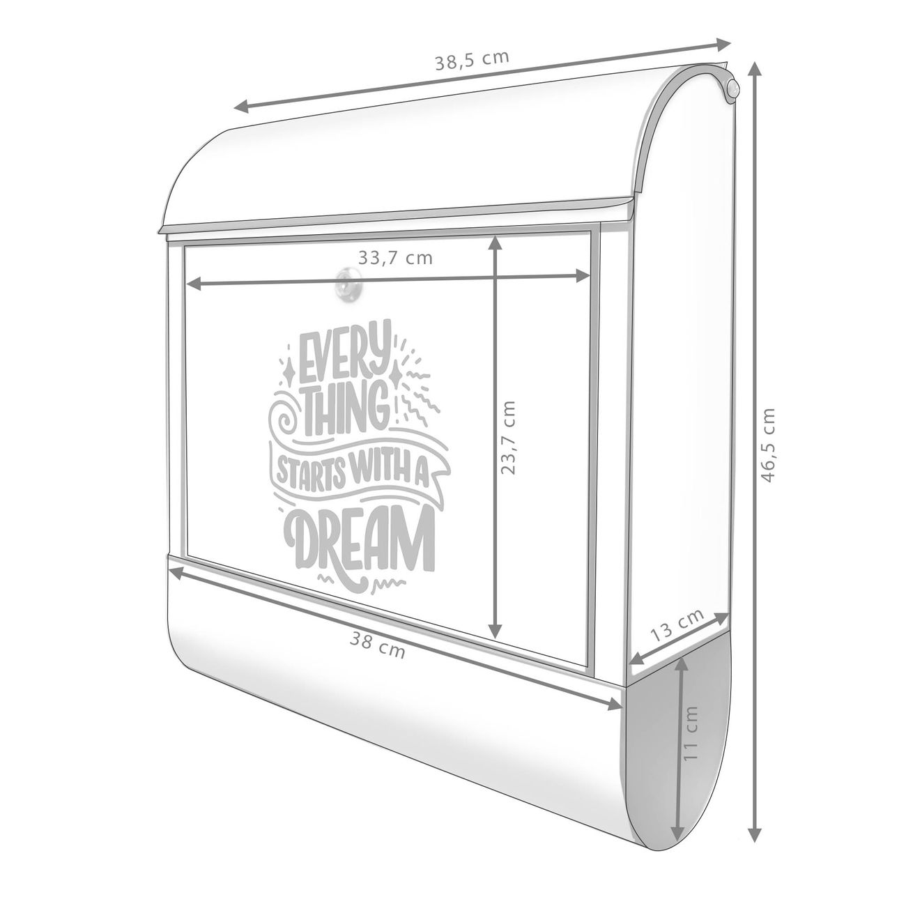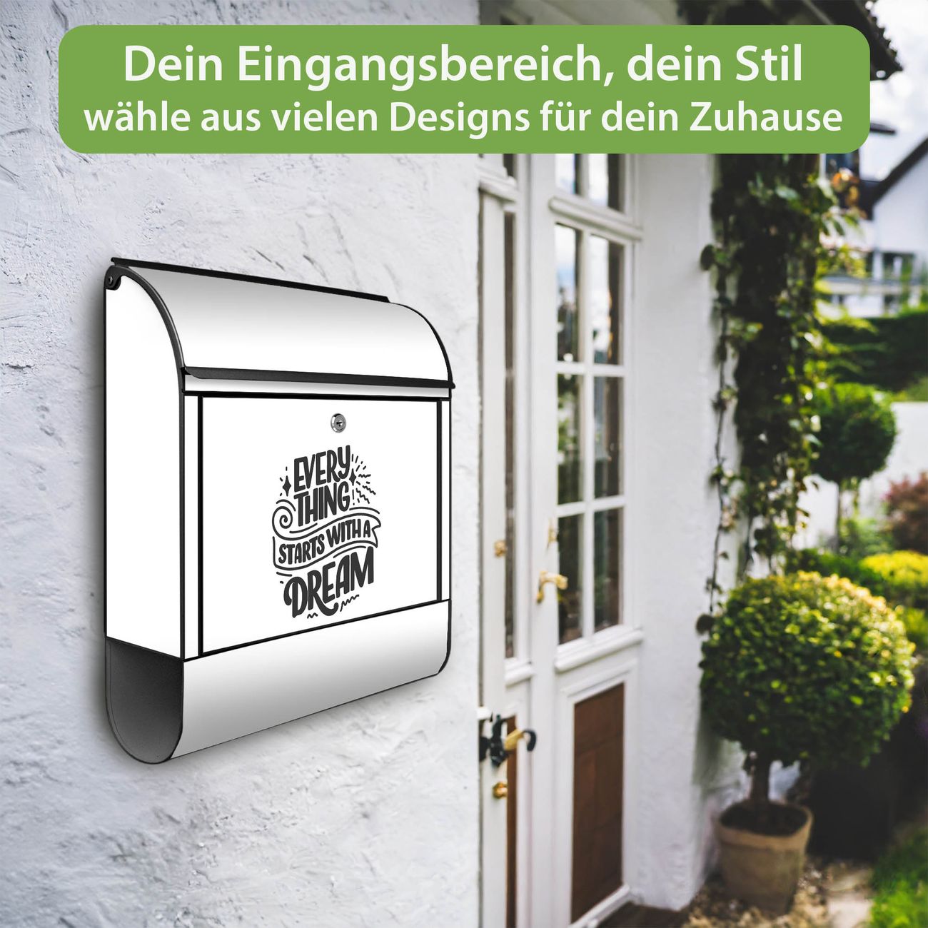 Großer Stahl Briefkasten Motiv Everything starts with a Dream 2