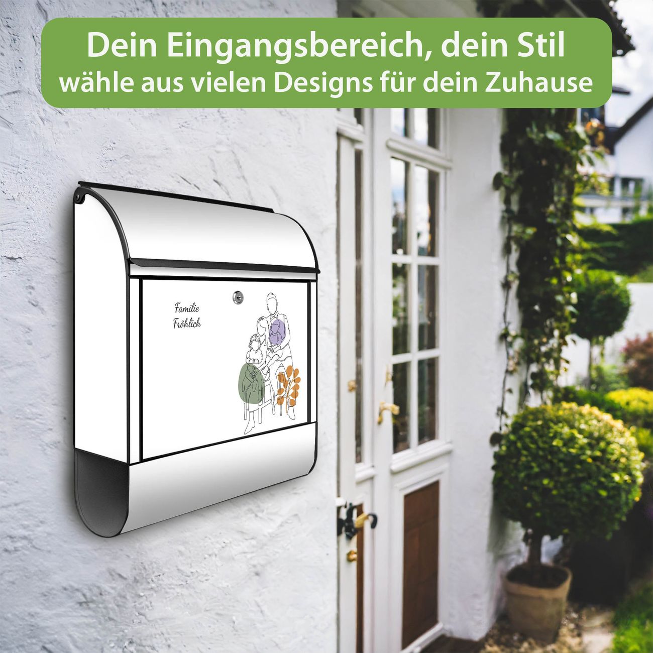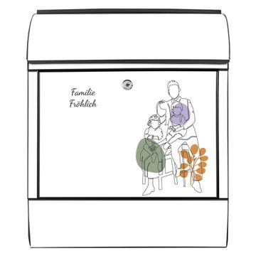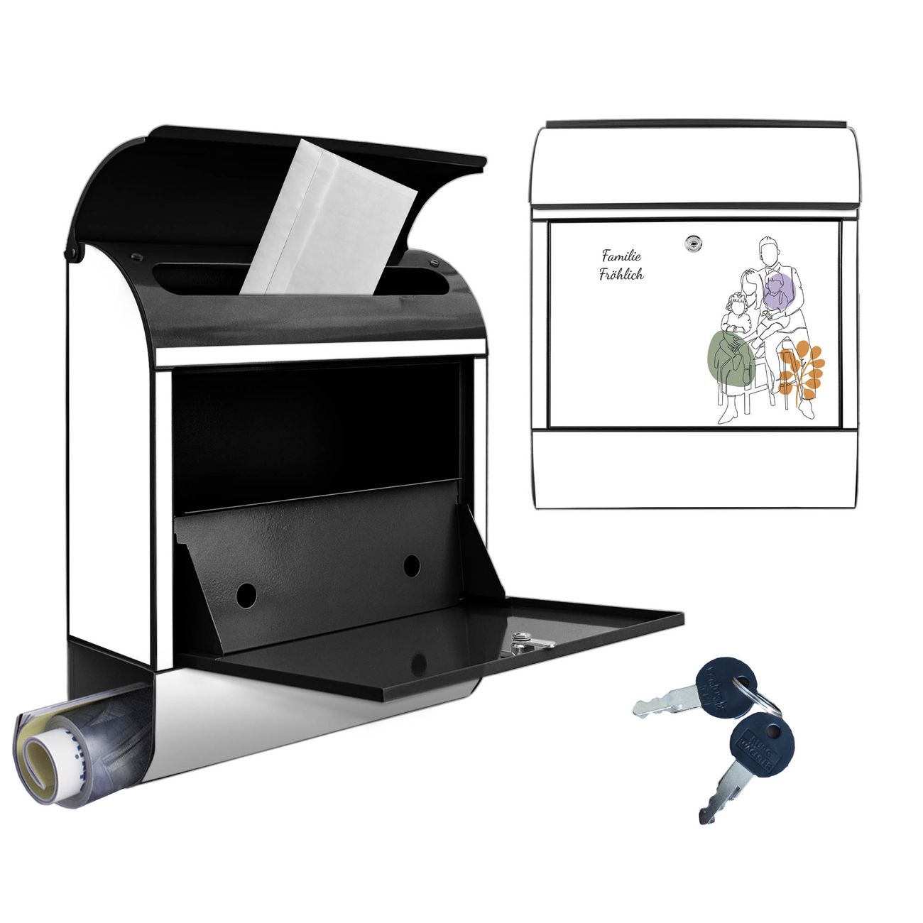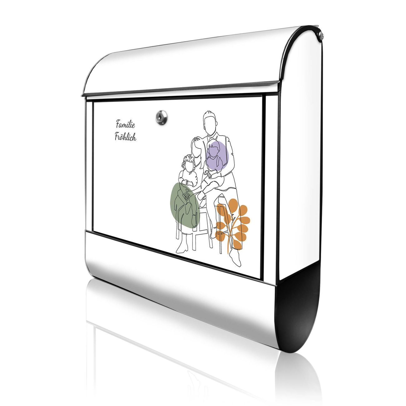 Großer Stahl Briefkasten Motiv Familienglück Lineart