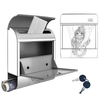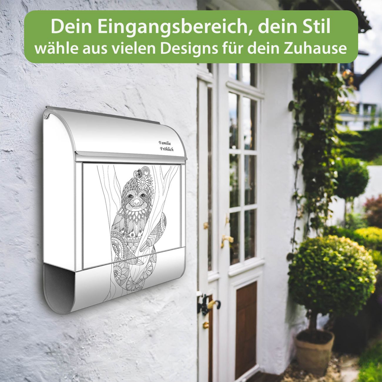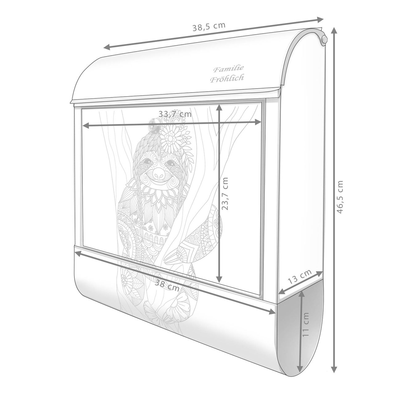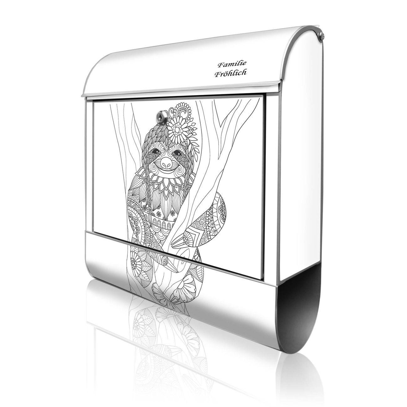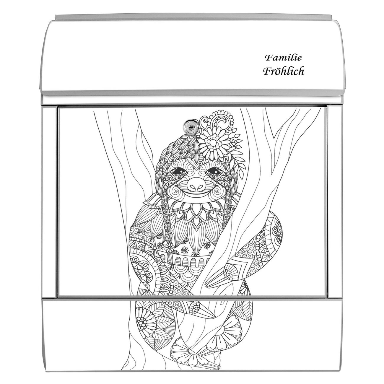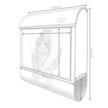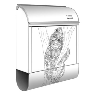 Großer Stahl Briefkasten Motiv Faultier gezeichnet 2