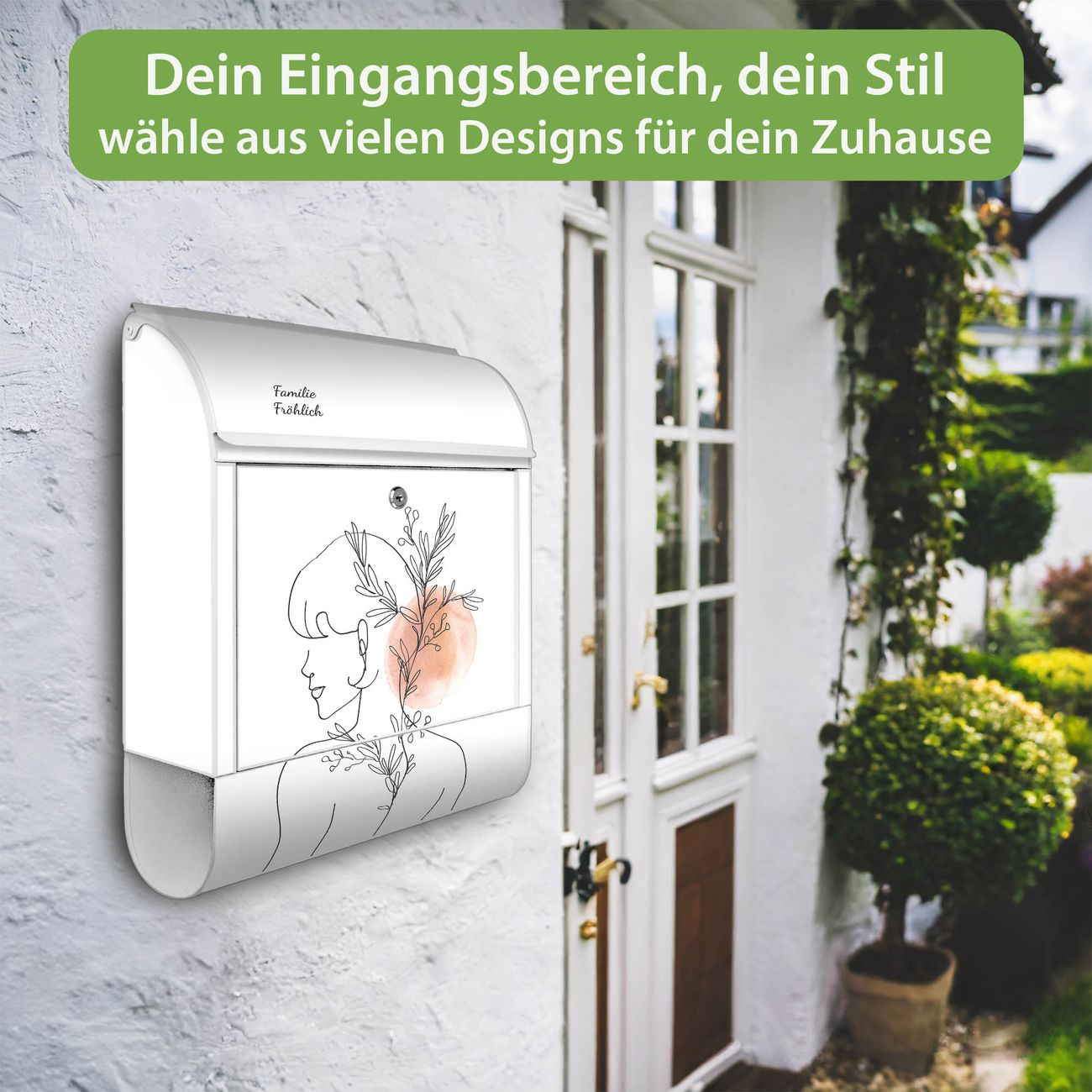 Großer Stahl Briefkasten Motiv Feminin Floral Lineart