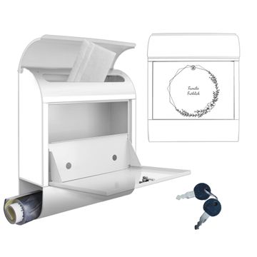 DESIGN: Der Postkasten mit Motiv Motiv Floral Geometric Frame hat ein sehr ansprechendes und ausgefallenes Design, damit entlocken Sie Ihren Nachbarn und dem Postboten ein Lächeln. Heben Sie Sich von der tristen grauen Masse ab, ohne auf Funktionalität zu verzichten. DETAILS: Der Postkasten besteht aus pulverbeschichtetem Stahl. Er ist 38x46x12,5cm groß. Das Motiv besteht aus einer wetter- und UV-resistenten Folie, die mit einem Schutzlaminat überzogen ist, sodass der Briefkasten zusätzlich vor Kratzern geschützt ist. Der Briefkasten wird mit Montagematerial, zusätzlich zwei Schlüssel sowie einer Bohrschablone geliefert. NUTZEN: Sie können diesen Briefkasten sowohl als Wandbriefkasten montieren oder einen passenden Ständer kaufen und als Standbriefkasten einbetonieren. Die Größe bietet genügend Platz für Sendungen aller Art, der Einwurf fasst auch größere A4 Sendungen. BANJADO: Ihr Briefkasten wird in Sachsen in einer kleinen Manufaktur von Hand veredelt. Die Motivfolie ist lösungsmittelfrei und schutzlaminiert für einen langen Halt. Wir legen großen Wert auf die Verbindung von Funktionalität und Design. Sie erhalten Handarbeit aus Sachsen.