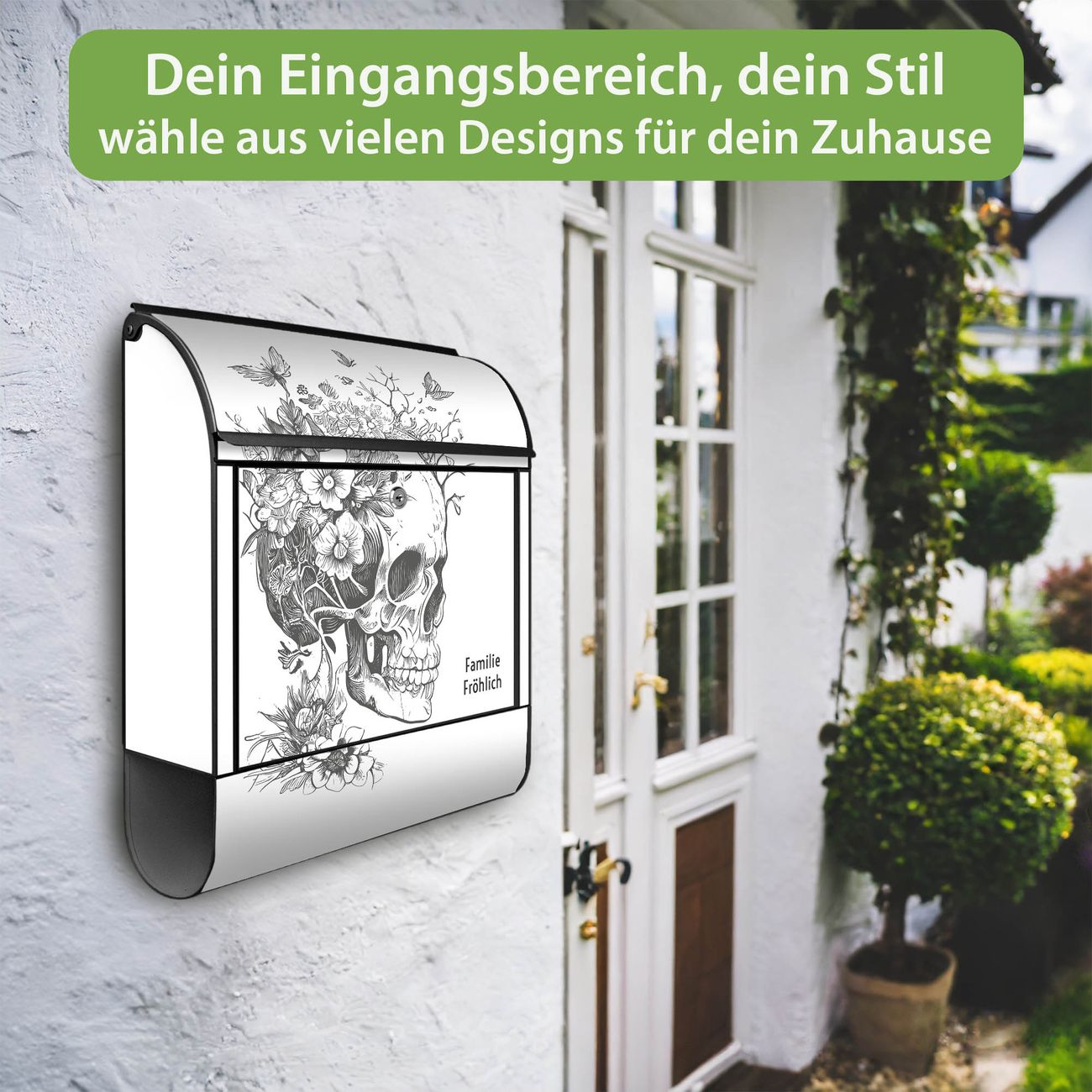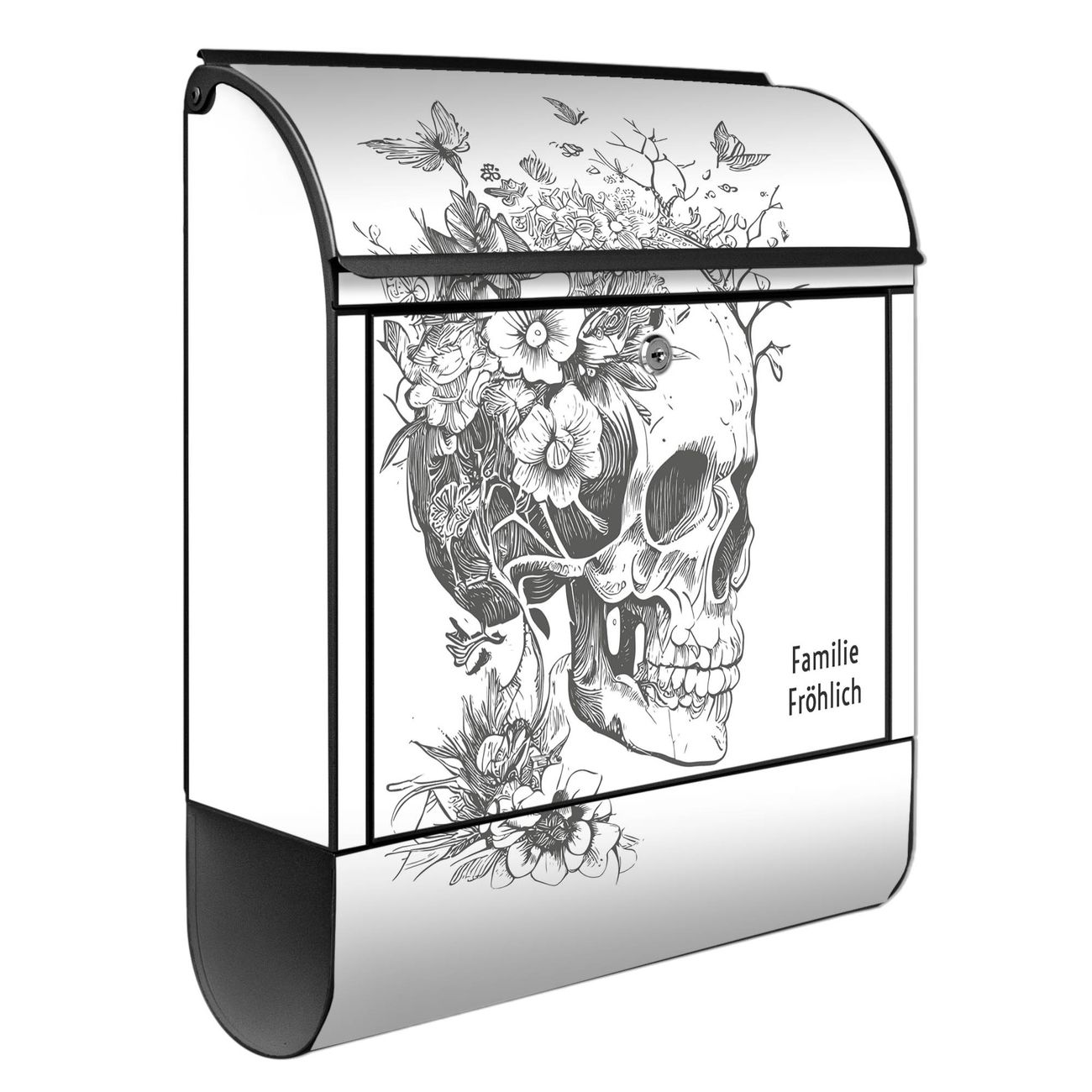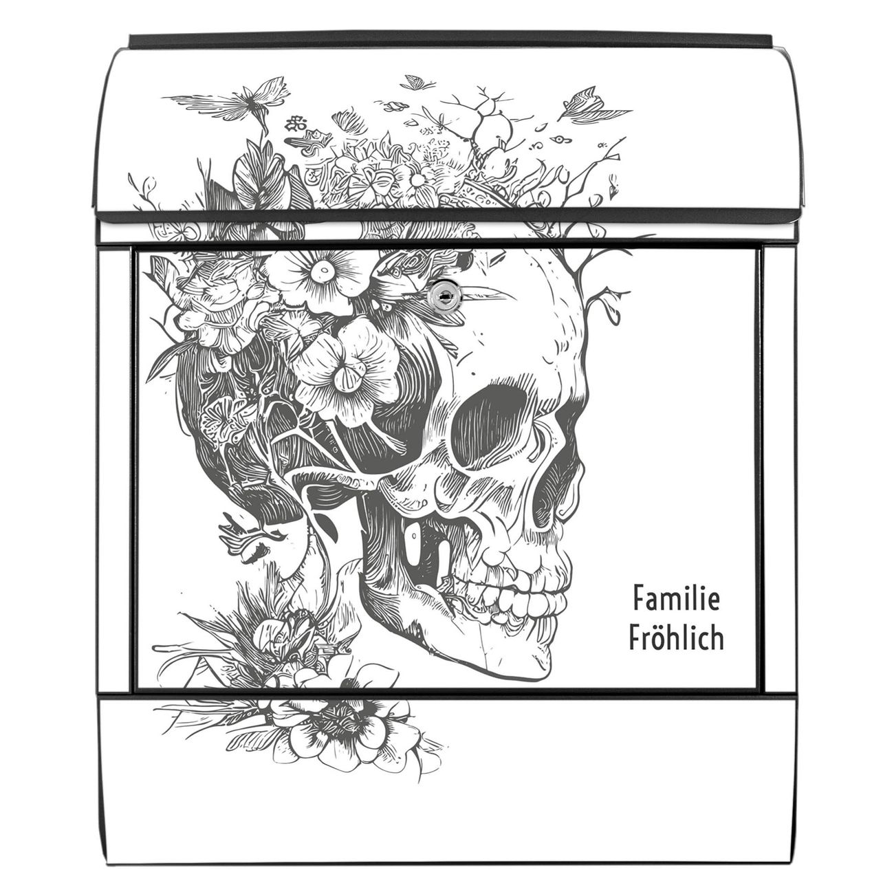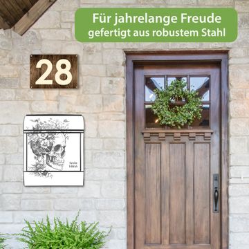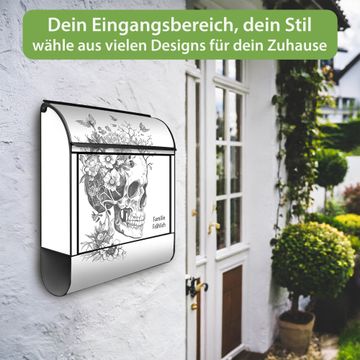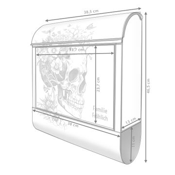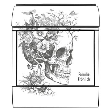 Großer Stahl Briefkasten Motiv Floral Skull