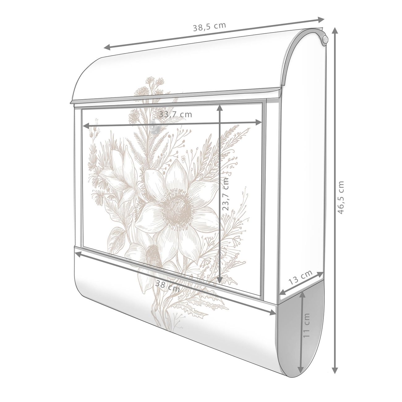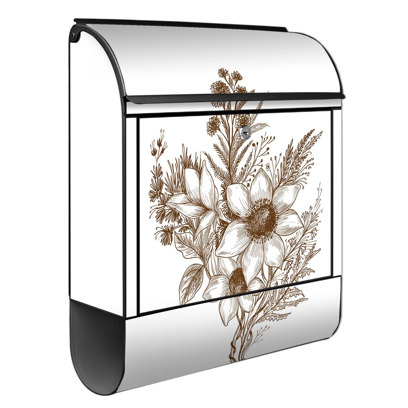 Großer Stahl Briefkasten Motiv Florale Zeichnung