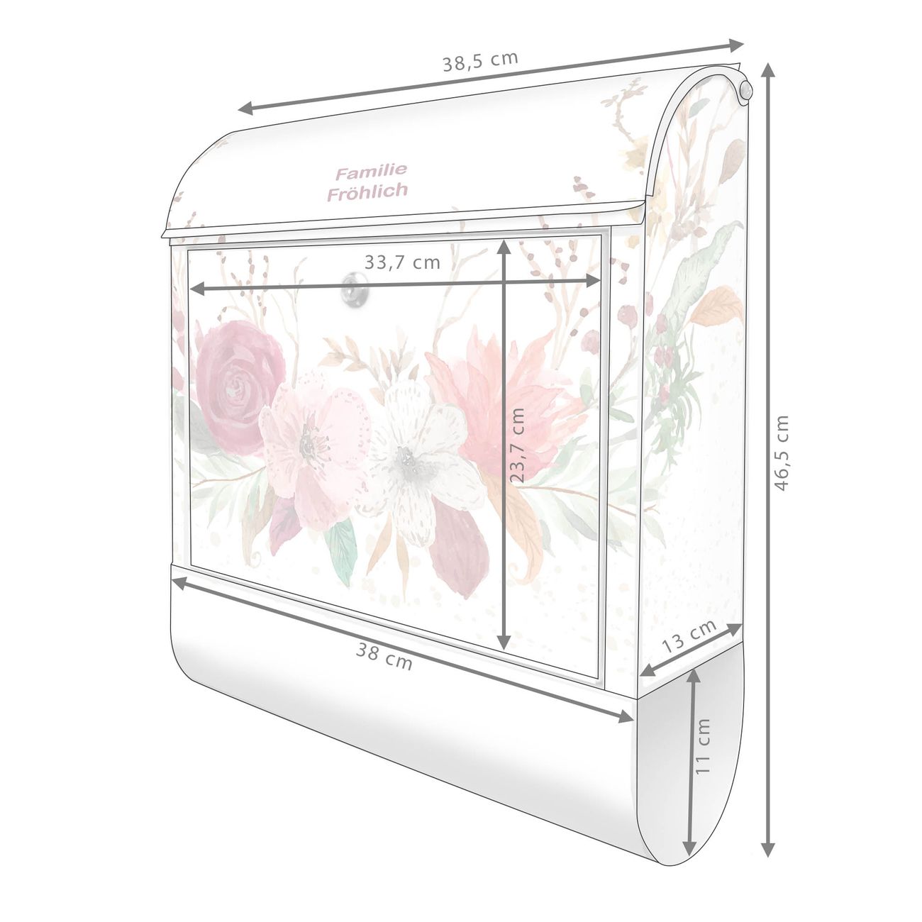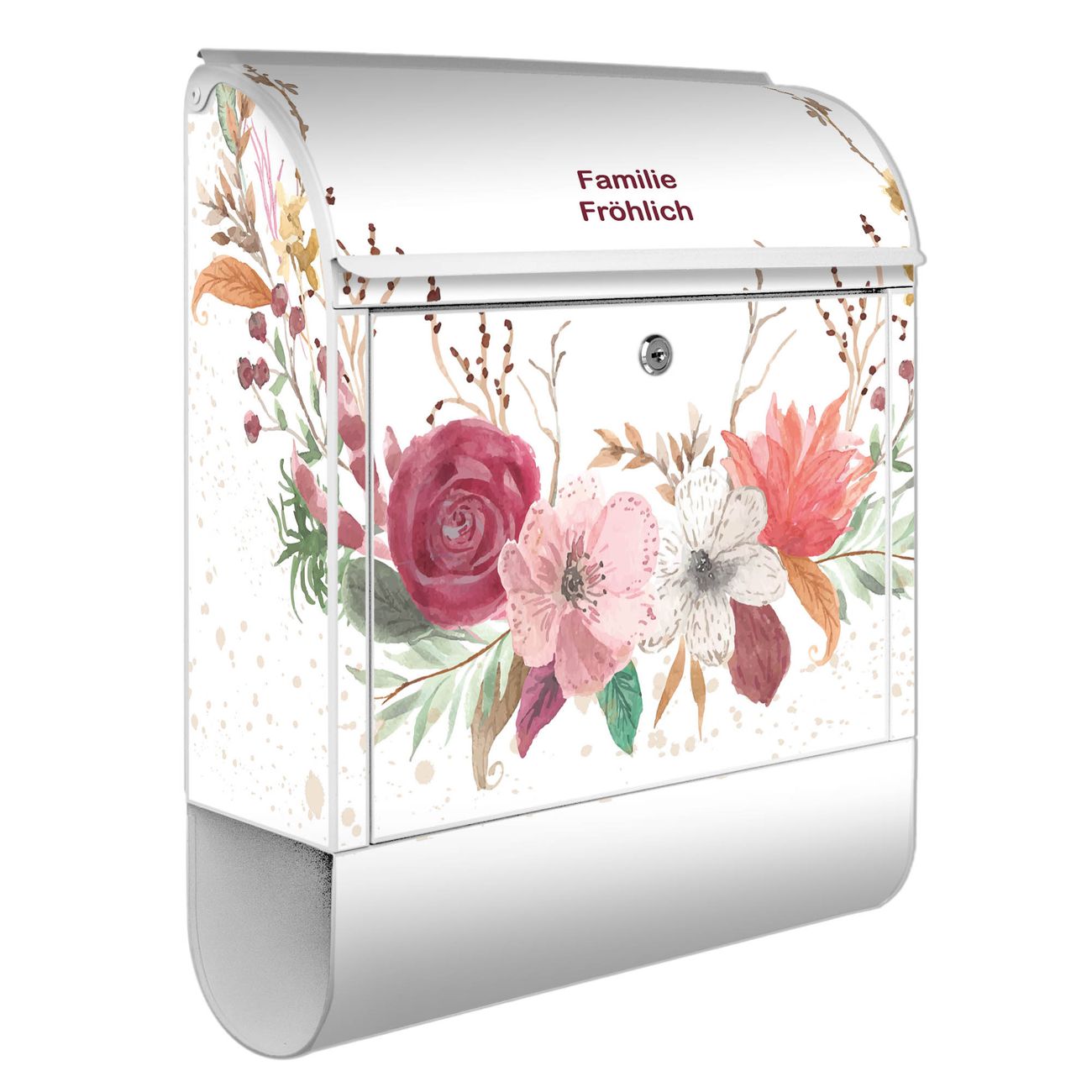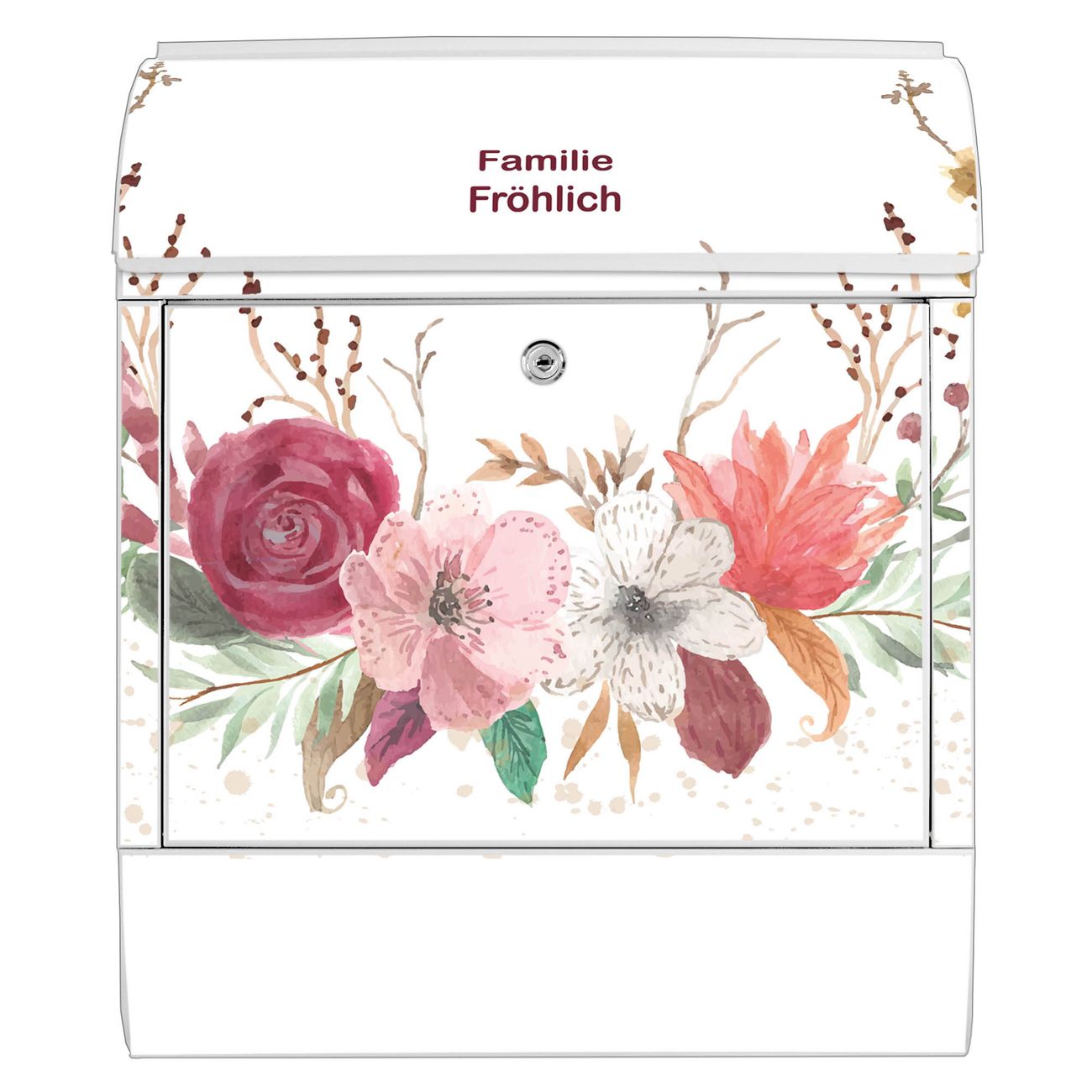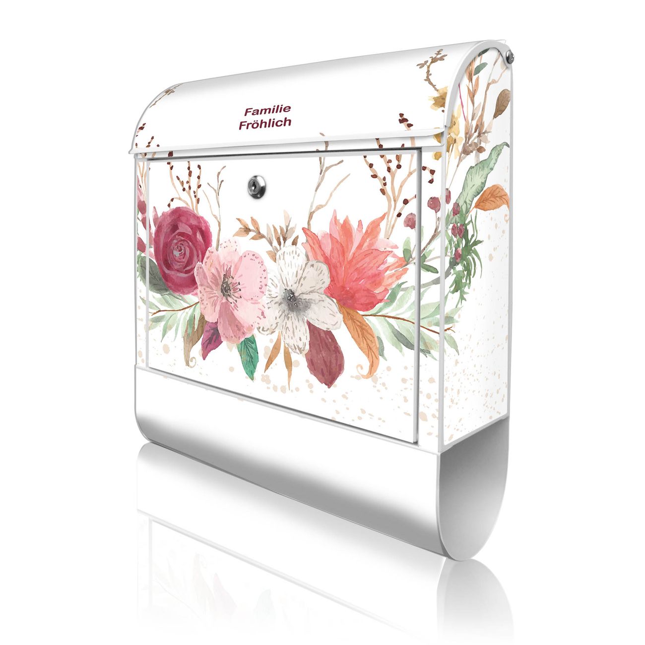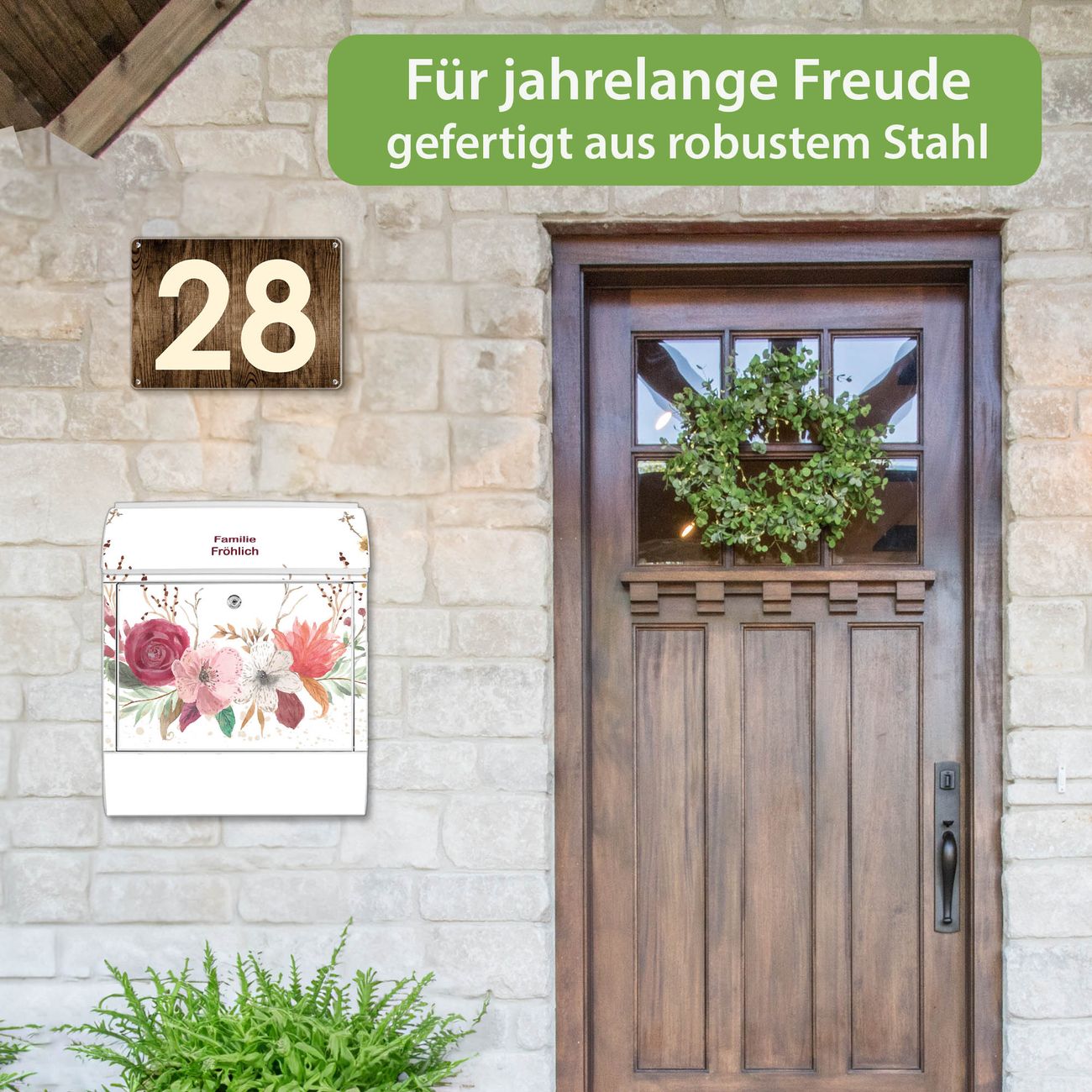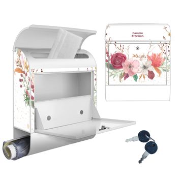 Großer Stahl Briefkasten Motiv Floraler Blumenkranz