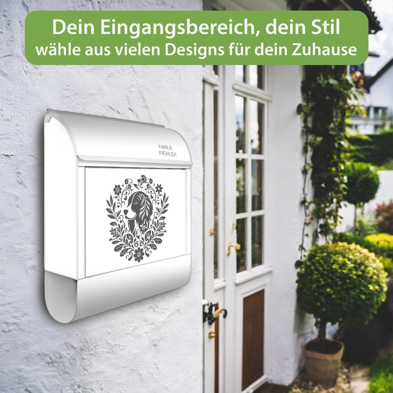 Großer Stahl Briefkasten Motiv Floraler Hund