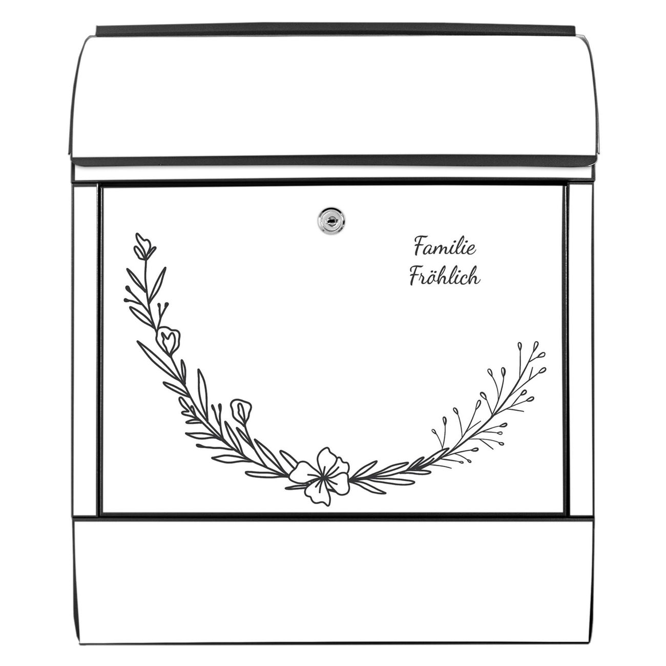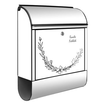 Großer Stahl Briefkasten Motiv Floraler Linienkranz