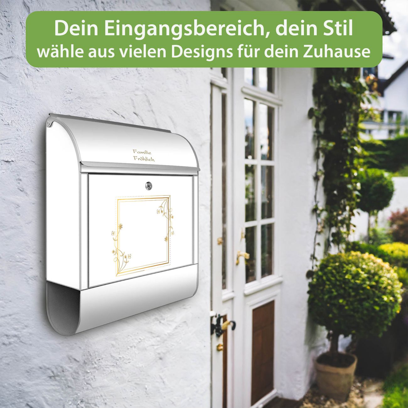 Großer Stahl Briefkasten Motiv Floraler Rahmen 2