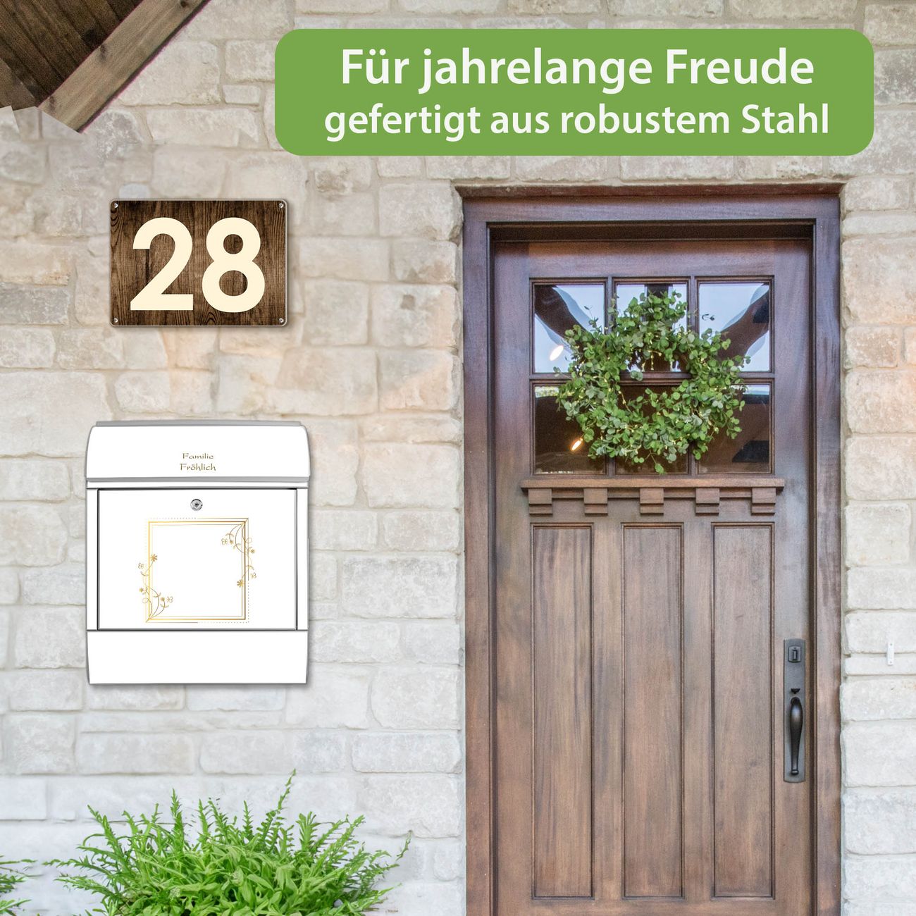 Der Vorschau-Text Familie Fröhlich wird durch Ihren persönlichen Wunschtext ersetzt. Die Schriftart und Farbe bleiben gleich wie in der Vorschau.