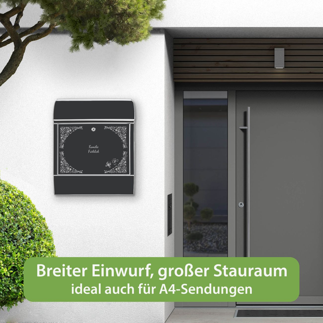 Großer Stahl Briefkasten Motiv Floraler Rahmen 3