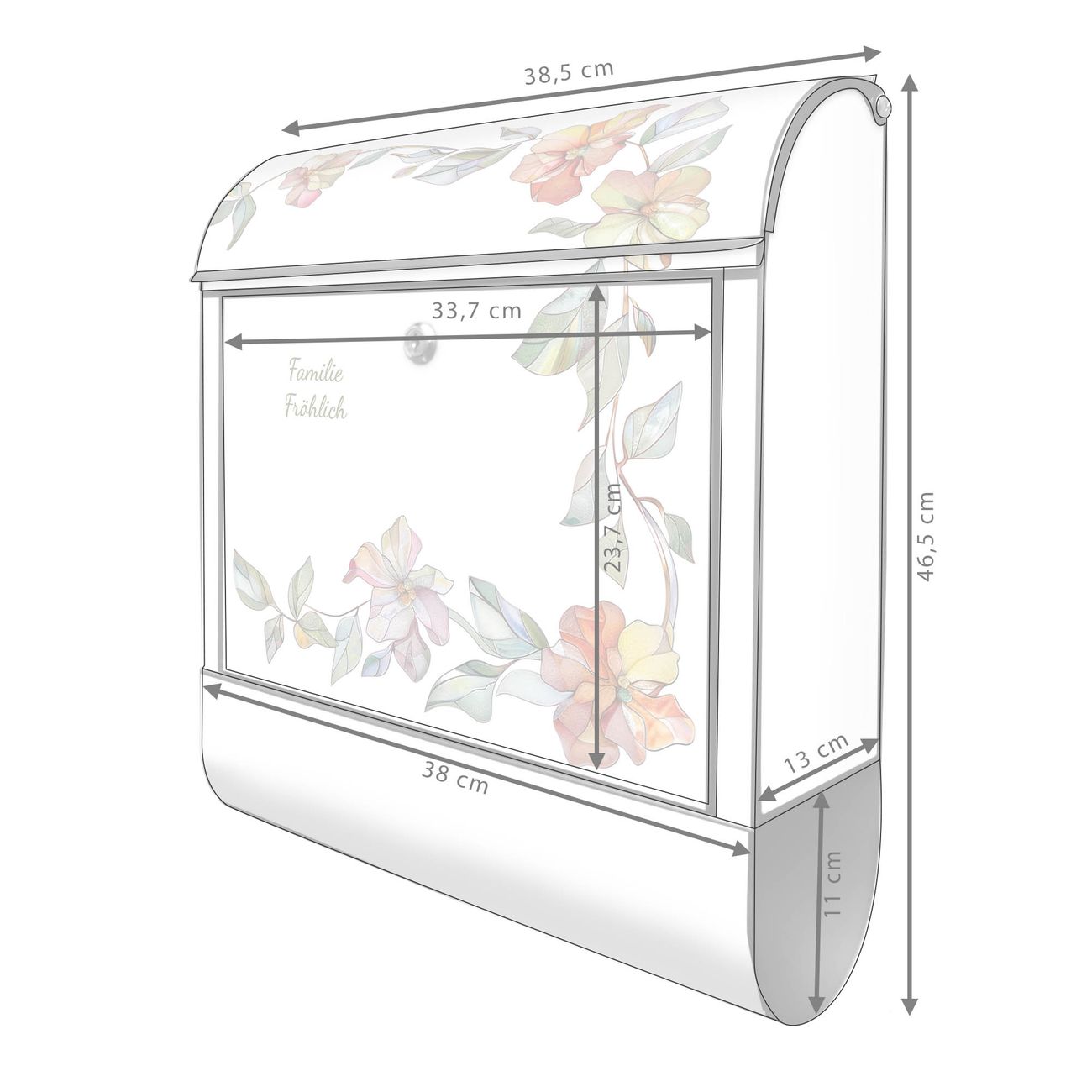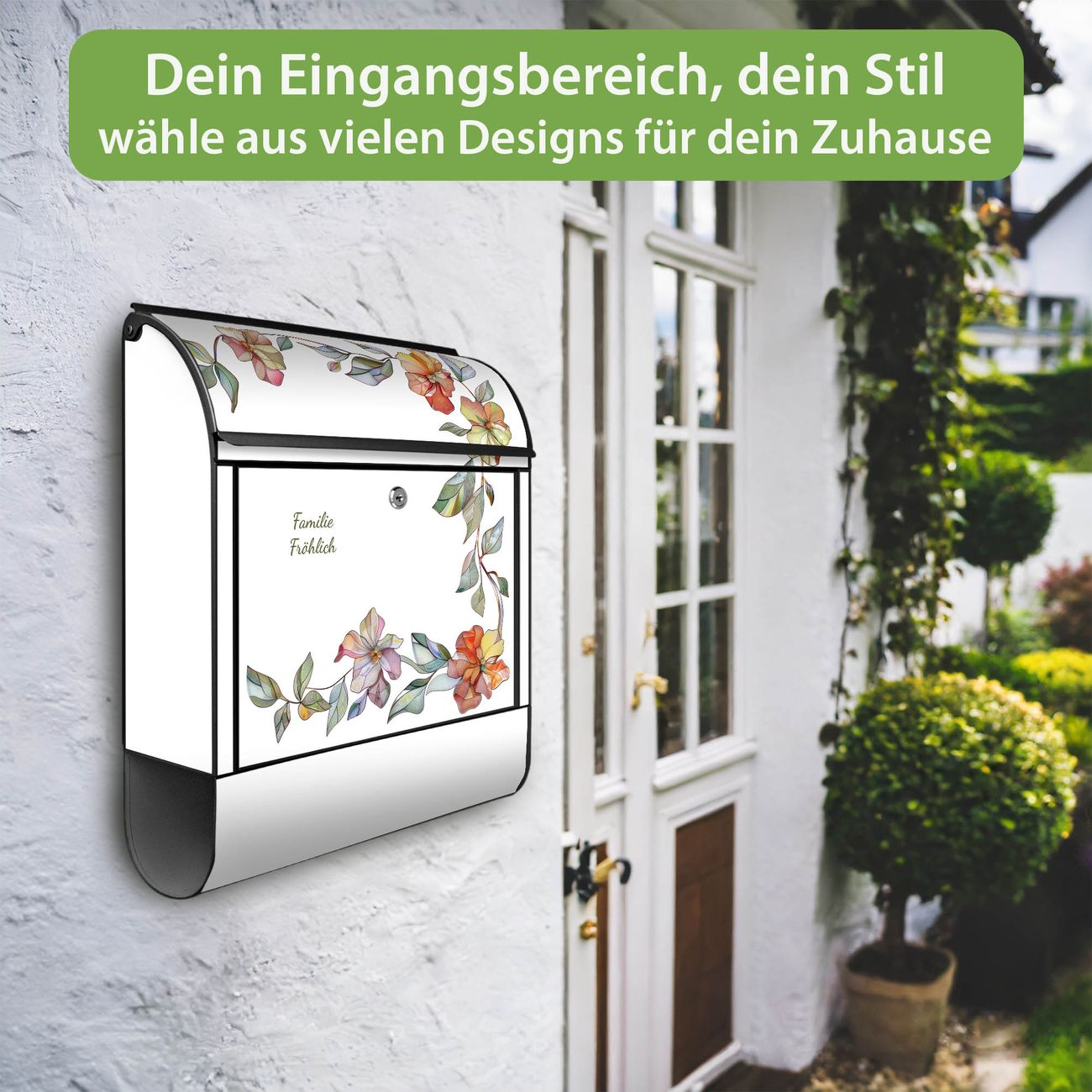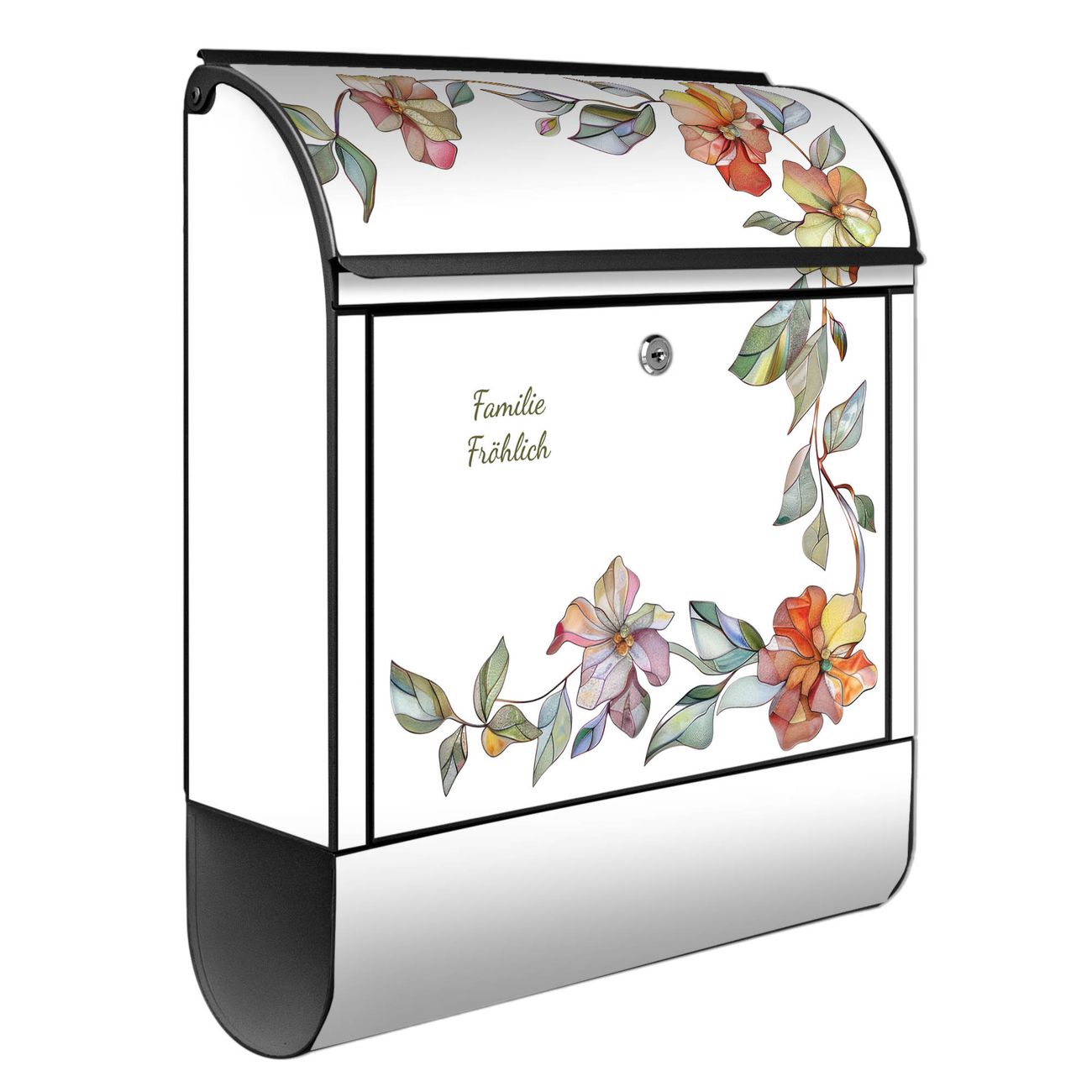 Großer Stahl Briefkasten Motiv Floraler Rahmen