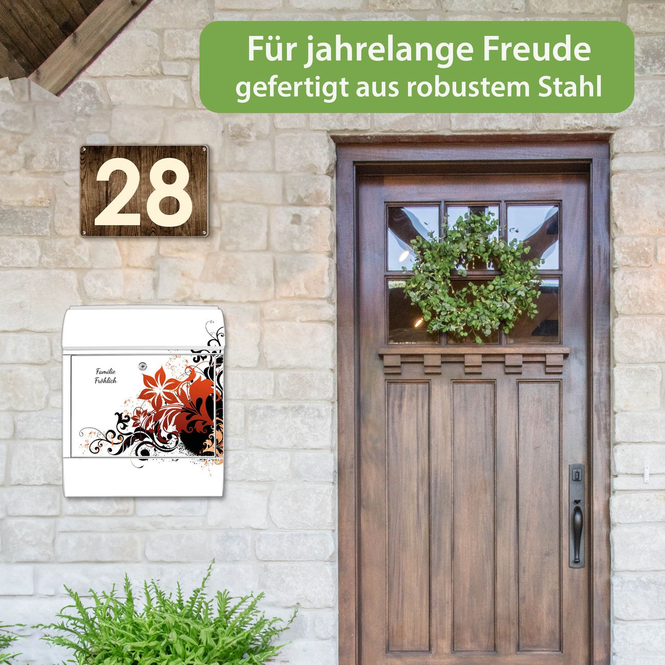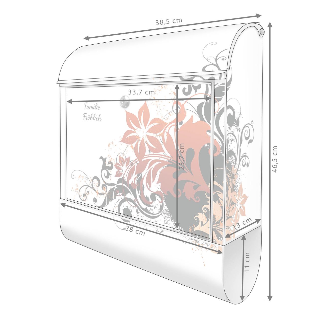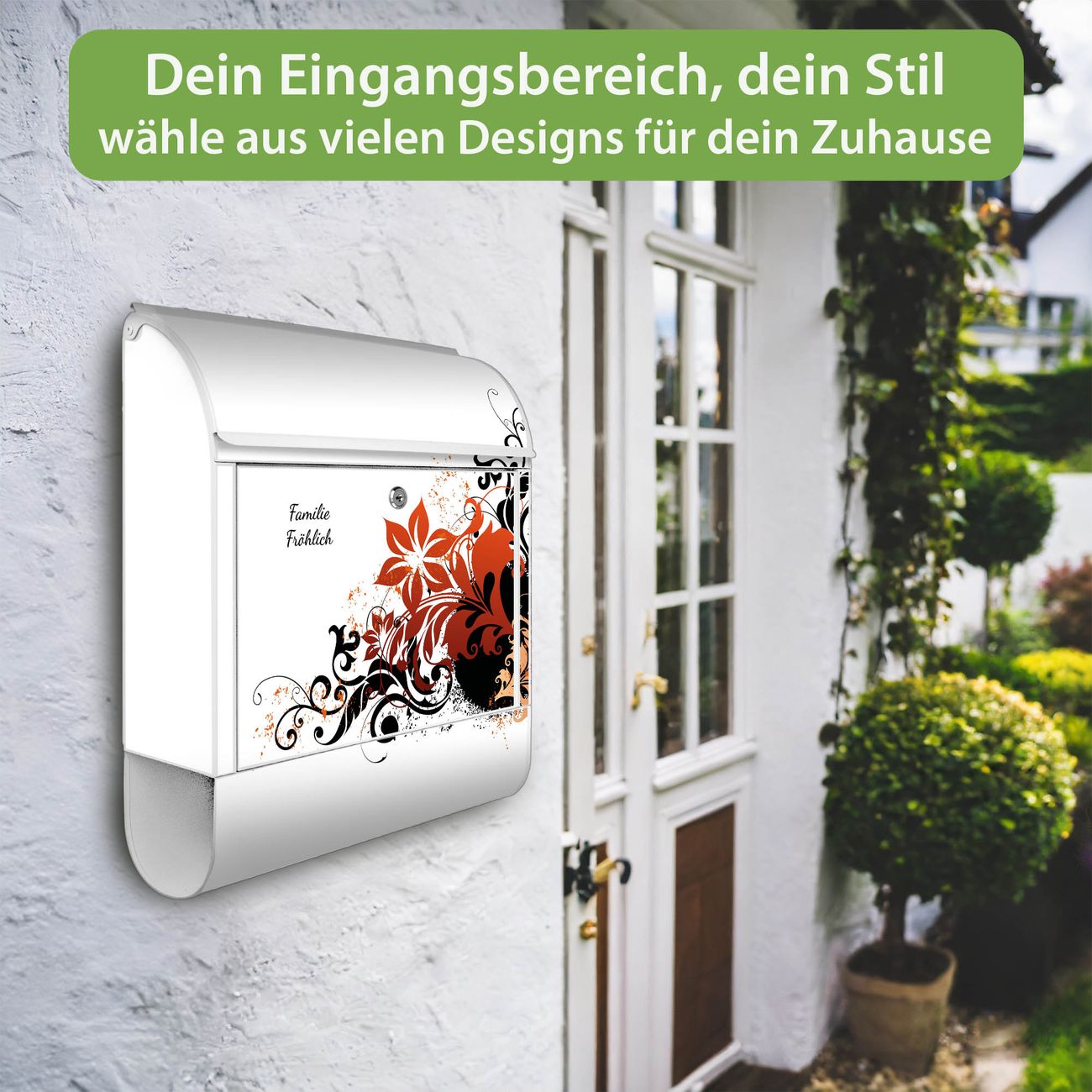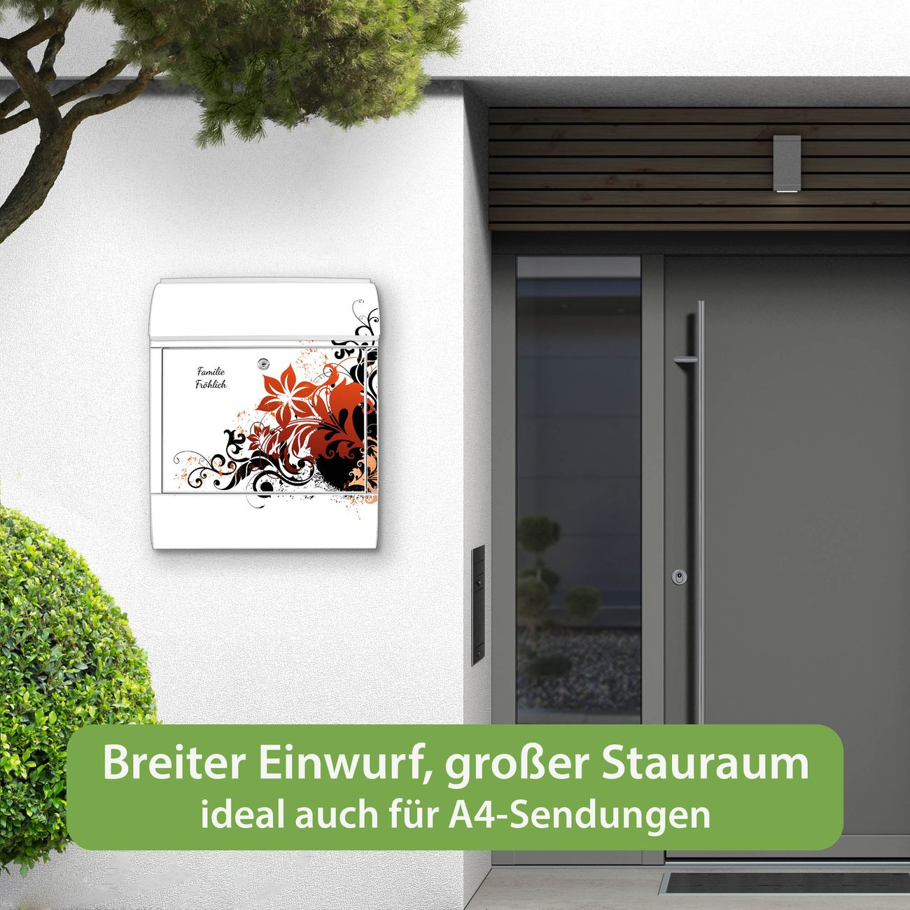 Großer Stahl Briefkasten Motiv Florales Ornament 2