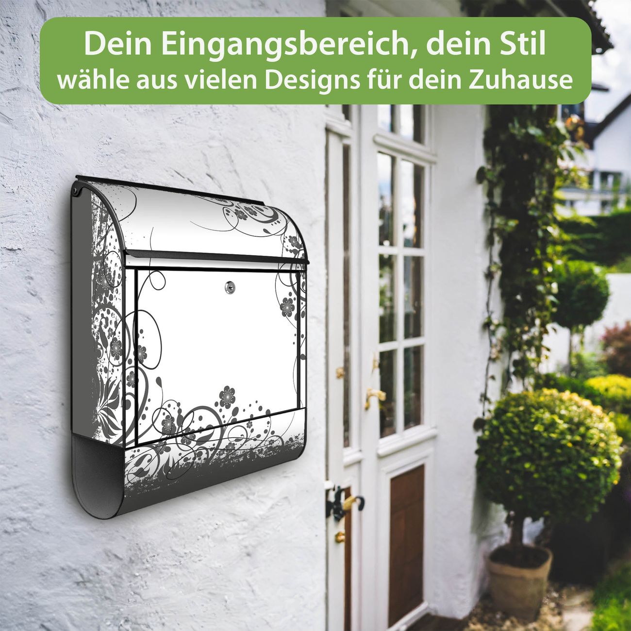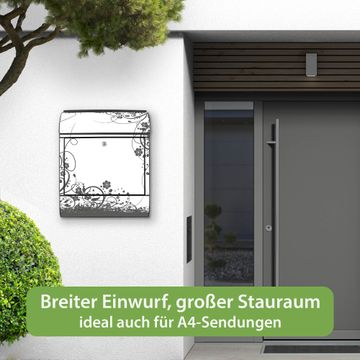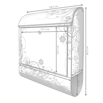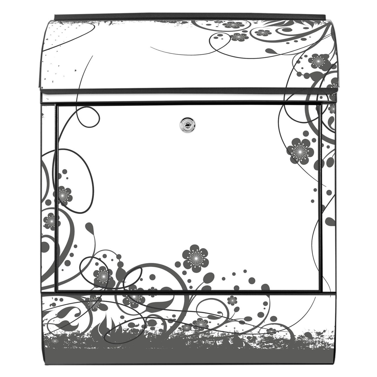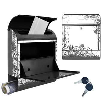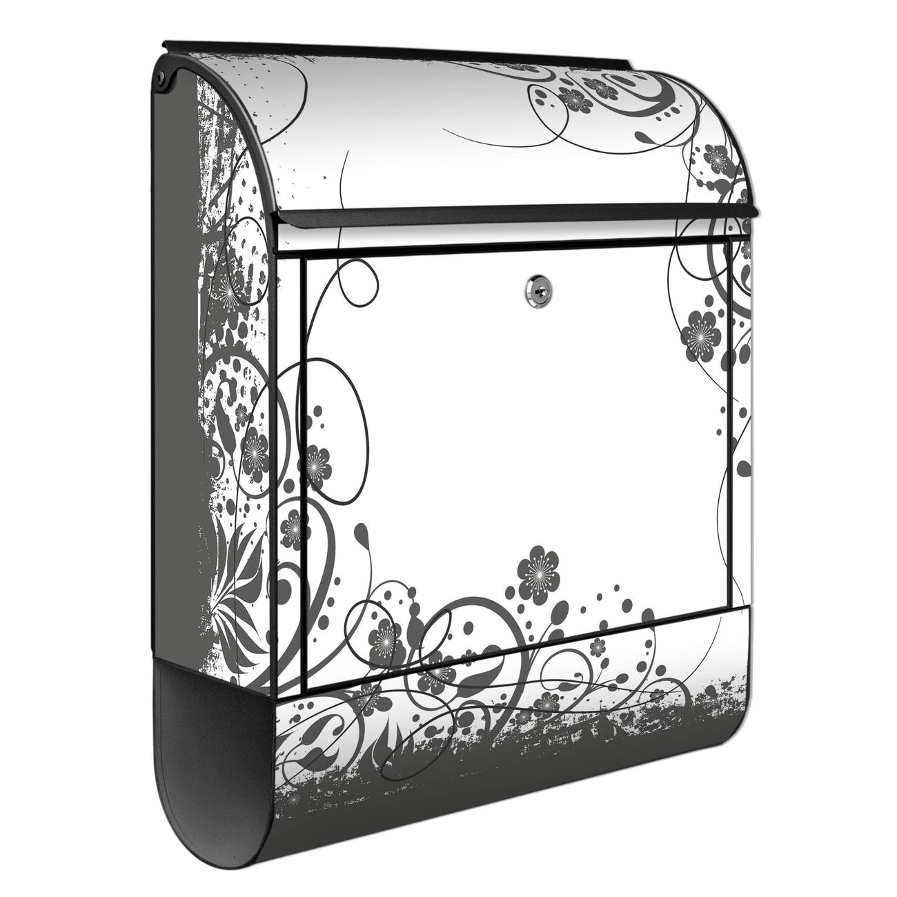 Großer Stahl Briefkasten Motiv Florales Schwarz-Weiß Muster