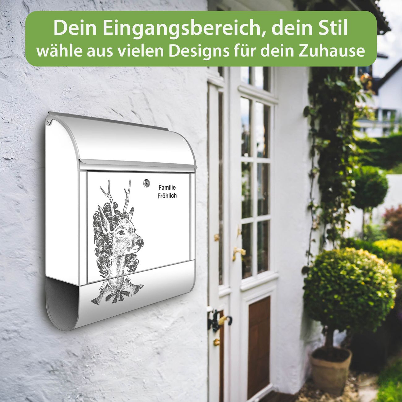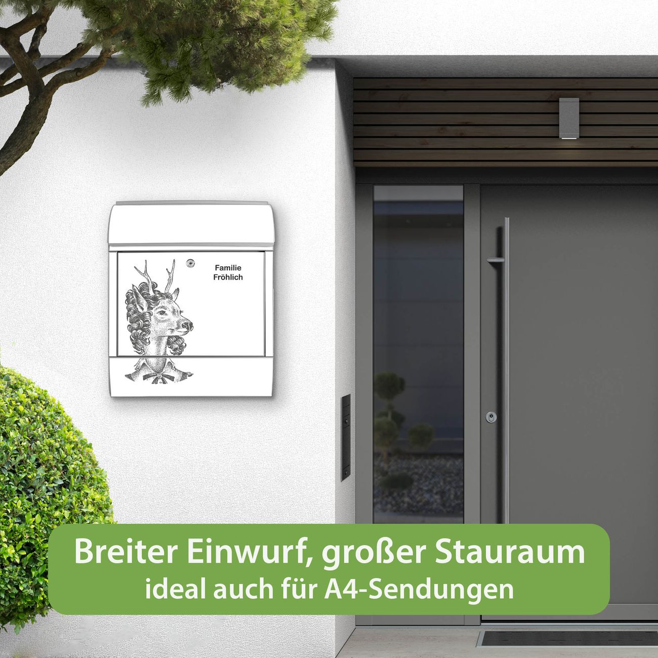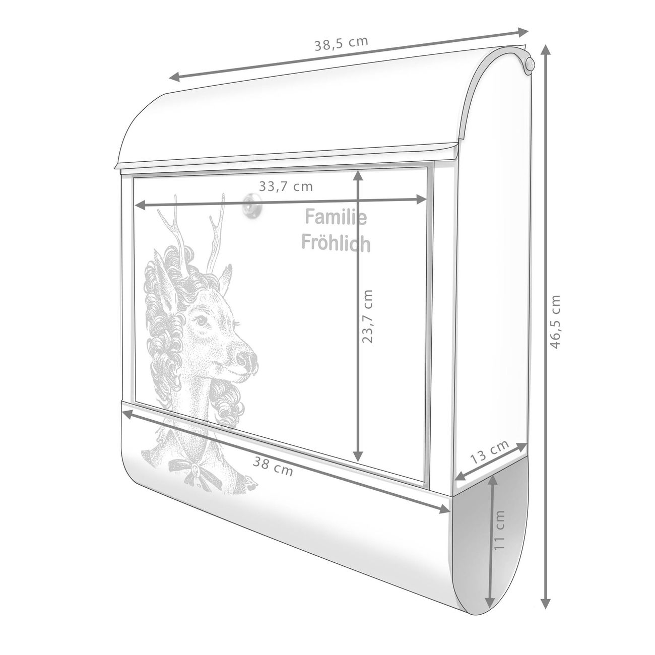 Großer Stahl Briefkasten Motiv Frau Hirsch 2