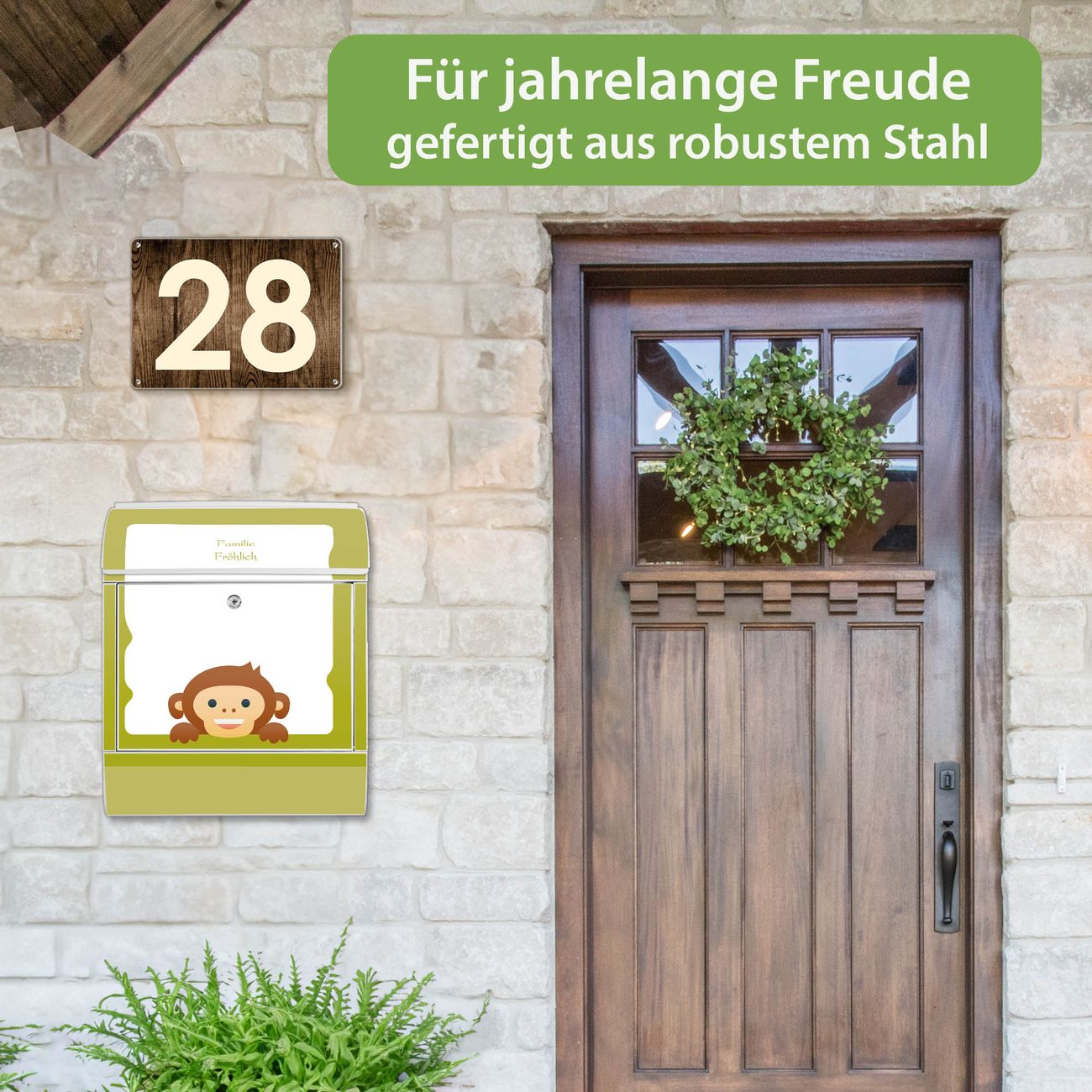 Großer Stahl Briefkasten Motiv Fröhlicher Affe