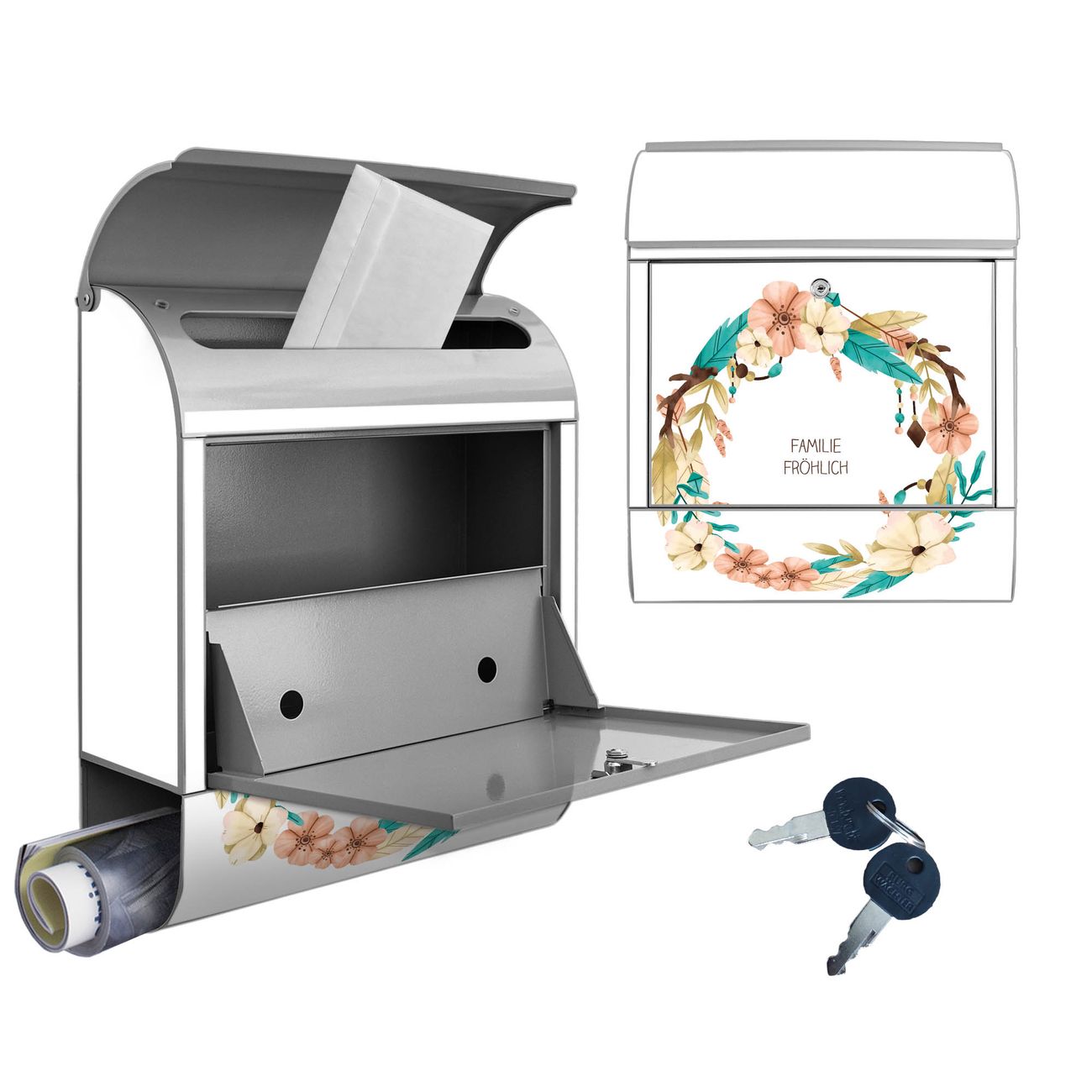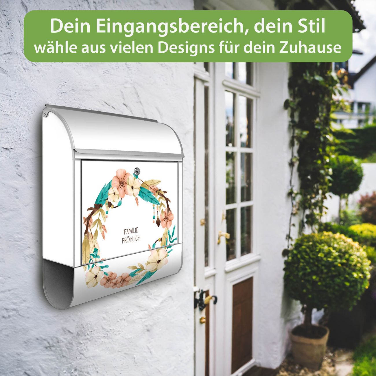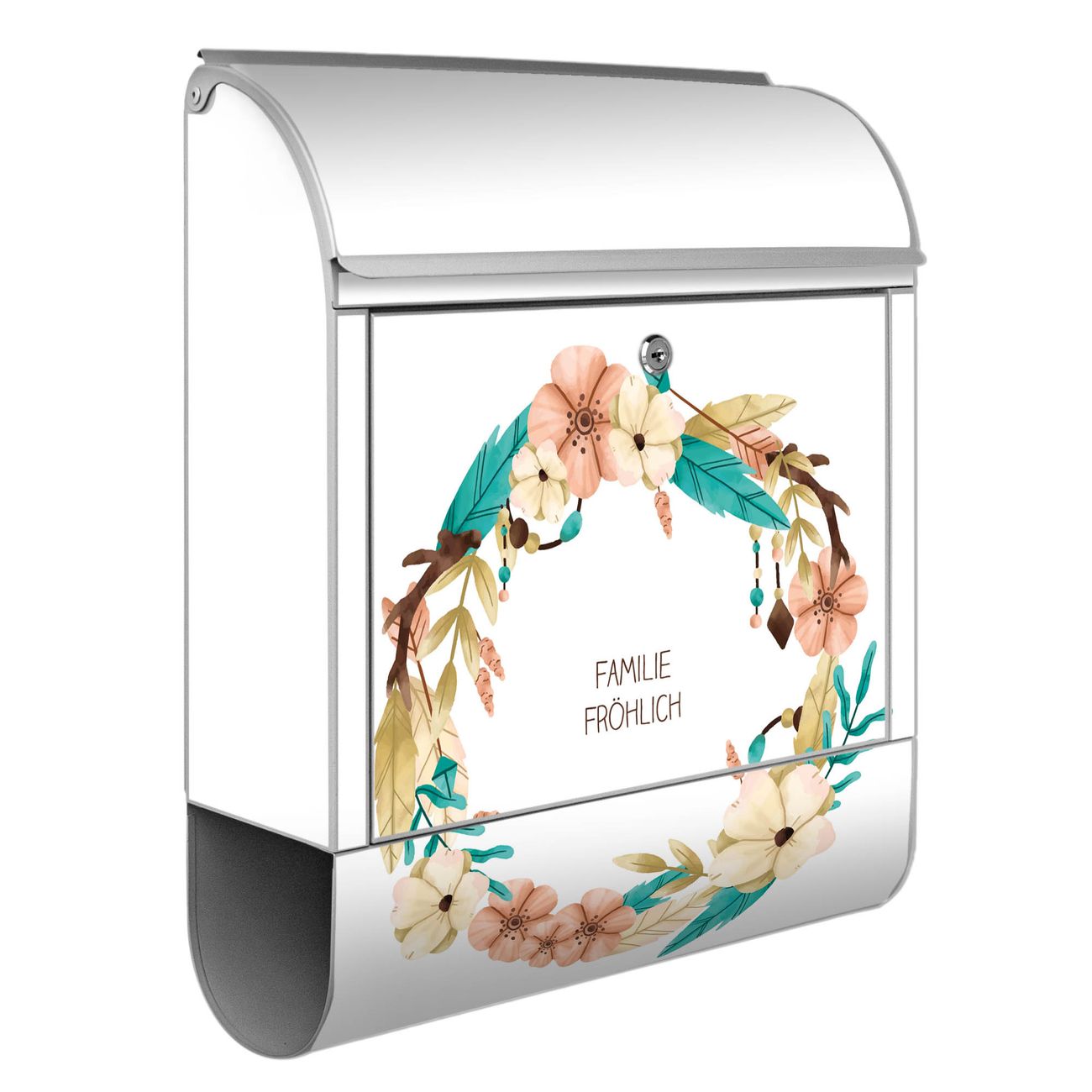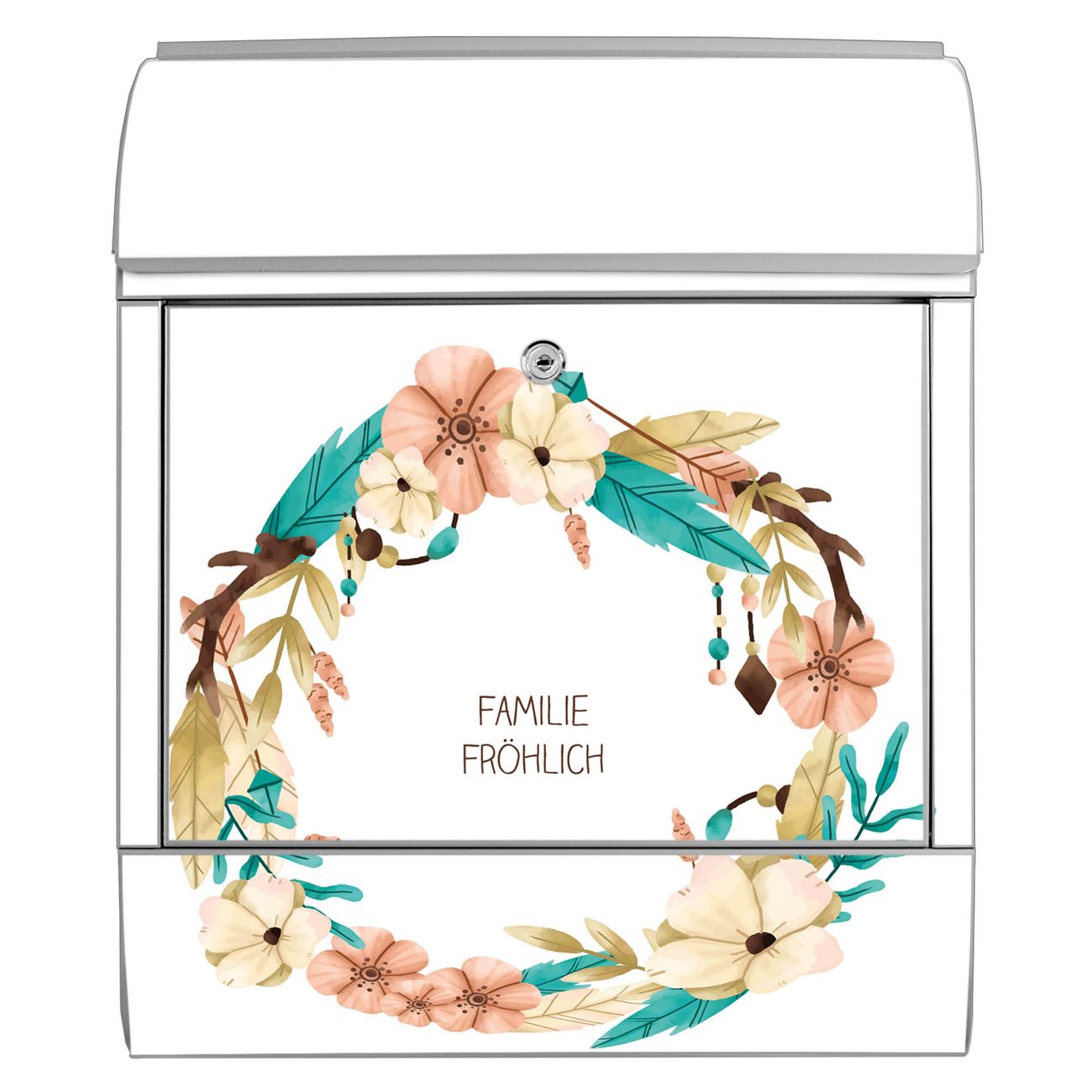 Großer Stahl Briefkasten Motiv Frühlingsblütenkranz