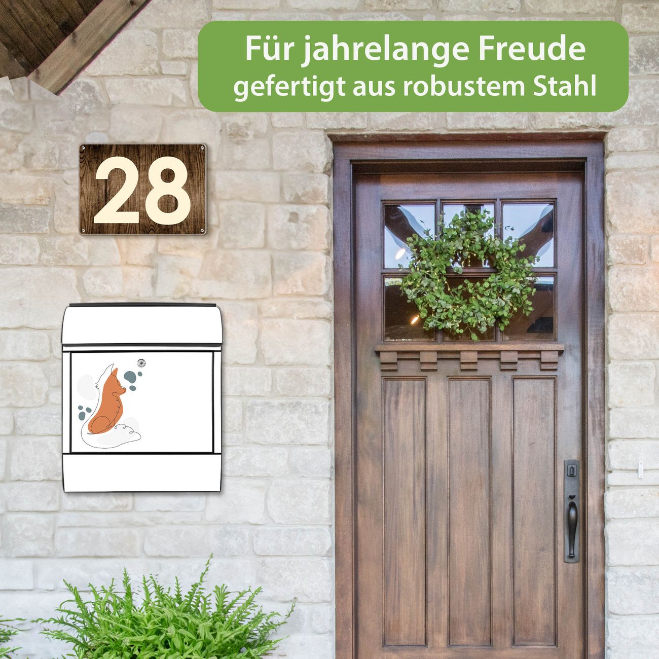 Großer Stahl Briefkasten Motiv Fuchs Lineart