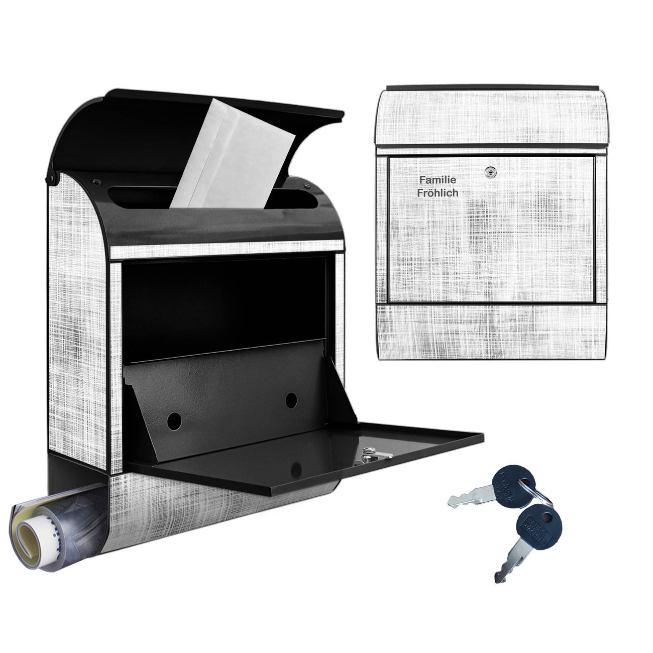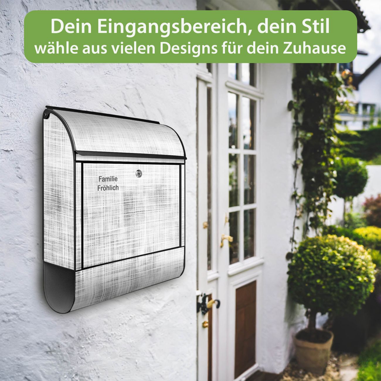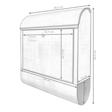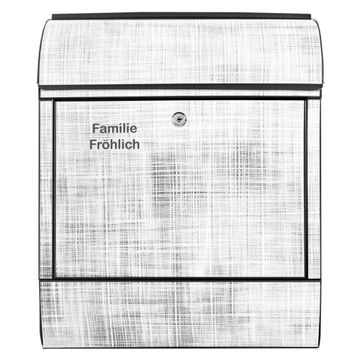 DESIGN: Der Postkasten mit Motiv Motiv Gewebtes Gitter Grau hat ein sehr ansprechendes und ausgefallenes Design, damit entlocken Sie Ihren Nachbarn und dem Postboten ein Lächeln. Heben Sie Sich von der tristen grauen Masse ab, ohne auf Funktionalität zu verzichten. DETAILS: Der Postkasten besteht aus pulverbeschichtetem Stahl. Er ist 38x46x12,5cm groß. Das Motiv besteht aus einer wetter- und UV-resistenten Folie, die mit einem Schutzlaminat überzogen ist, sodass der Briefkasten zusätzlich vor Kratzern geschützt ist. Der Briefkasten wird mit Montagematerial, zusätzlich zwei Schlüssel sowie einer Bohrschablone geliefert. NUTZEN: Sie können diesen Briefkasten sowohl als Wandbriefkasten montieren oder einen passenden Ständer kaufen und als Standbriefkasten einbetonieren. Die Größe bietet genügend Platz für Sendungen aller Art, der Einwurf fasst auch größere A4 Sendungen. BANJADO: Ihr Briefkasten wird in Sachsen in einer kleinen Manufaktur von Hand veredelt. Die Motivfolie ist lösungsmittelfrei und schutzlaminiert für einen langen Halt. Wir legen großen Wert auf die Verbindung von Funktionalität und Design. Sie erhalten Handarbeit aus Sachsen.