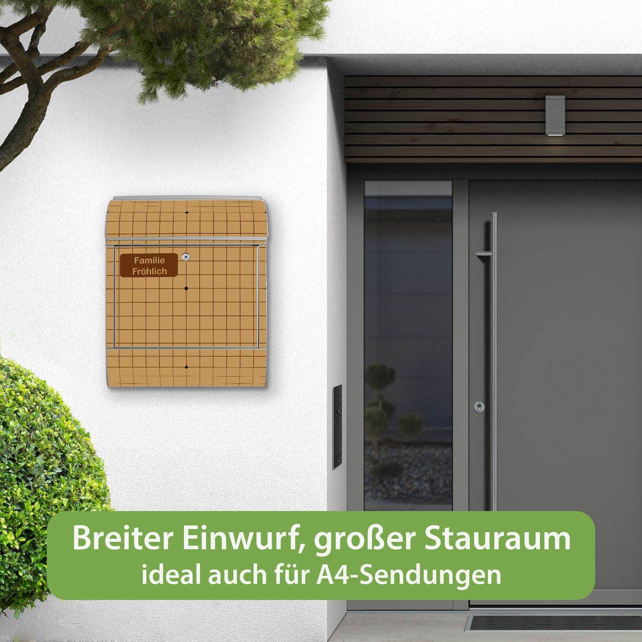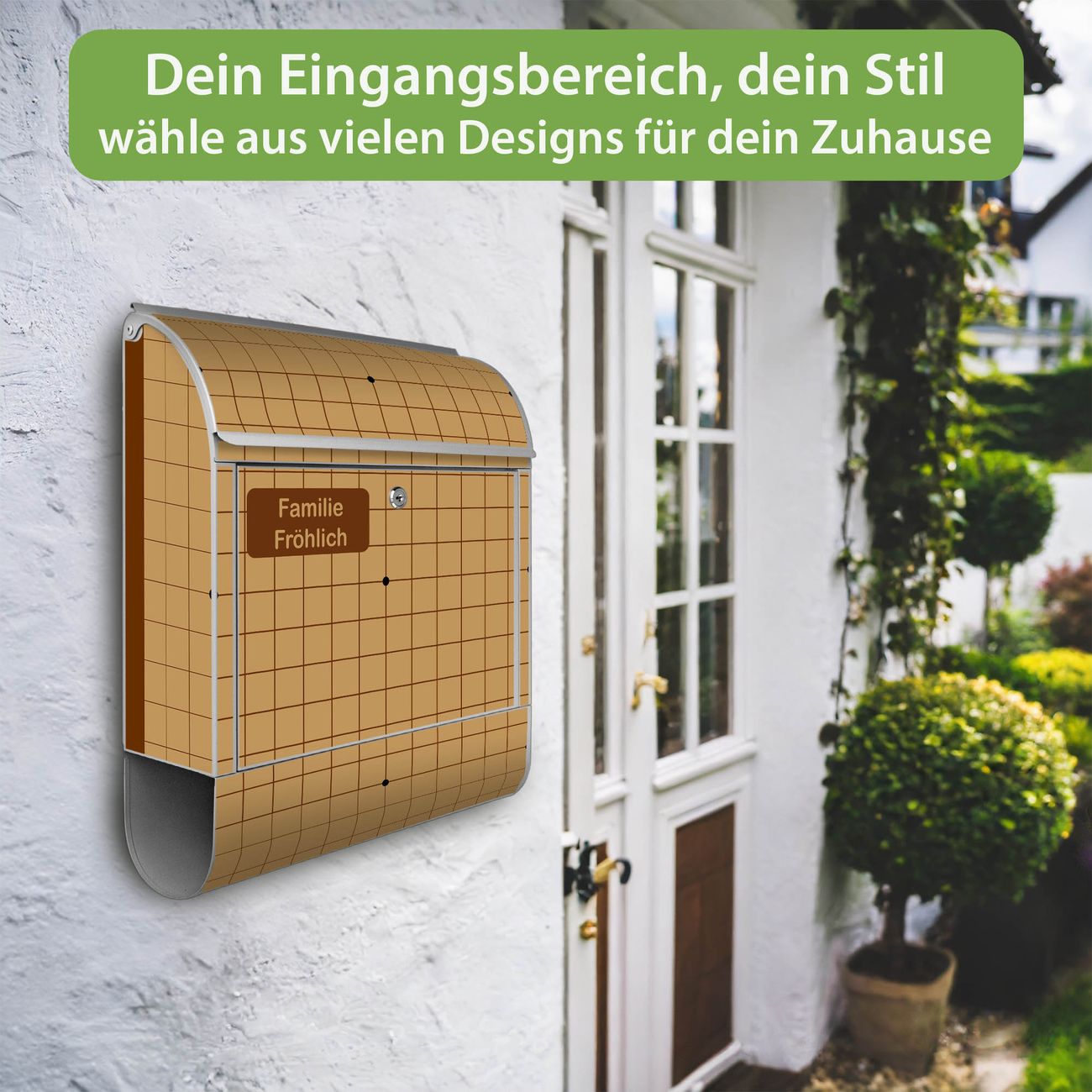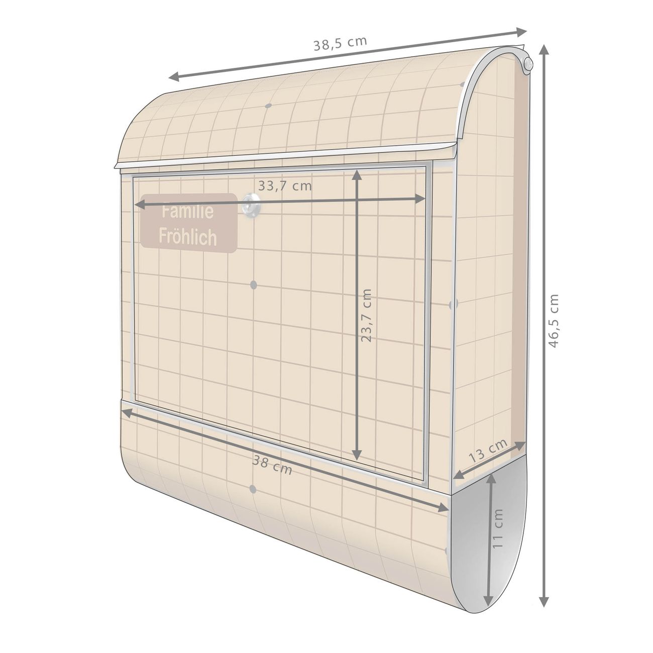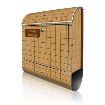 DESIGN: Der Postkasten mit Motiv Motiv Go Brett hat ein sehr ansprechendes und ausgefallenes Design, damit entlocken Sie Ihren Nachbarn und dem Postboten ein Lächeln. Heben Sie Sich von der tristen grauen Masse ab, ohne auf Funktionalität zu verzichten. DETAILS: Der Postkasten besteht aus pulverbeschichtetem Stahl. Er ist 38x46x12,5cm groß. Das Motiv besteht aus einer wetter- und UV-resistenten Folie, die mit einem Schutzlaminat überzogen ist, sodass der Briefkasten zusätzlich vor Kratzern geschützt ist. Der Briefkasten wird mit Montagematerial, zusätzlich zwei Schlüssel sowie einer Bohrschablone geliefert. NUTZEN: Sie können diesen Briefkasten sowohl als Wandbriefkasten montieren oder einen passenden Ständer kaufen und als Standbriefkasten einbetonieren. Die Größe bietet genügend Platz für Sendungen aller Art, der Einwurf fasst auch größere A4 Sendungen. BANJADO: Ihr Briefkasten wird in Sachsen in einer kleinen Manufaktur von Hand veredelt. Die Motivfolie ist lösungsmittelfrei und schutzlaminiert für einen langen Halt. Wir legen großen Wert auf die Verbindung von Funktionalität und Design. Sie erhalten Handarbeit aus Sachsen.