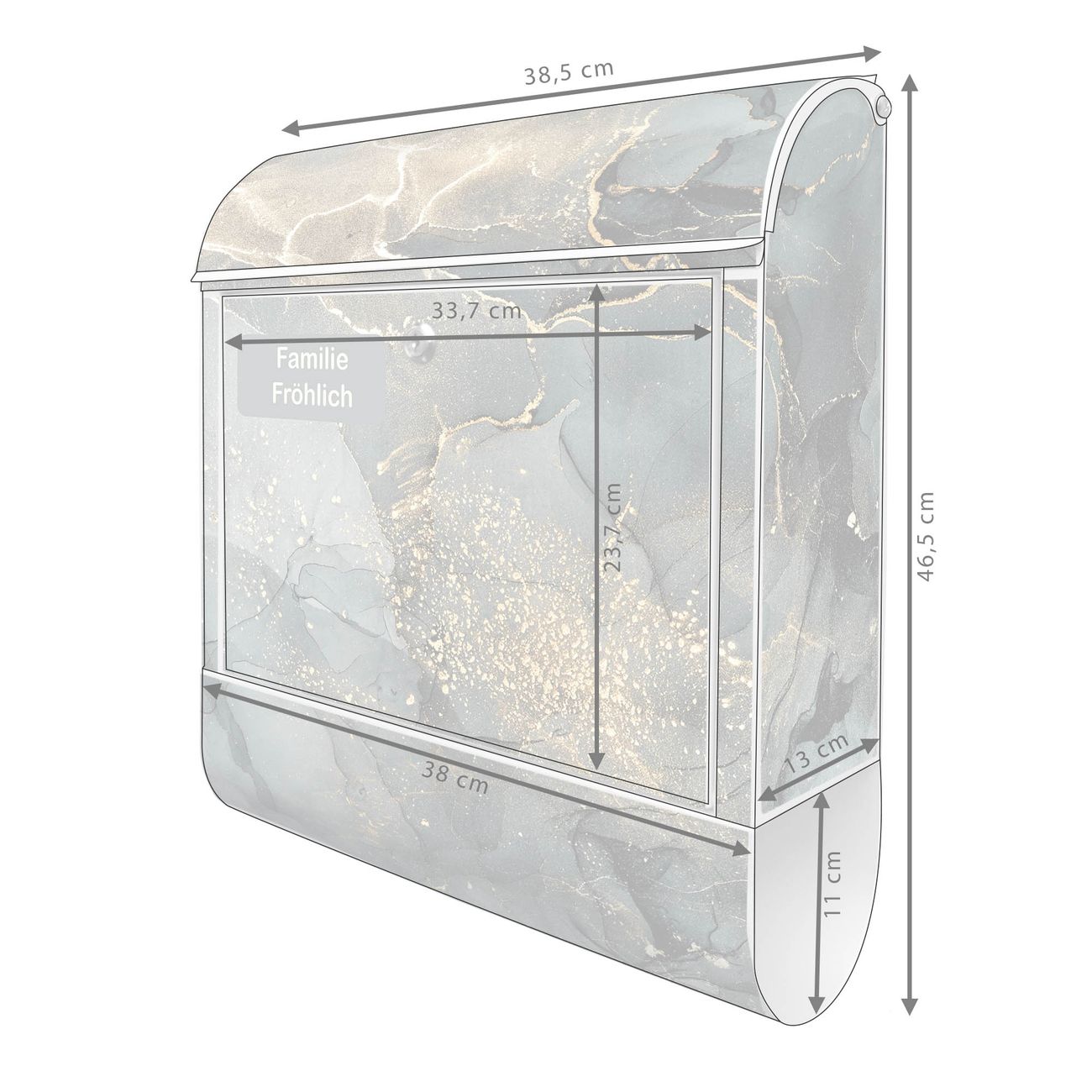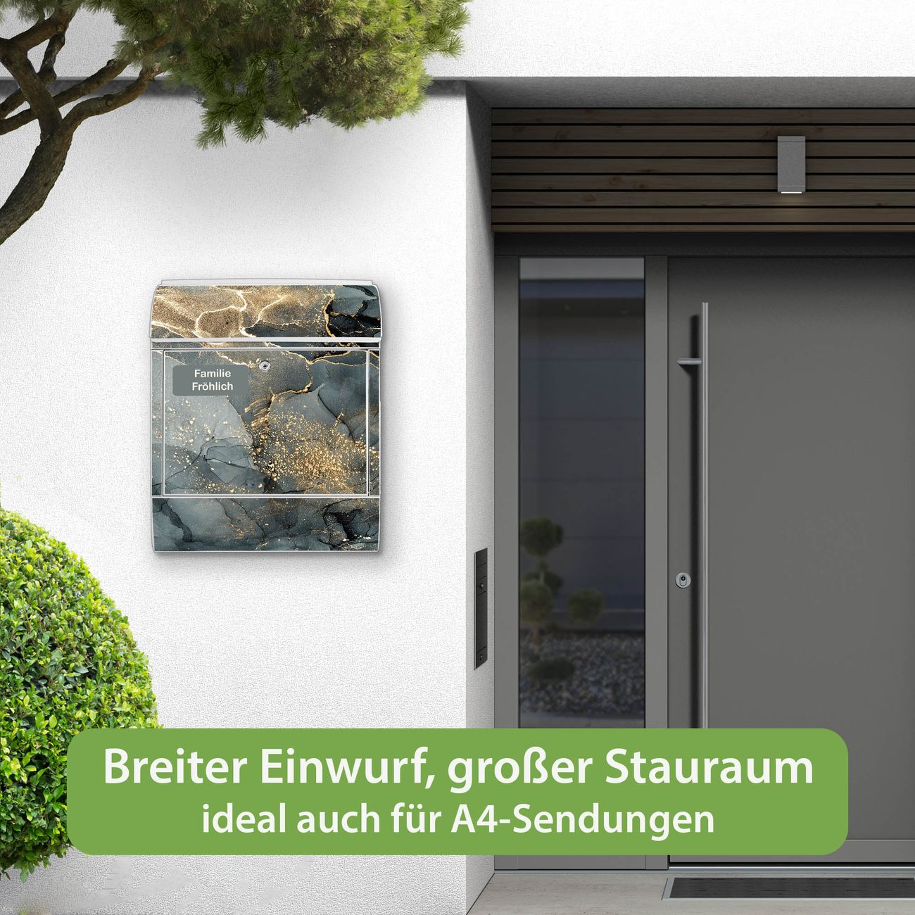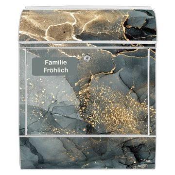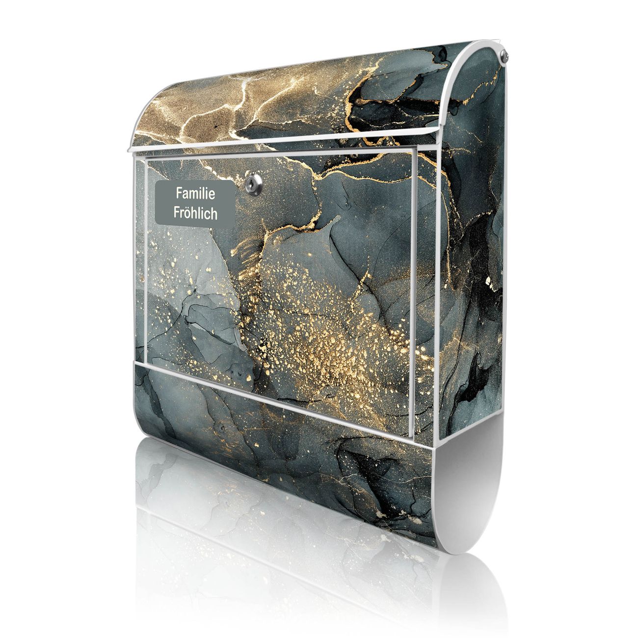 Großer Stahl Briefkasten Motiv grauer Marmor mit Gold 1