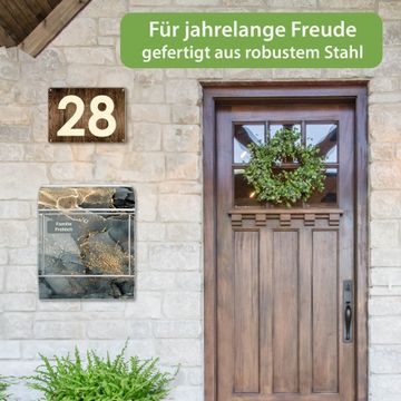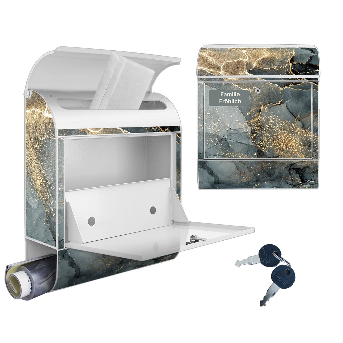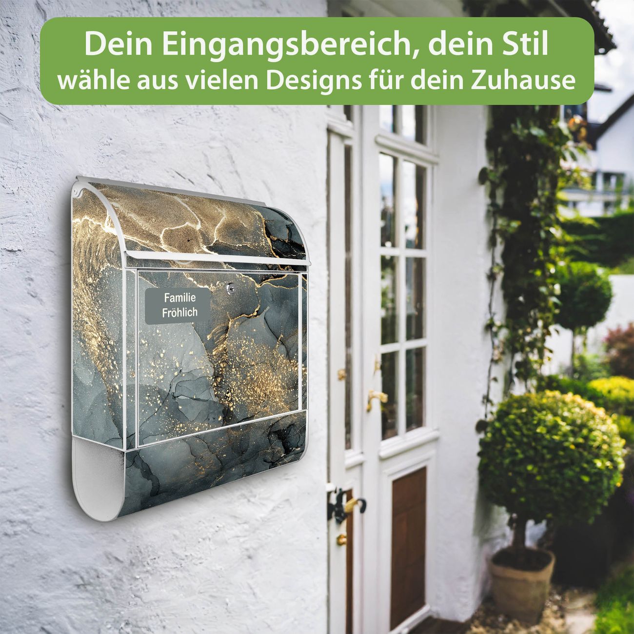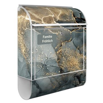 Großer Stahl Briefkasten Motiv grauer Marmor mit Gold 1