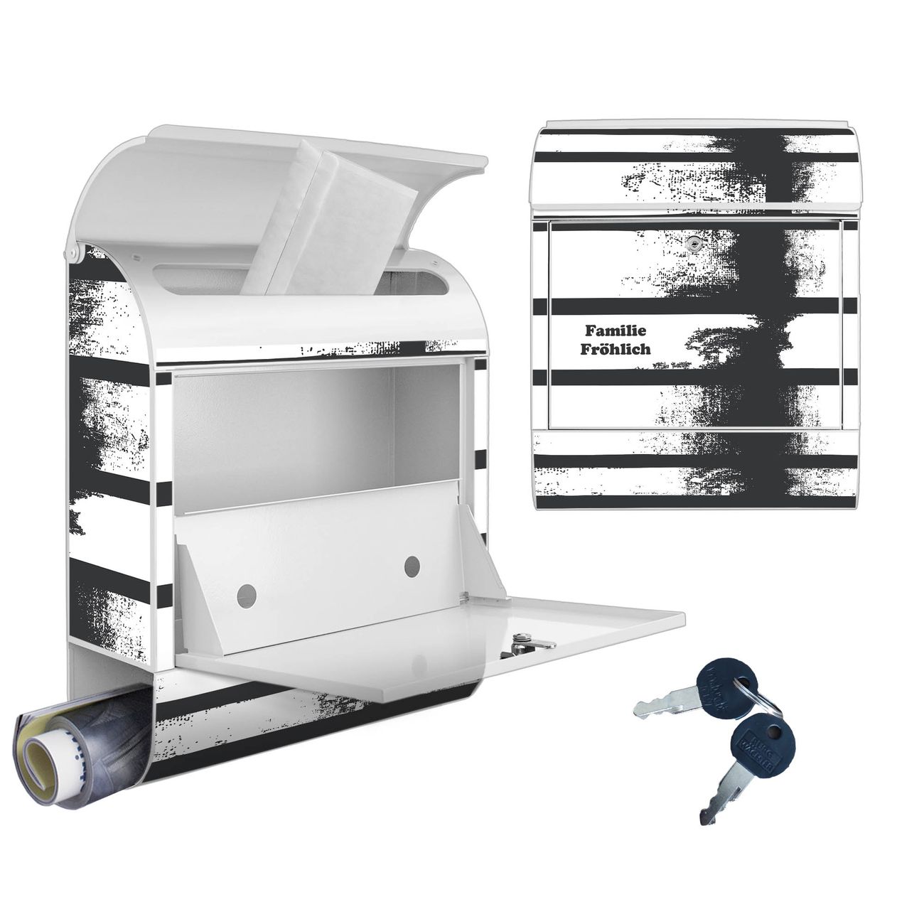 Großer Stahl Briefkasten Motiv Grunge Streifen