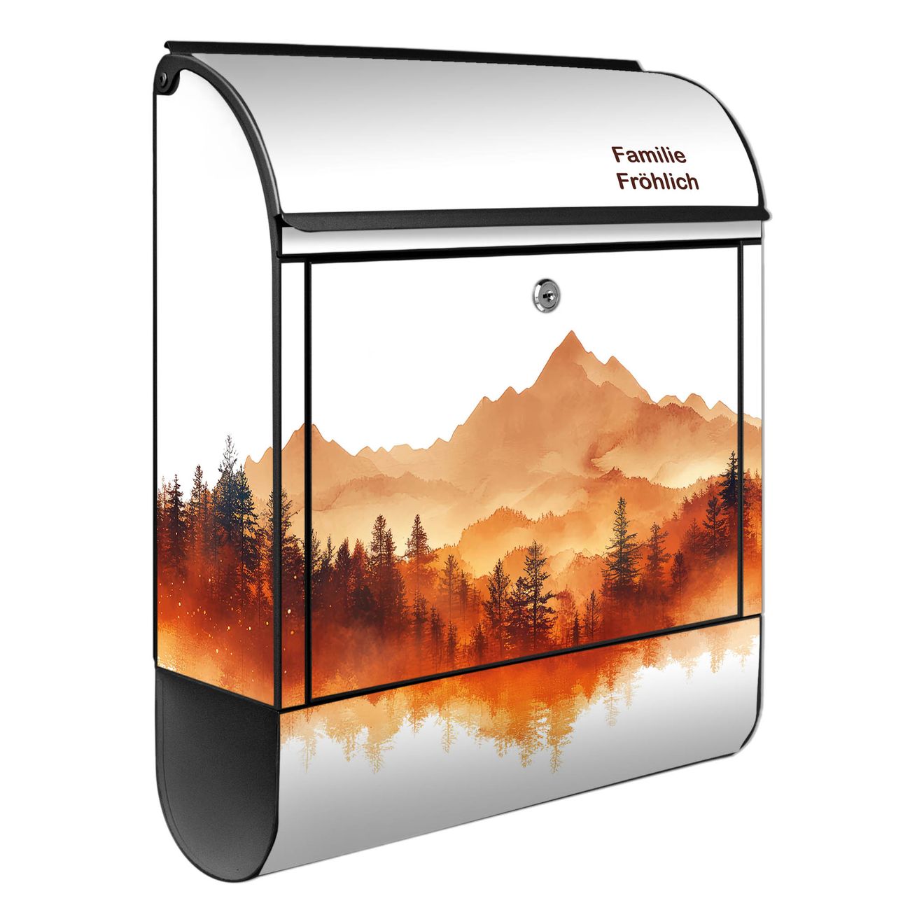 Großer Stahl Briefkasten Motiv Herbstliche Berglandschaft
