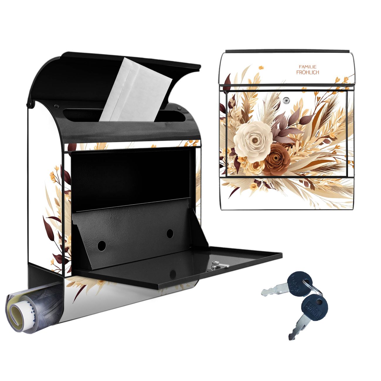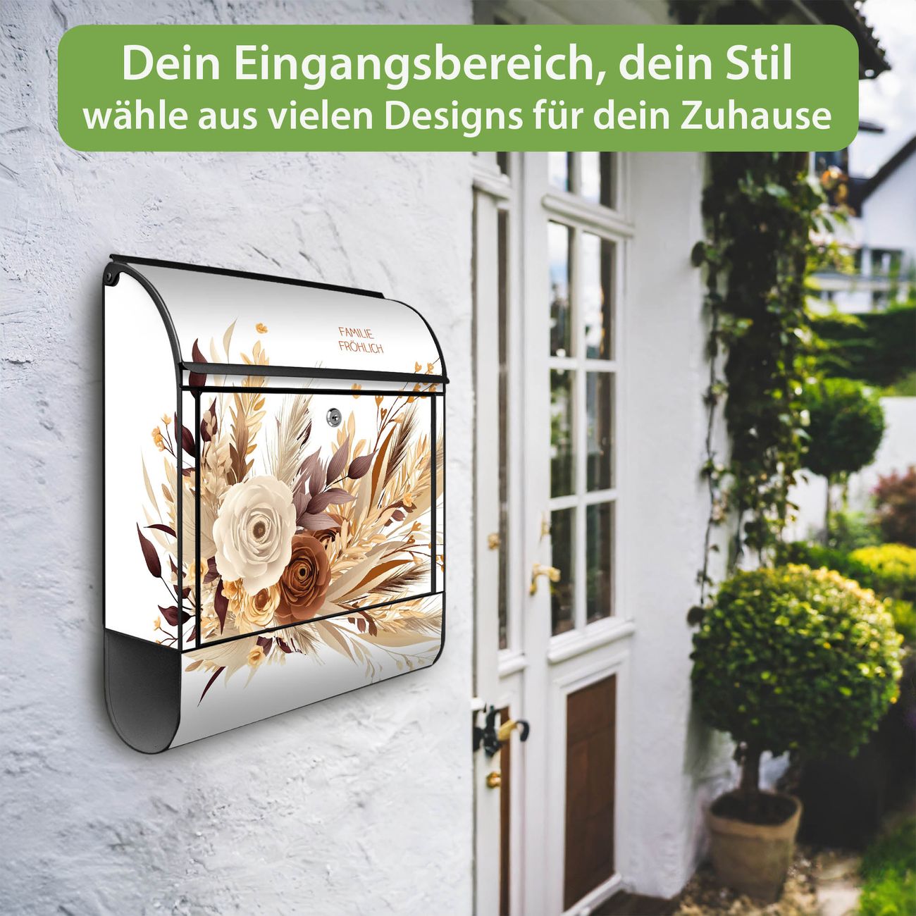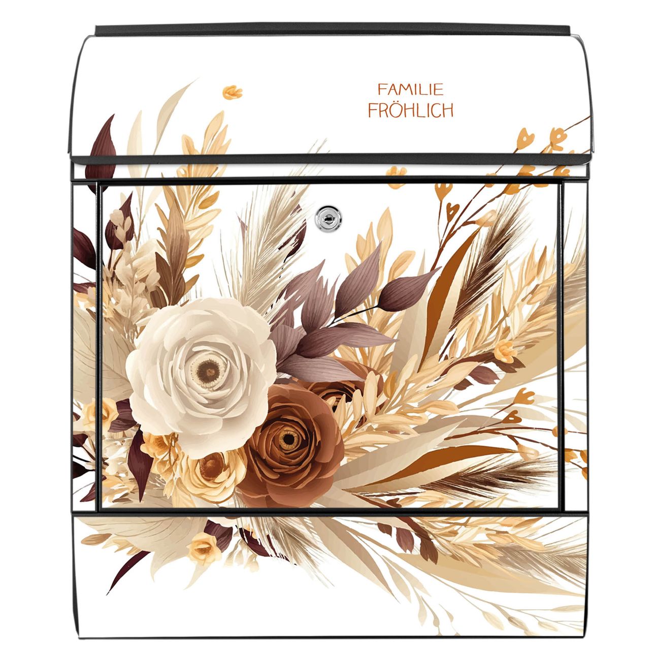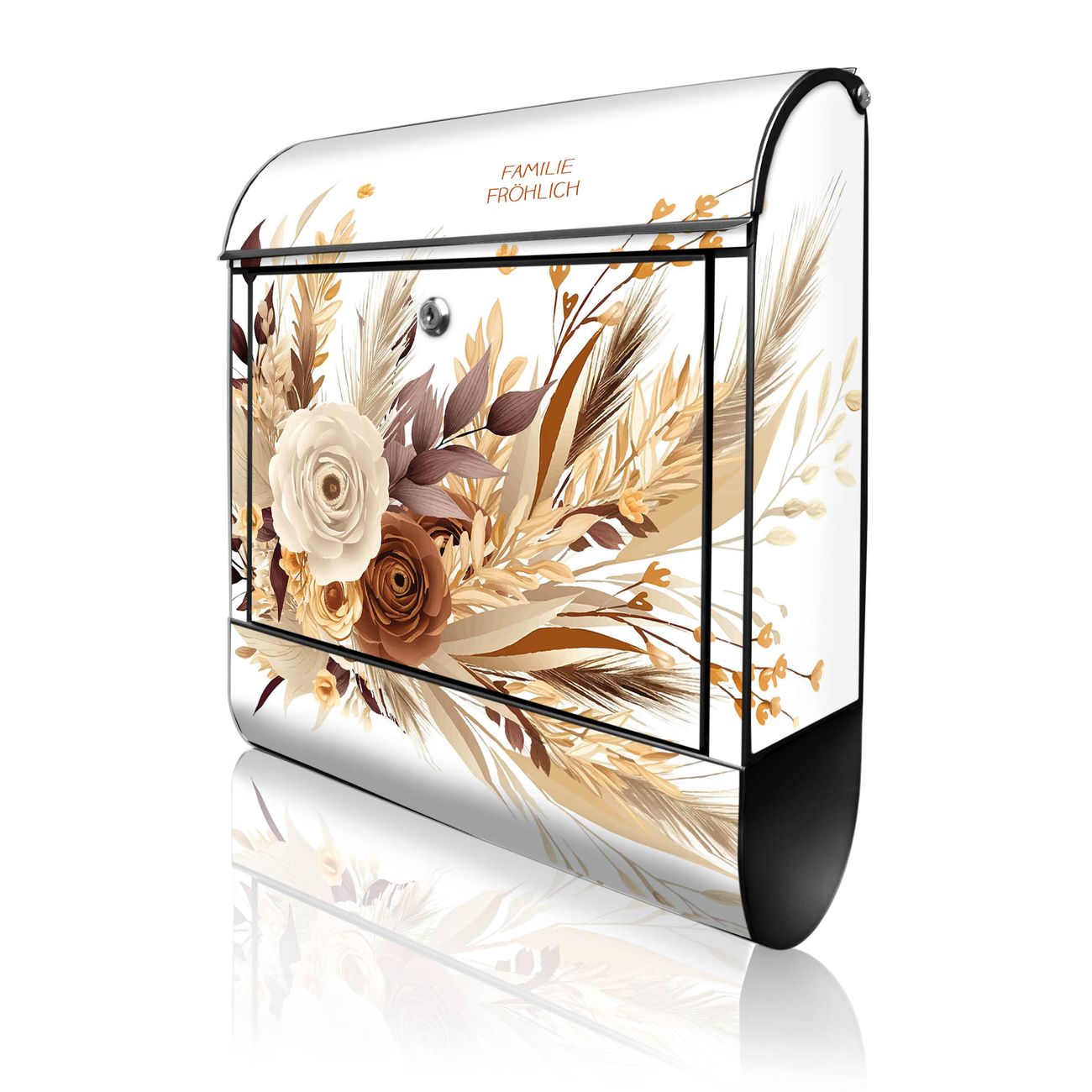 Großer Stahl Briefkasten Motiv Herbstlicher Blumenstrauß