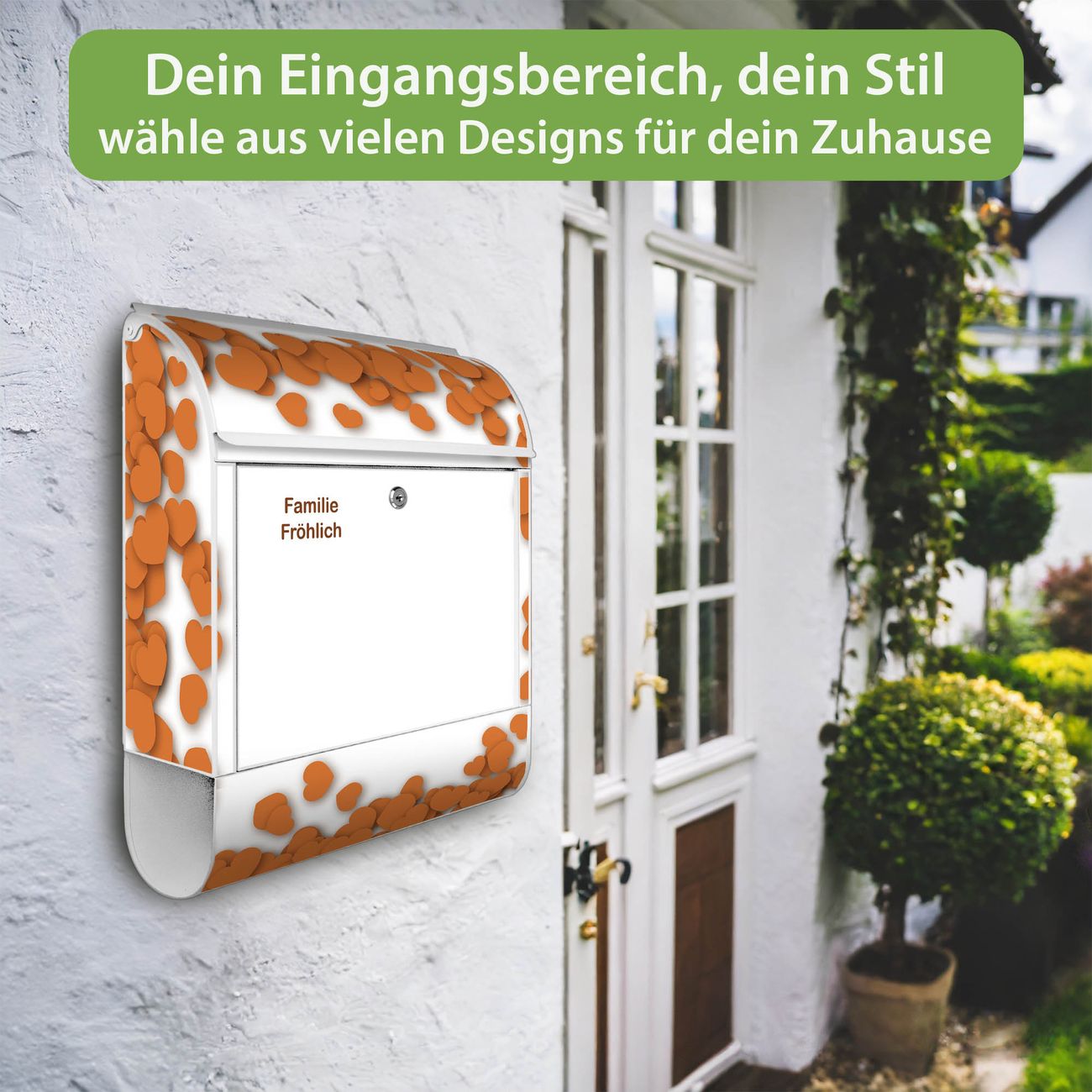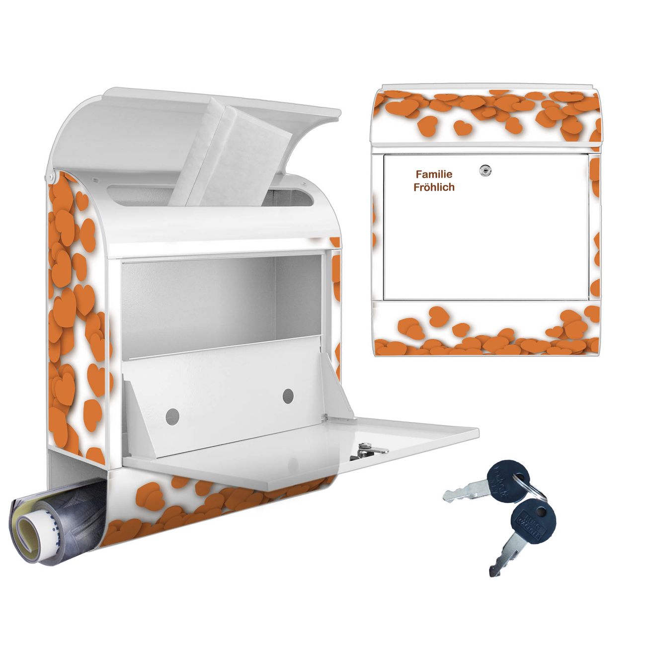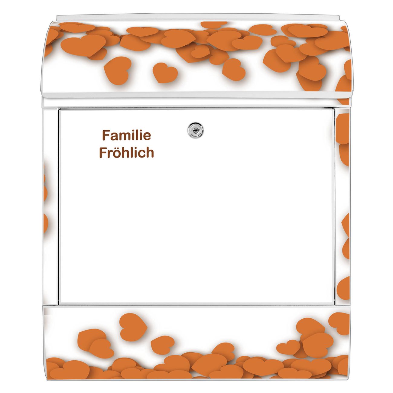 Großer Stahl Briefkasten Motiv Herzrahmen in Orange