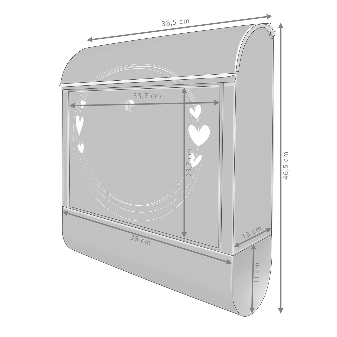 Großer Stahl Briefkasten Motiv Herzrahmen