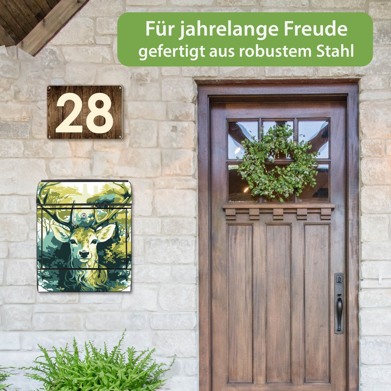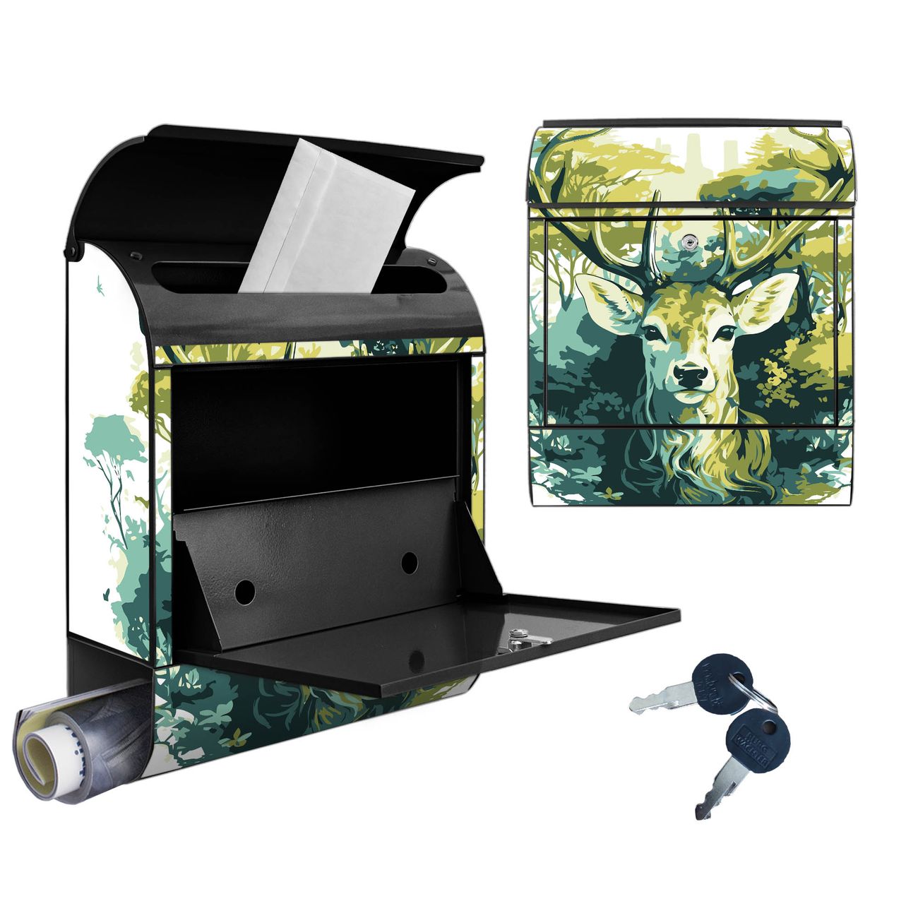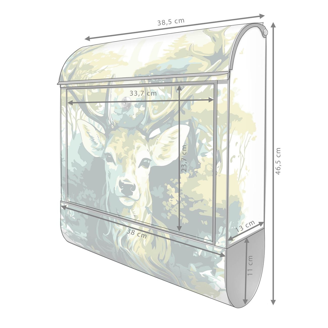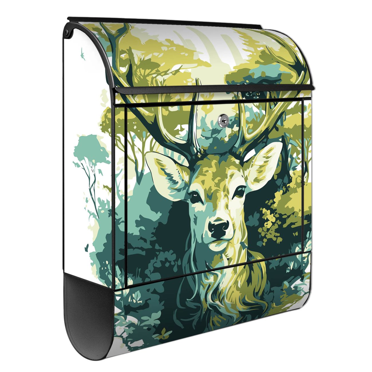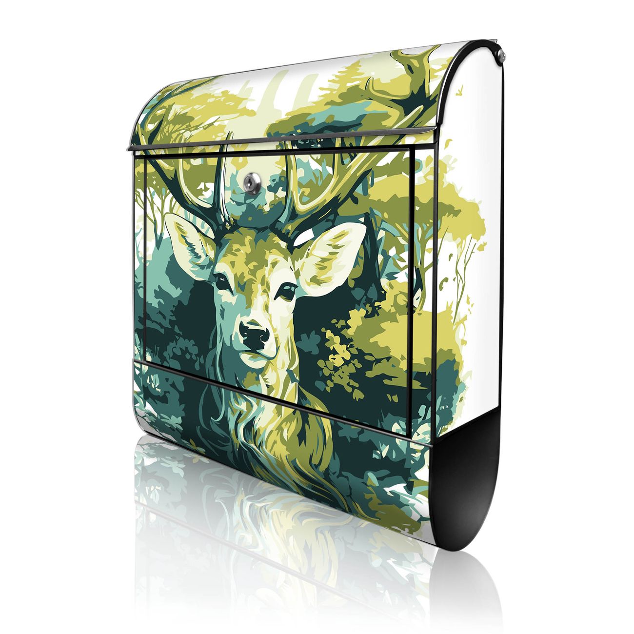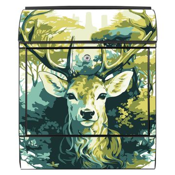 Großer Stahl Briefkasten Motiv Hirsch Wald Aquarell