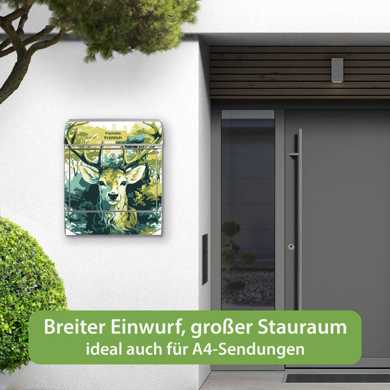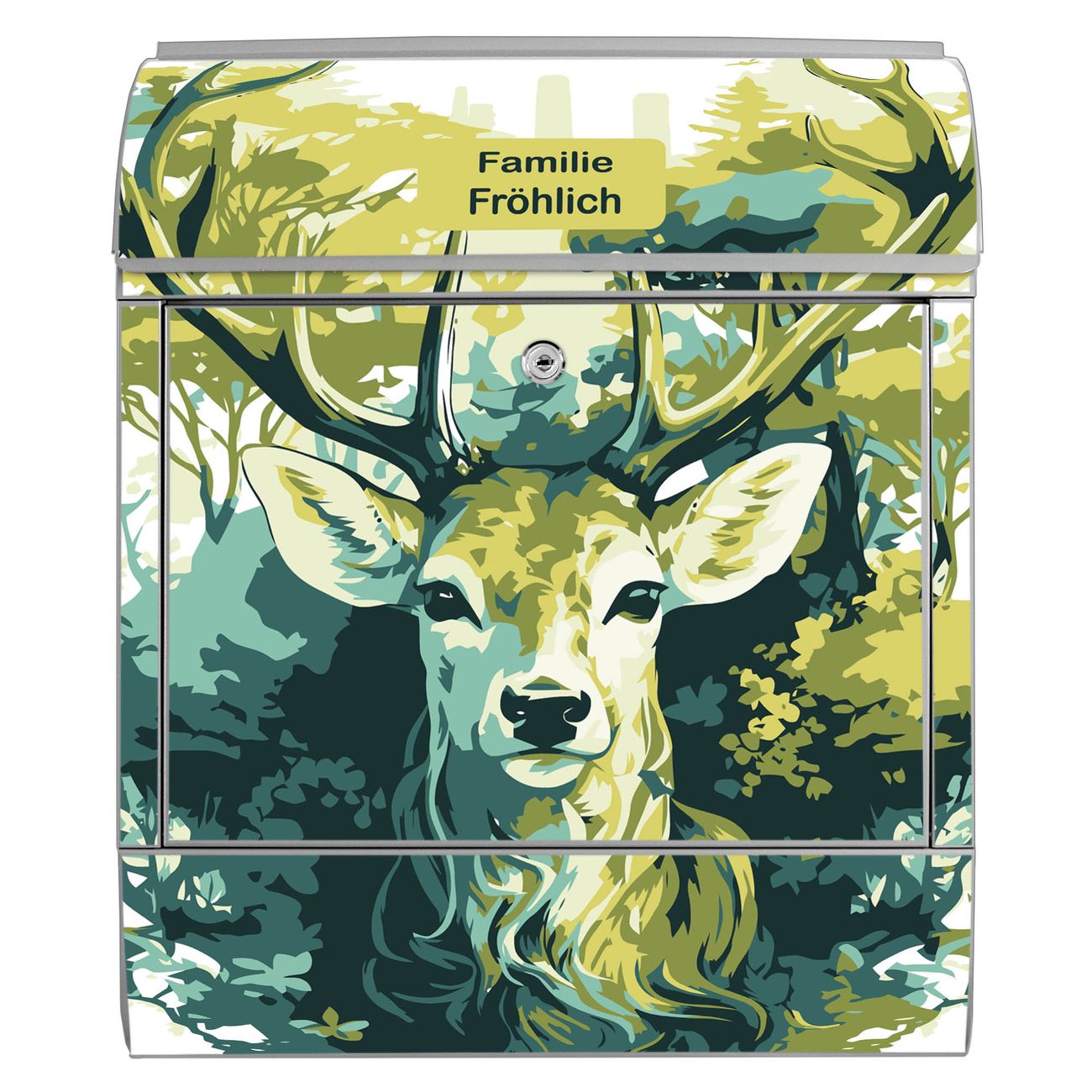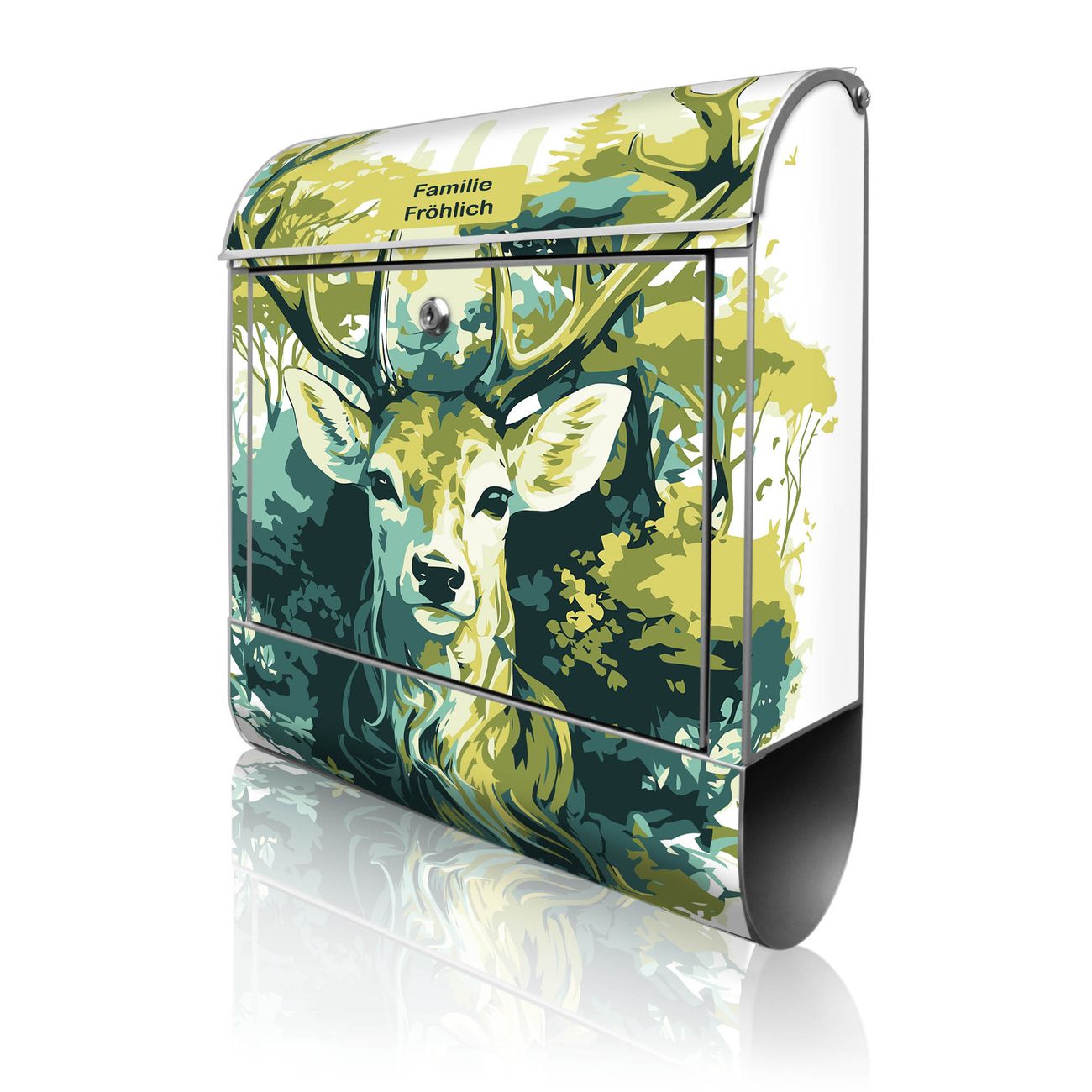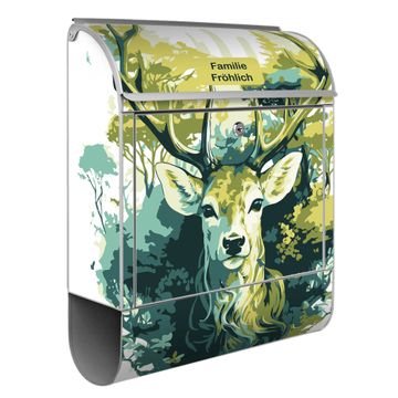 Großer Stahl Briefkasten Motiv Hirsch Wald Aquarell