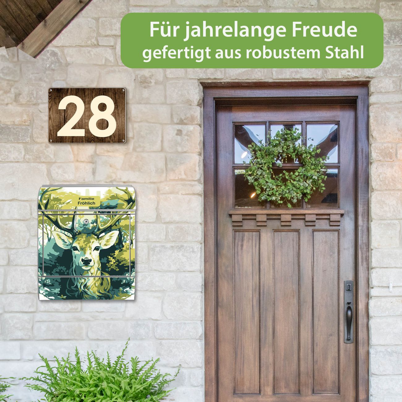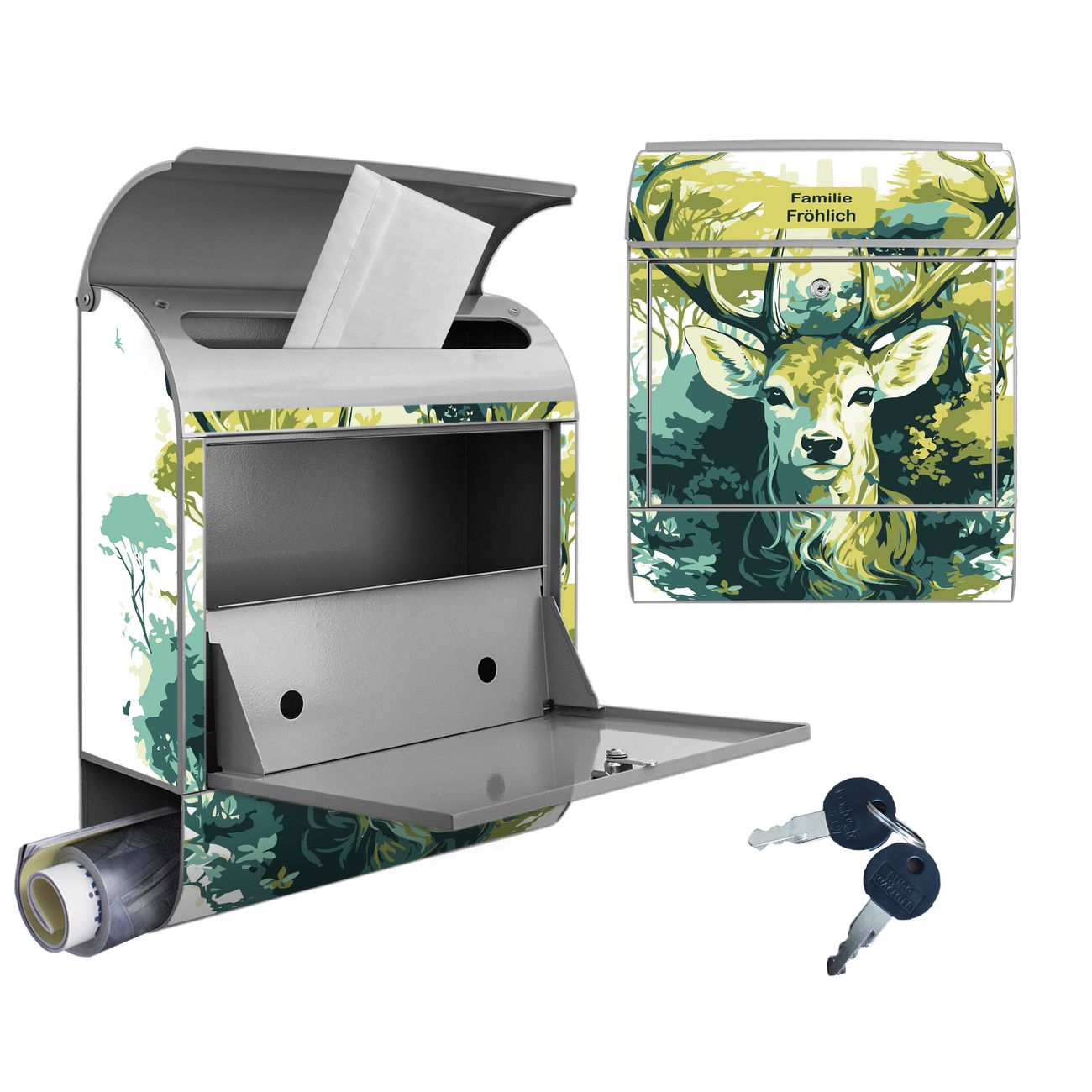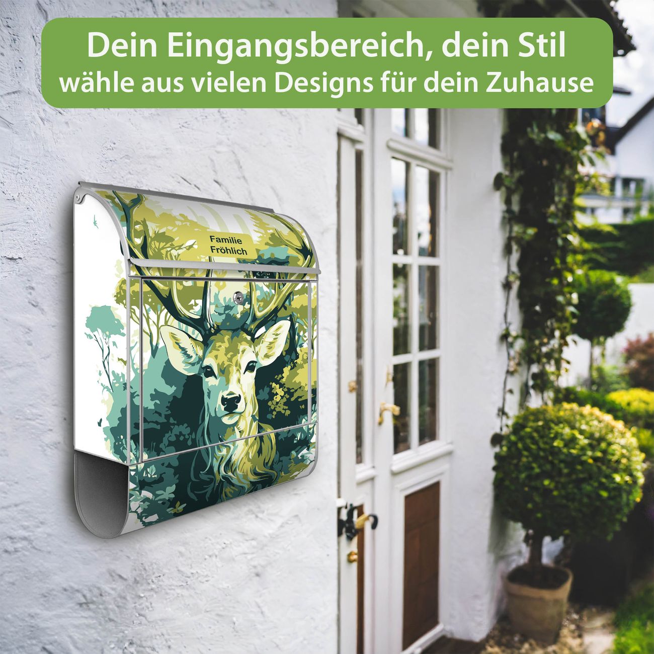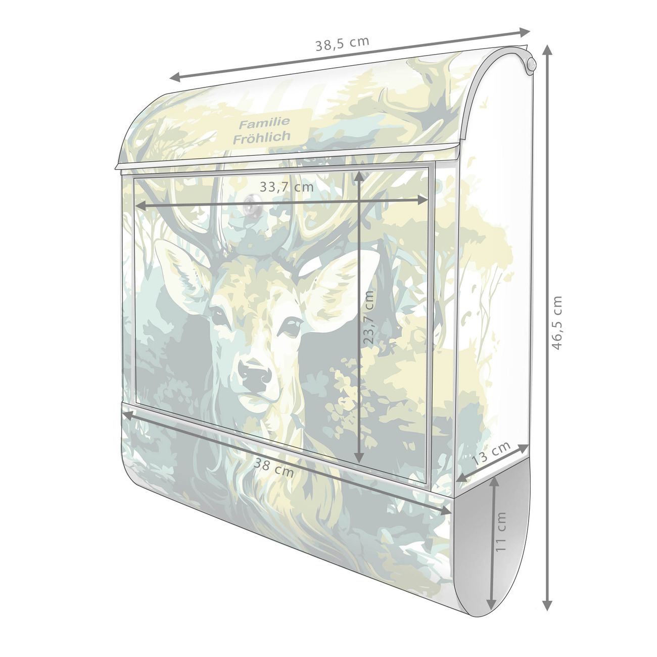 Großer Stahl Briefkasten Motiv Hirsch Wald Aquarell