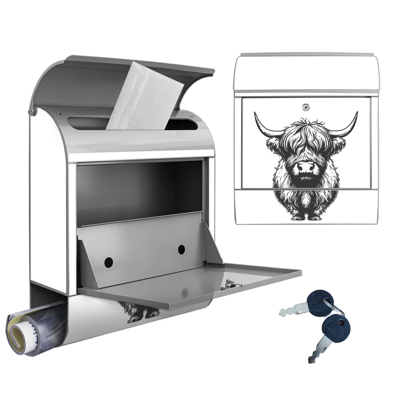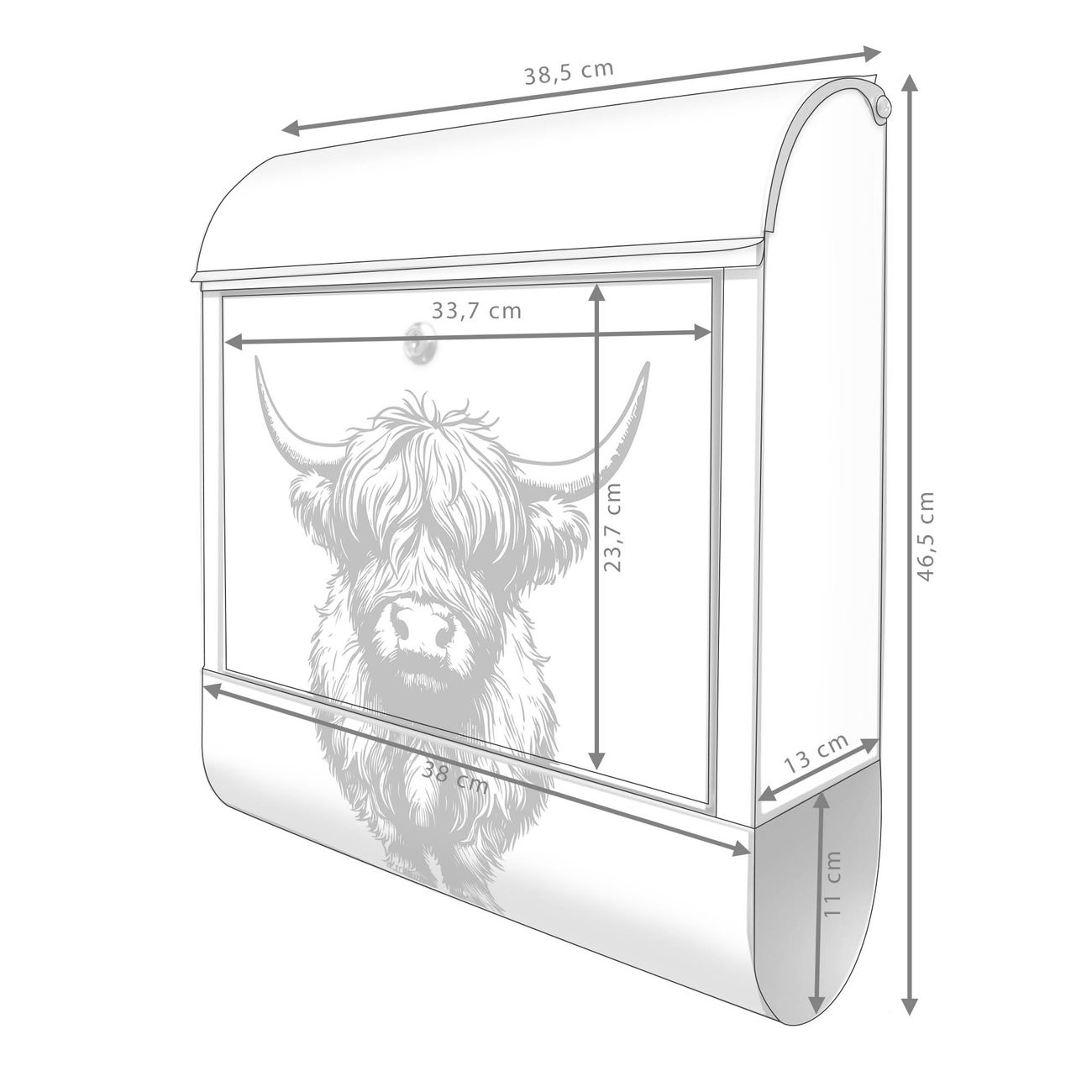 Großer Stahl Briefkasten Motiv Hochlandrind