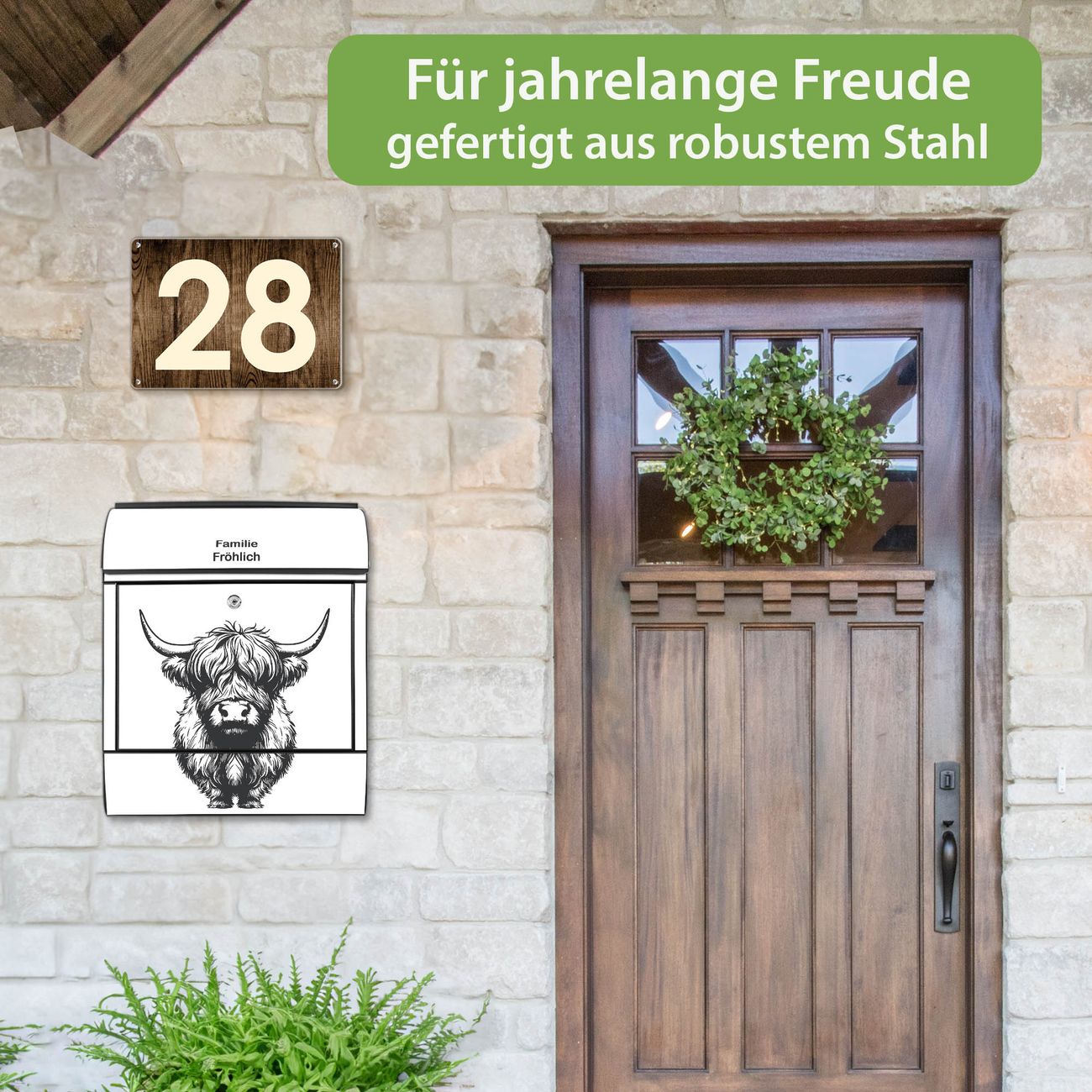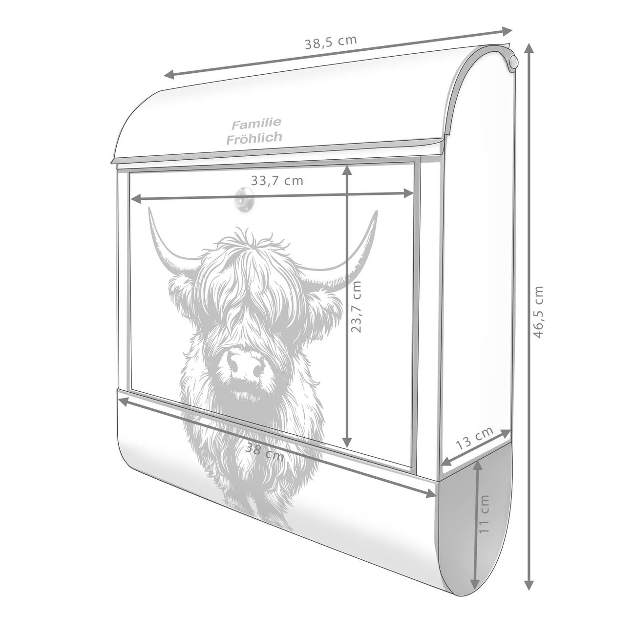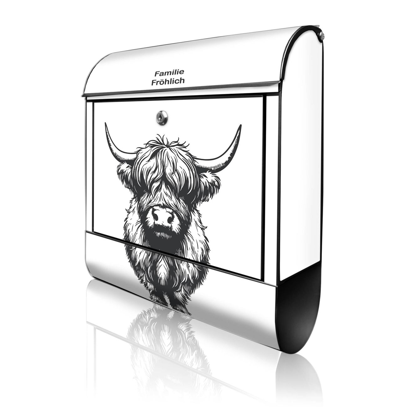 Großer Stahl Briefkasten Motiv Hochlandrind