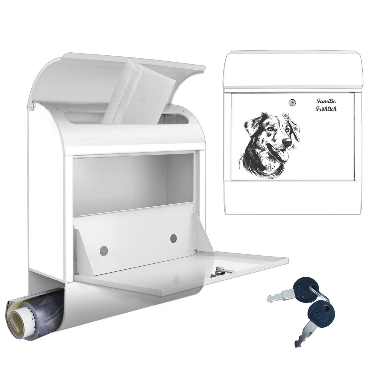Großer Stahl Briefkasten Motiv Hund Illustration