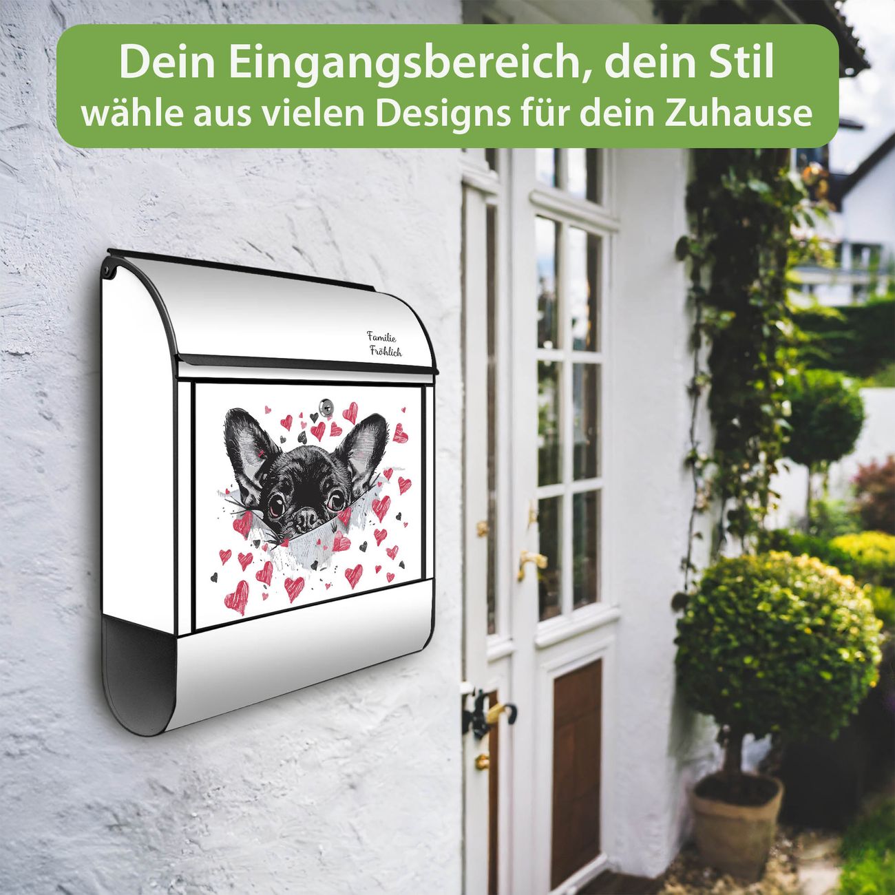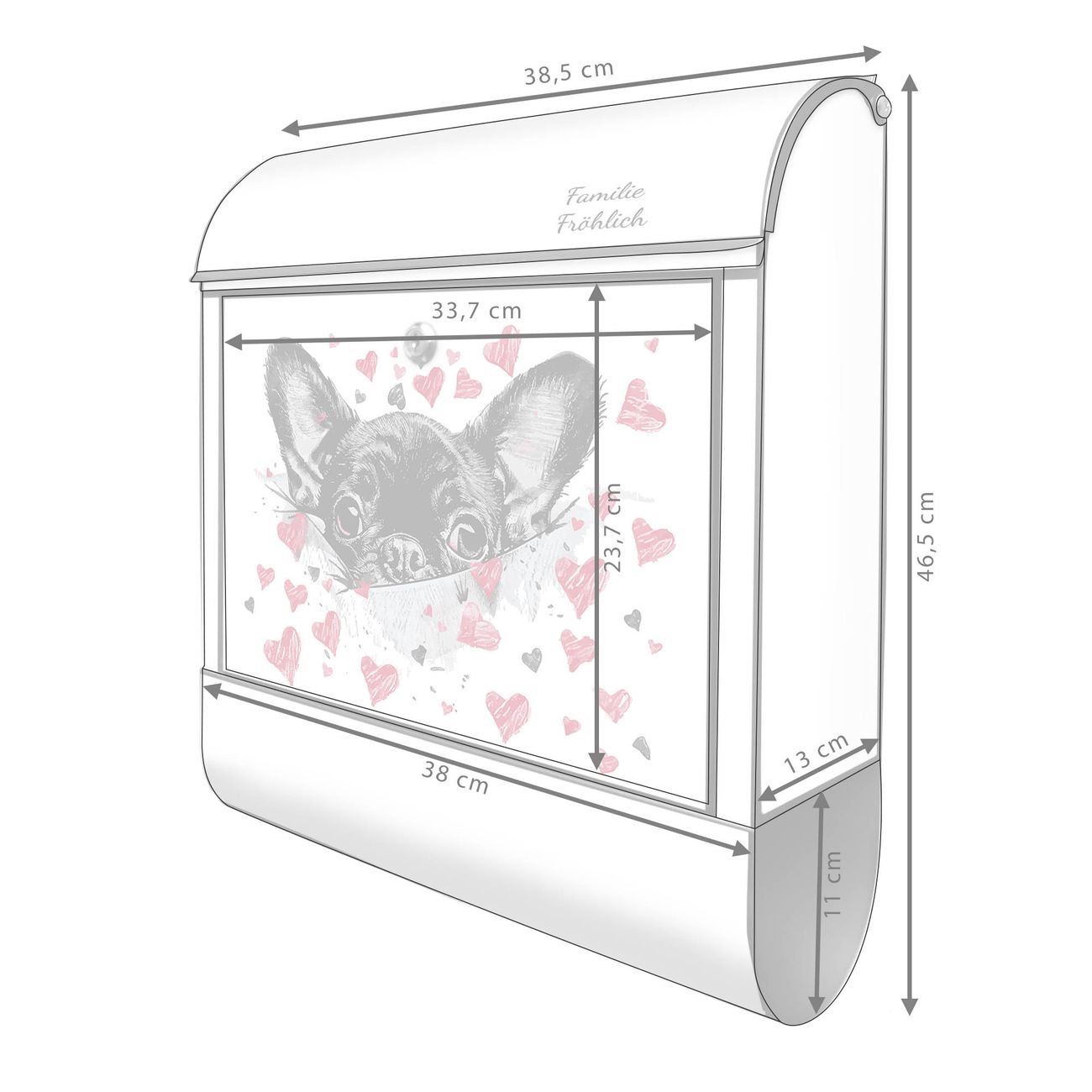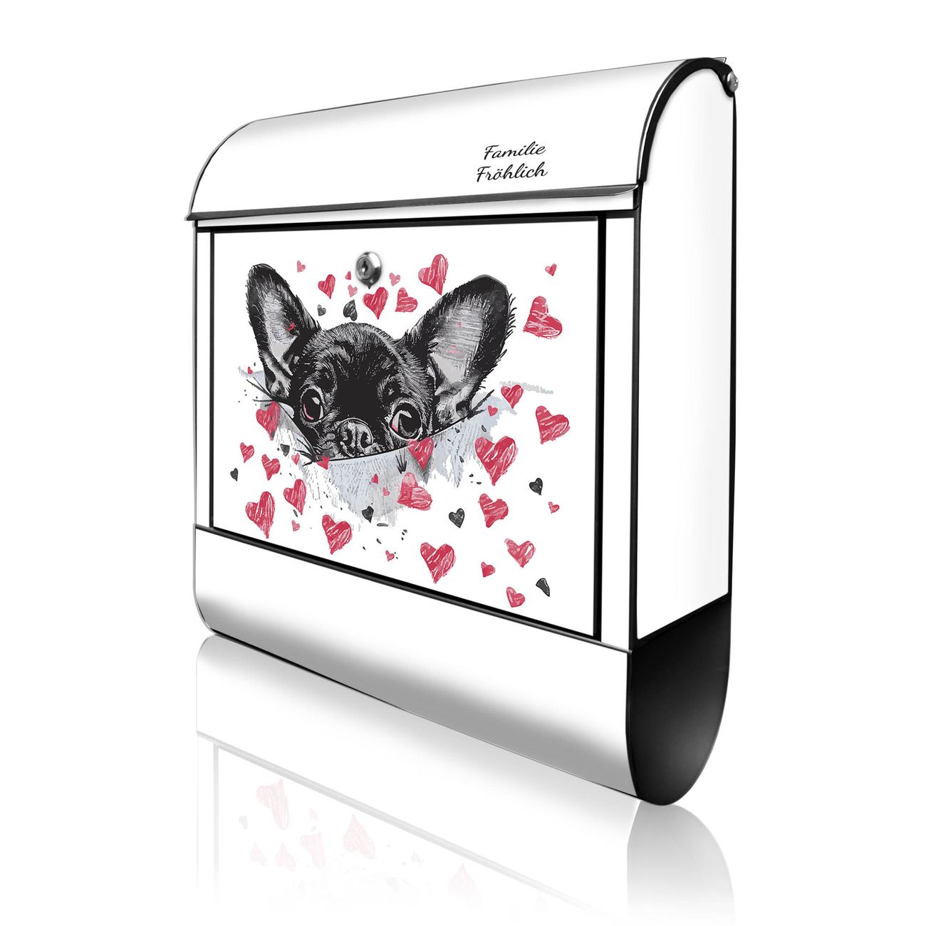 Großer Stahl Briefkasten Motiv Hund mit Herzen