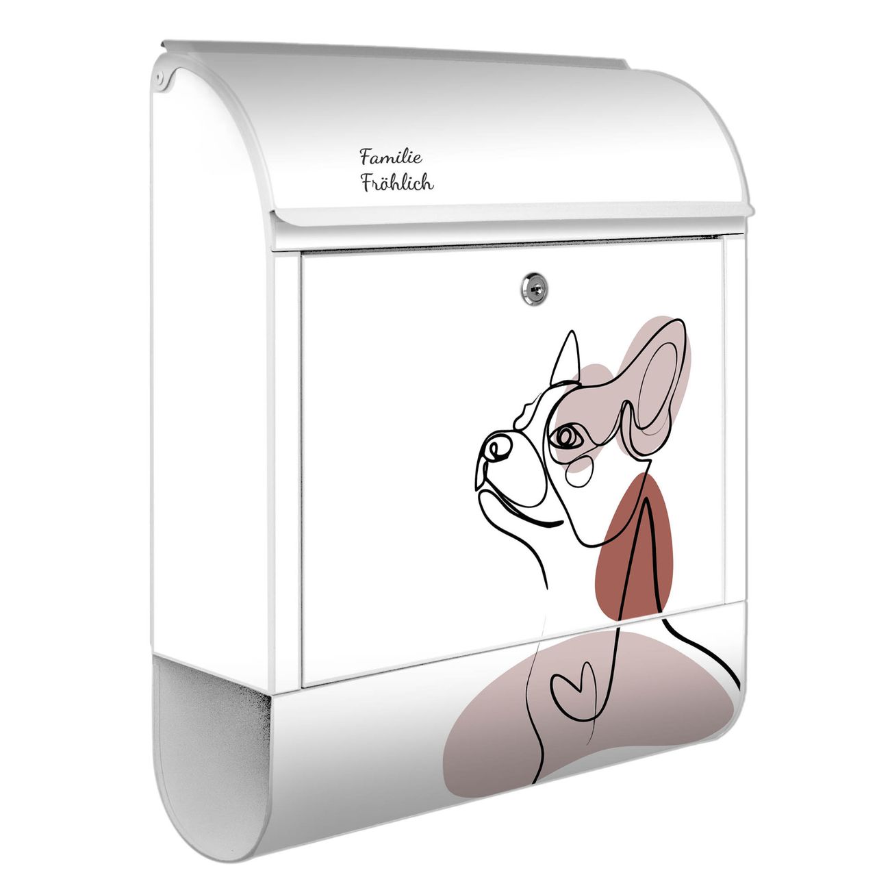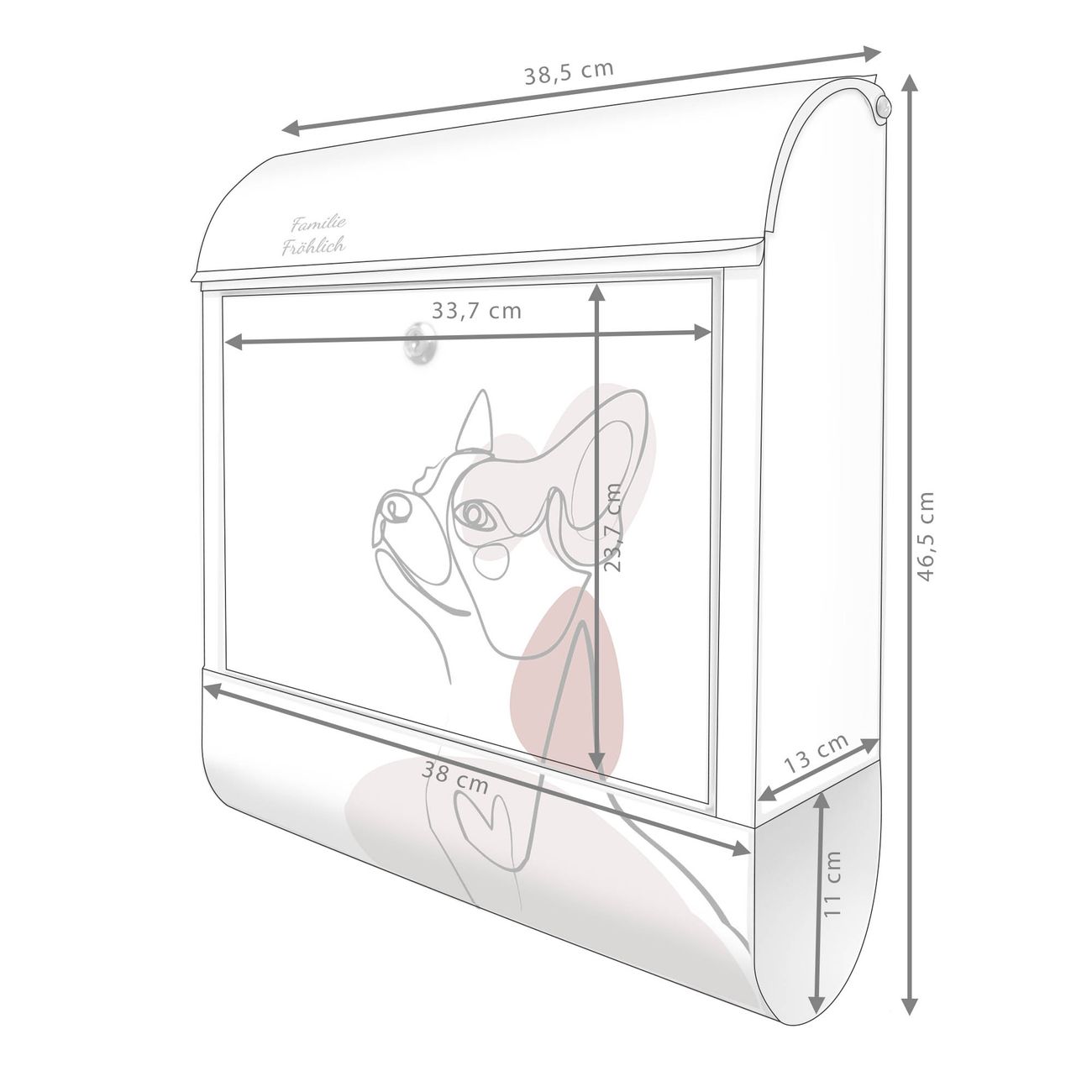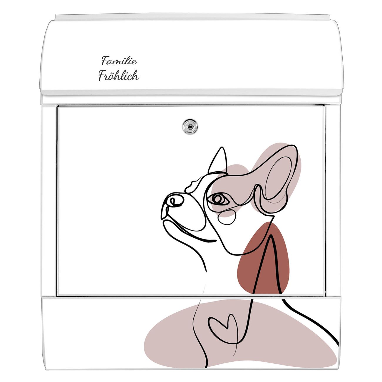 Großer Stahl Briefkasten Motiv Hundeporträt Lineart