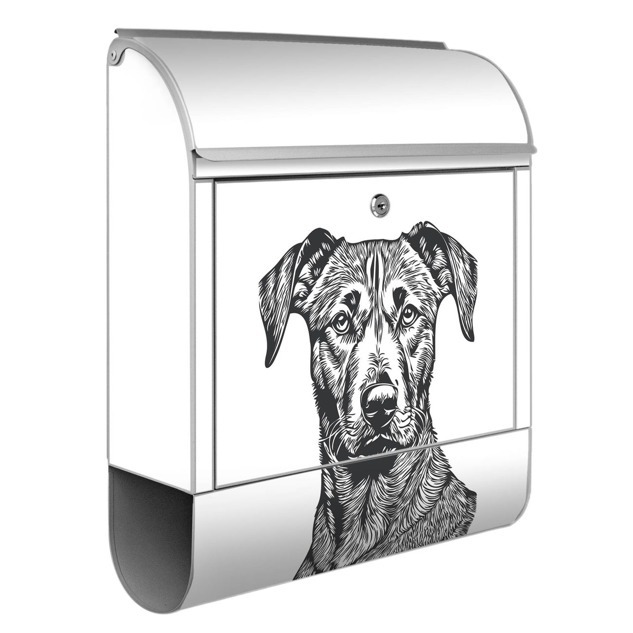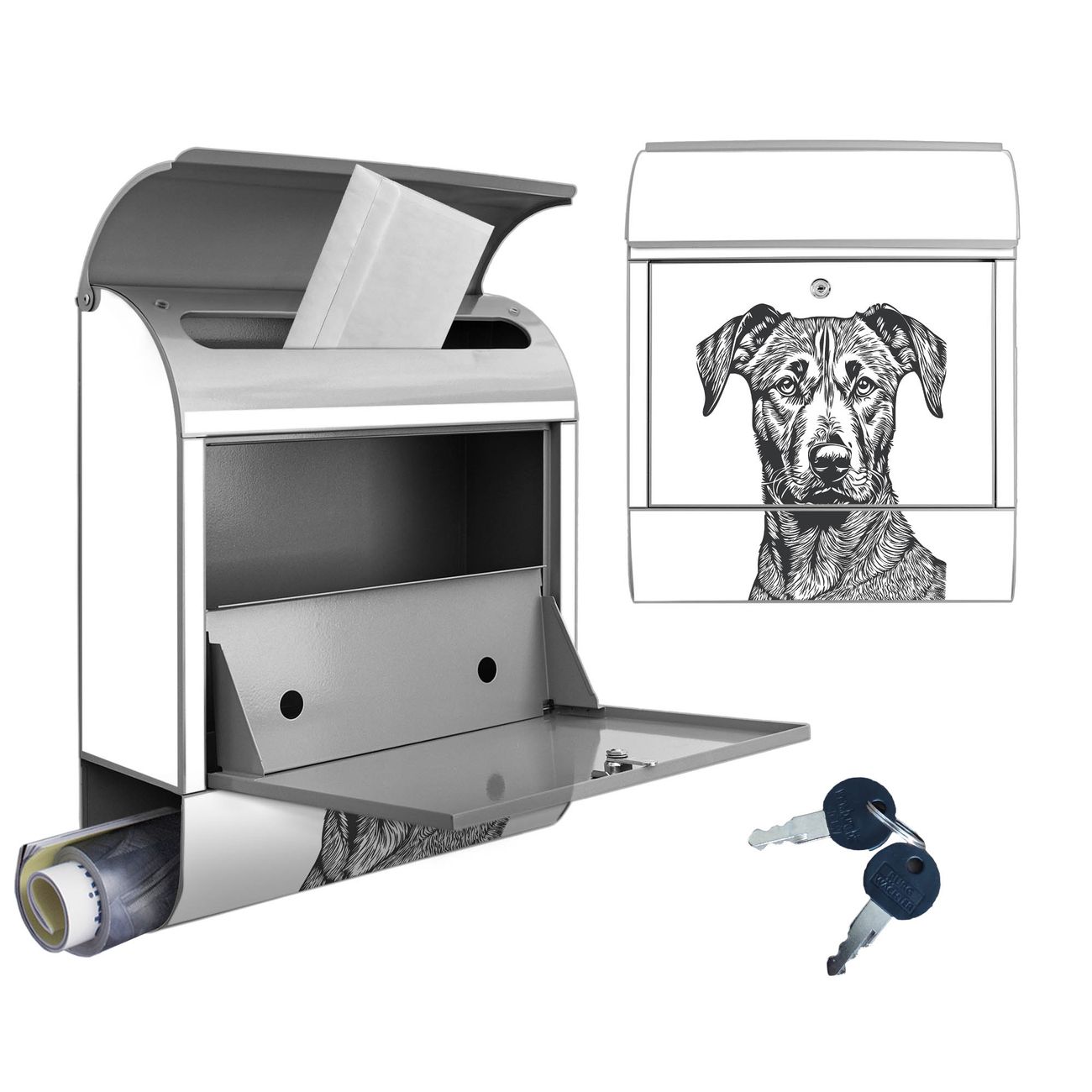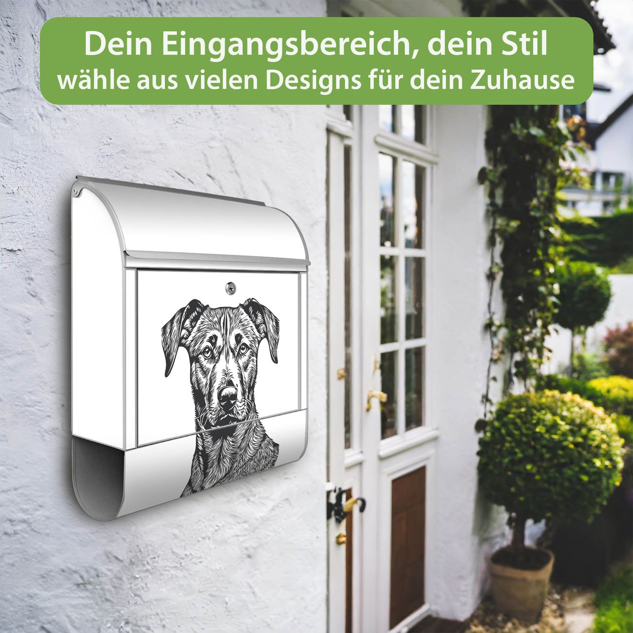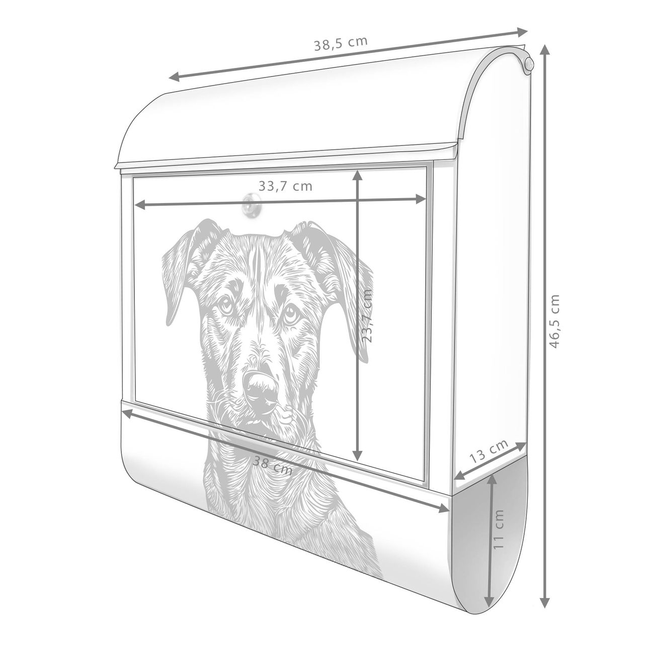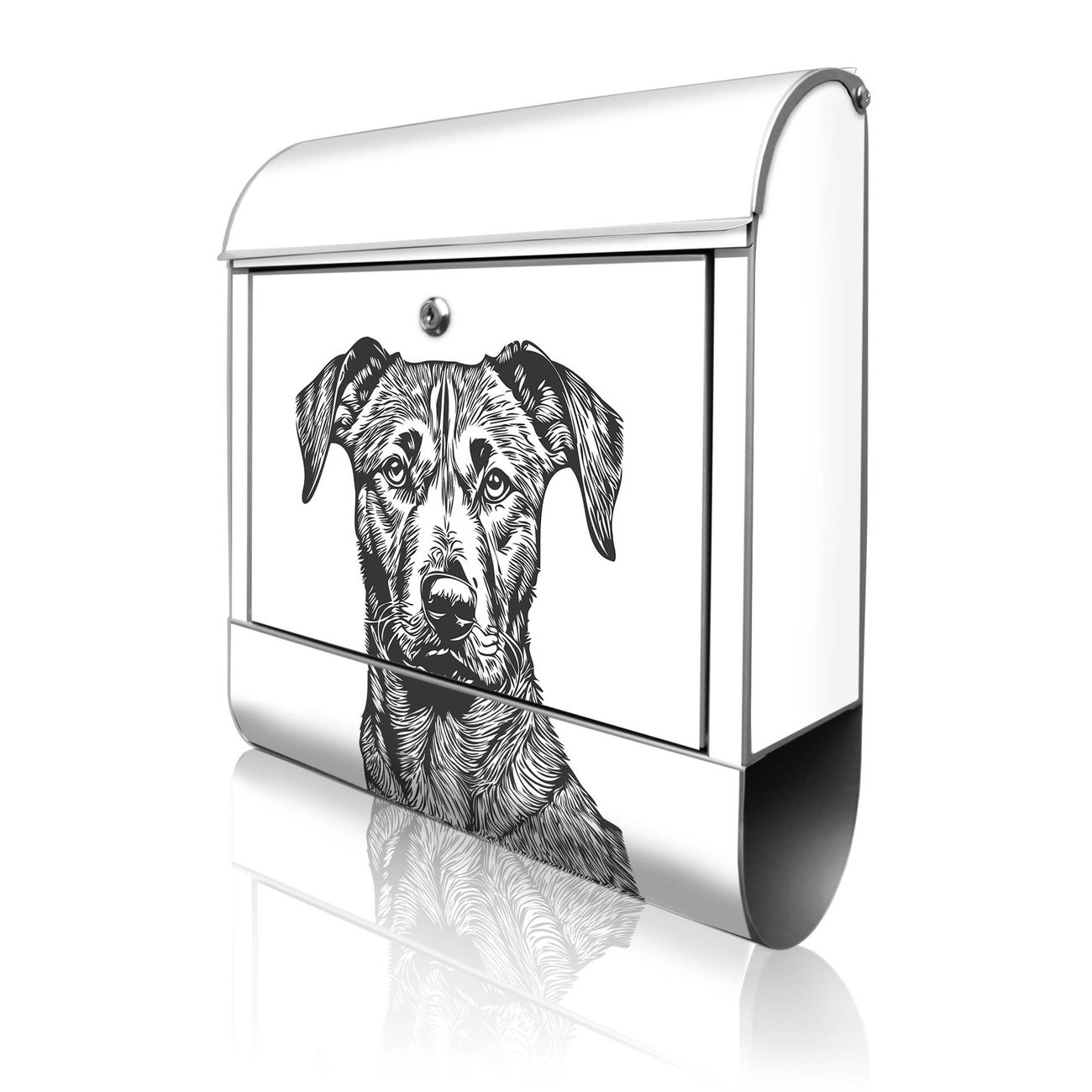Großer Stahl Briefkasten Motiv Hundeskizze 1