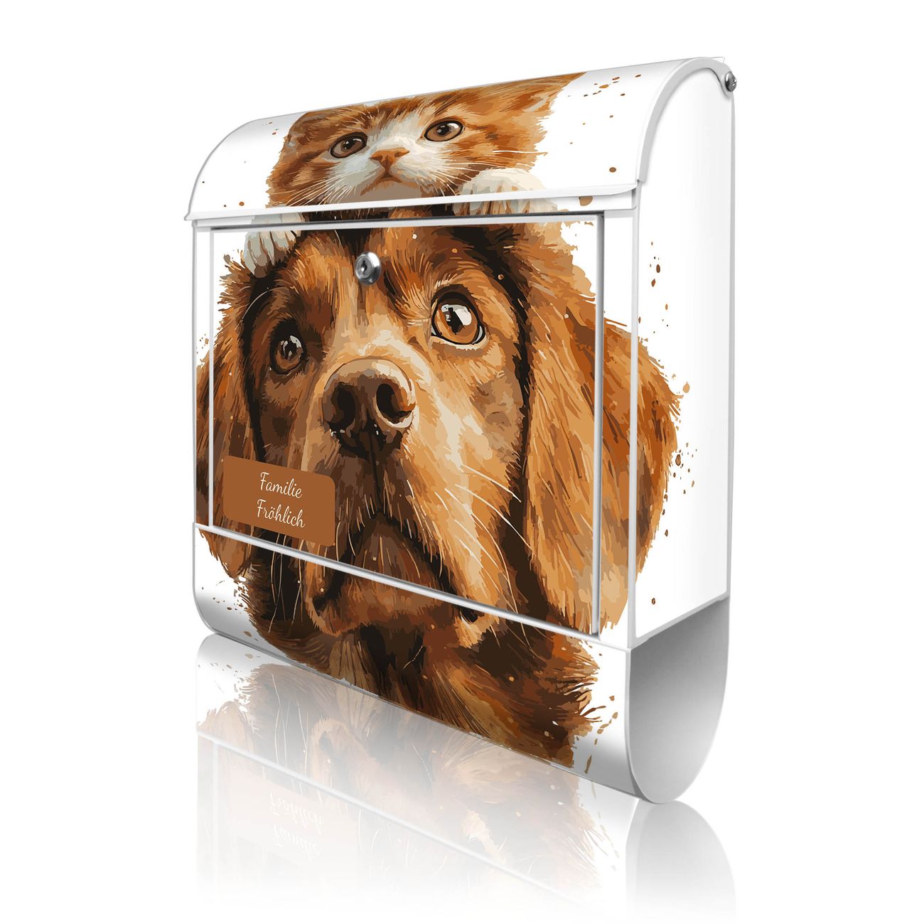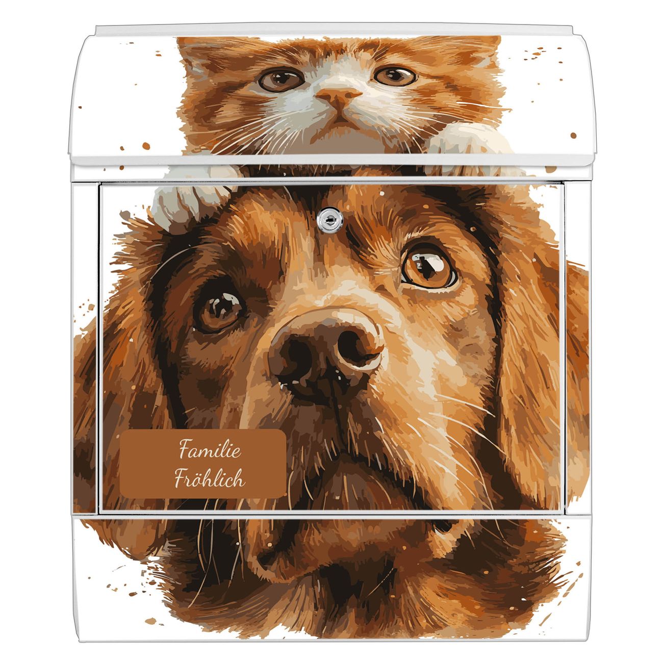 Großer Stahl Briefkasten Motiv Katzen- und Hundefreunde