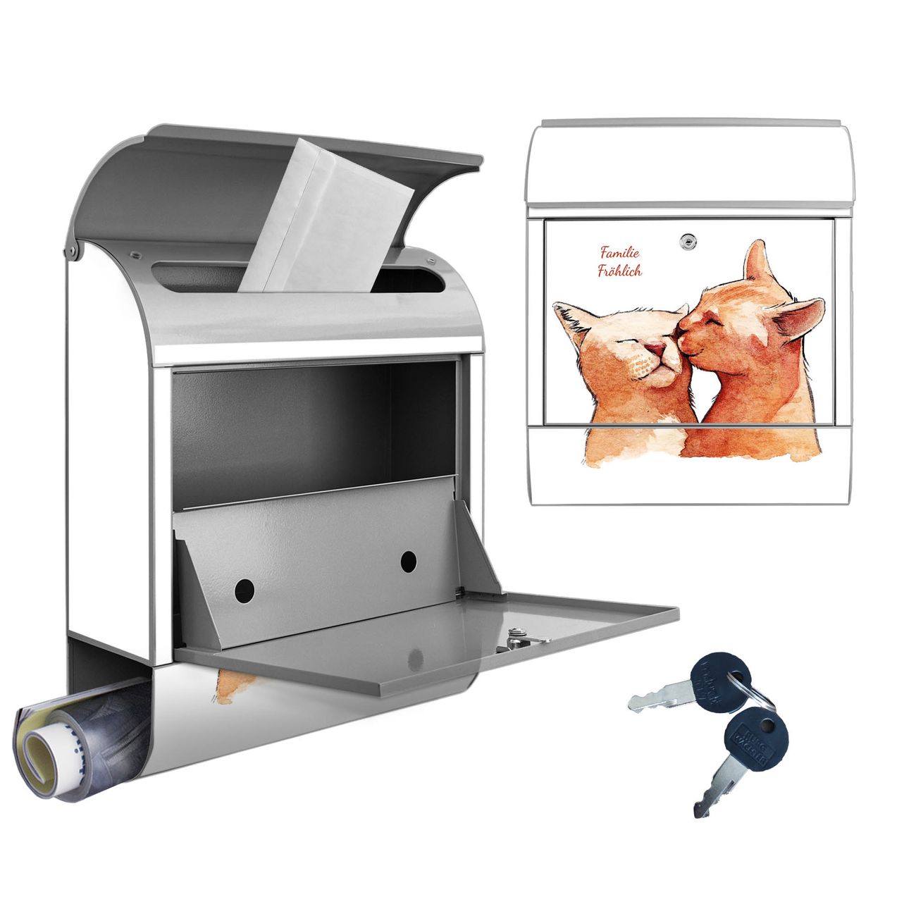 Großer Stahl Briefkasten Motiv Katzenkuss