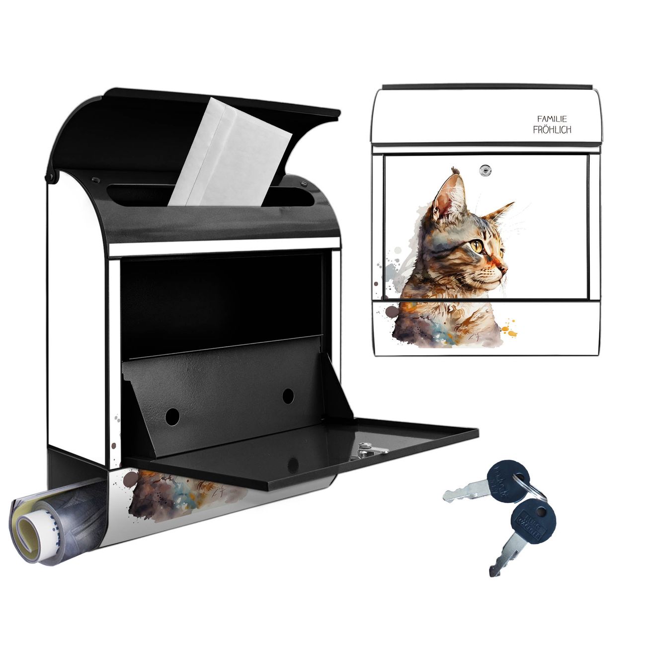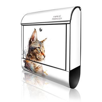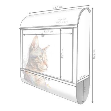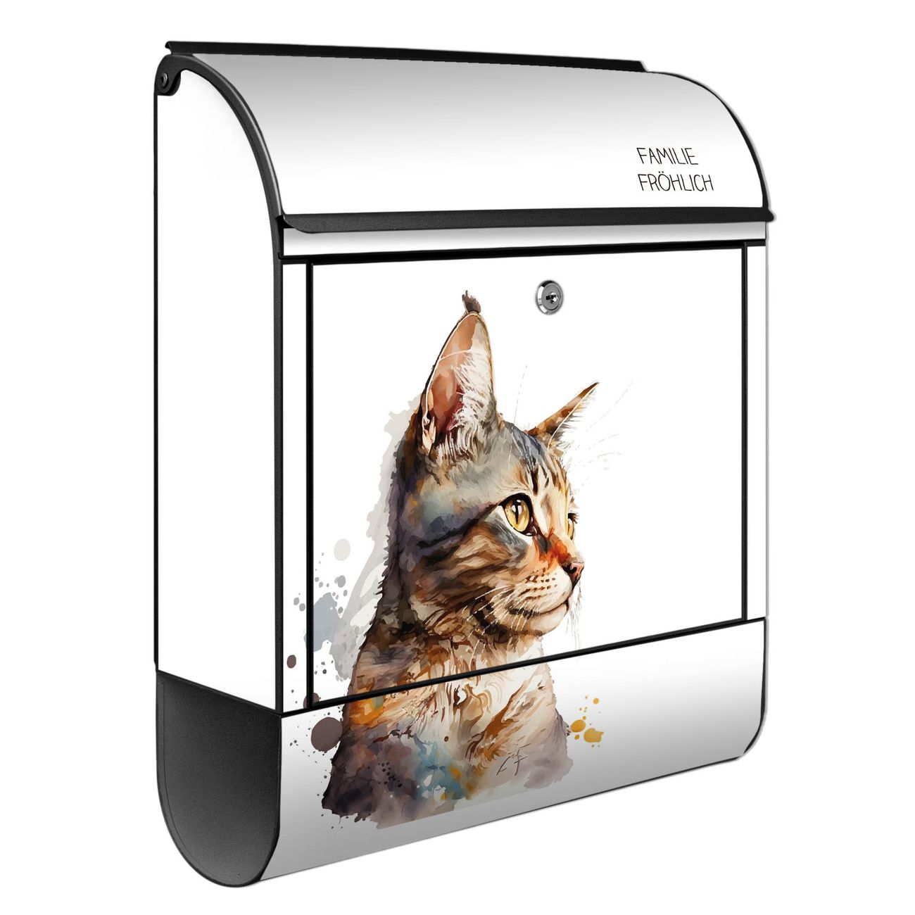 Großer Stahl Briefkasten Motiv Katzenportrait in Aquarell 2