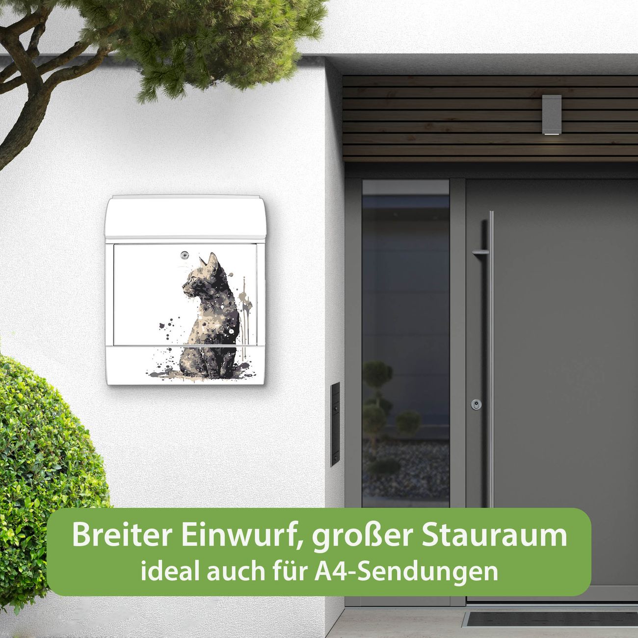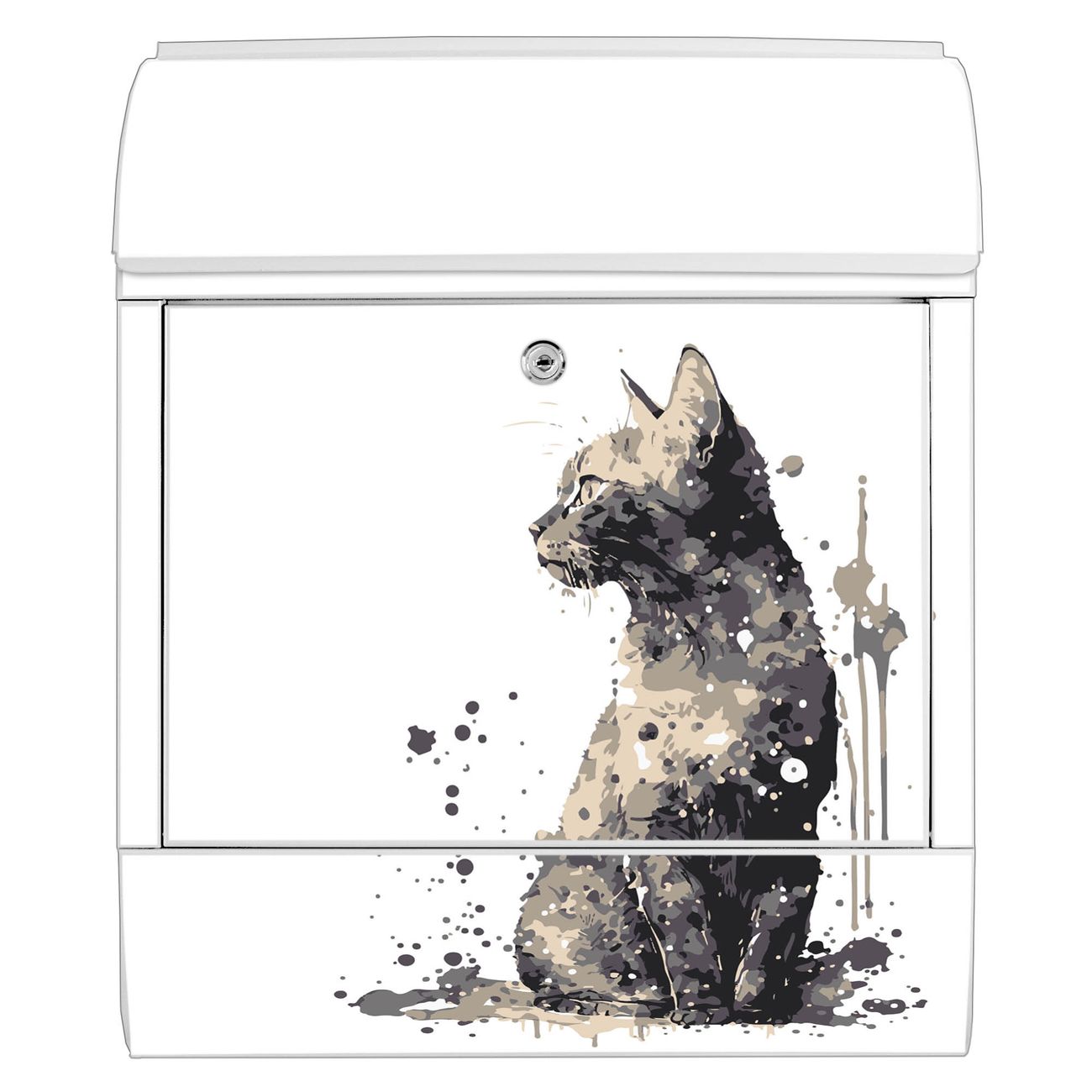 Großer Stahl Briefkasten Motiv Katzenportrait in Aquarell 4