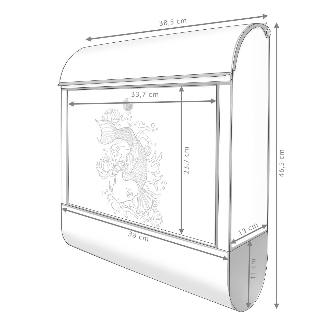 DESIGN: Der Postkasten mit Motiv Motiv Koi 2 hat ein sehr ansprechendes und ausgefallenes Design, damit entlocken Sie Ihren Nachbarn und dem Postboten ein Lächeln. Heben Sie Sich von der tristen grauen Masse ab, ohne auf Funktionalität zu verzichten. DETAILS: Der Postkasten besteht aus pulverbeschichtetem Stahl. Er ist 38x46x12,5cm groß. Das Motiv besteht aus einer wetter- und UV-resistenten Folie, die mit einem Schutzlaminat überzogen ist, sodass der Briefkasten zusätzlich vor Kratzern geschützt ist. Der Briefkasten wird mit Montagematerial, zusätzlich zwei Schlüssel sowie einer Bohrschablone geliefert. NUTZEN: Sie können diesen Briefkasten sowohl als Wandbriefkasten montieren oder einen passenden Ständer kaufen und als Standbriefkasten einbetonieren. Die Größe bietet genügend Platz für Sendungen aller Art, der Einwurf fasst auch größere A4 Sendungen. BANJADO: Ihr Briefkasten wird in Sachsen in einer kleinen Manufaktur von Hand veredelt. Die Motivfolie ist lösungsmittelfrei und schutzlaminiert für einen langen Halt. Wir legen großen Wert auf die Verbindung von Funktionalität und Design. Sie erhalten Handarbeit aus Sachsen.