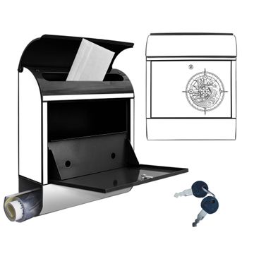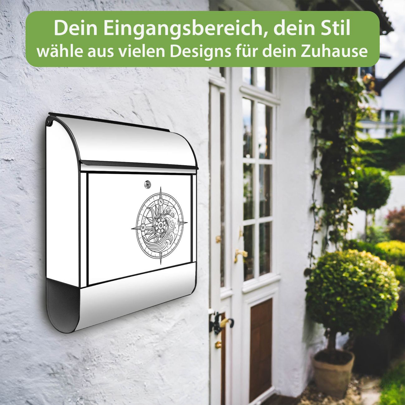 DESIGN: Der Postkasten mit Motiv Motiv Kompass 2 hat ein sehr ansprechendes und ausgefallenes Design, damit entlocken Sie Ihren Nachbarn und dem Postboten ein Lächeln. Heben Sie Sich von der tristen grauen Masse ab, ohne auf Funktionalität zu verzichten. DETAILS: Der Postkasten besteht aus pulverbeschichtetem Stahl. Er ist 38x46x12,5cm groß. Das Motiv besteht aus einer wetter- und UV-resistenten Folie, die mit einem Schutzlaminat überzogen ist, sodass der Briefkasten zusätzlich vor Kratzern geschützt ist. Der Briefkasten wird mit Montagematerial, zusätzlich zwei Schlüssel sowie einer Bohrschablone geliefert. NUTZEN: Sie können diesen Briefkasten sowohl als Wandbriefkasten montieren oder einen passenden Ständer kaufen und als Standbriefkasten einbetonieren. Die Größe bietet genügend Platz für Sendungen aller Art, der Einwurf fasst auch größere A4 Sendungen. BANJADO: Ihr Briefkasten wird in Sachsen in einer kleinen Manufaktur von Hand veredelt. Die Motivfolie ist lösungsmittelfrei und schutzlaminiert für einen langen Halt. Wir legen großen Wert auf die Verbindung von Funktionalität und Design. Sie erhalten Handarbeit aus Sachsen.
