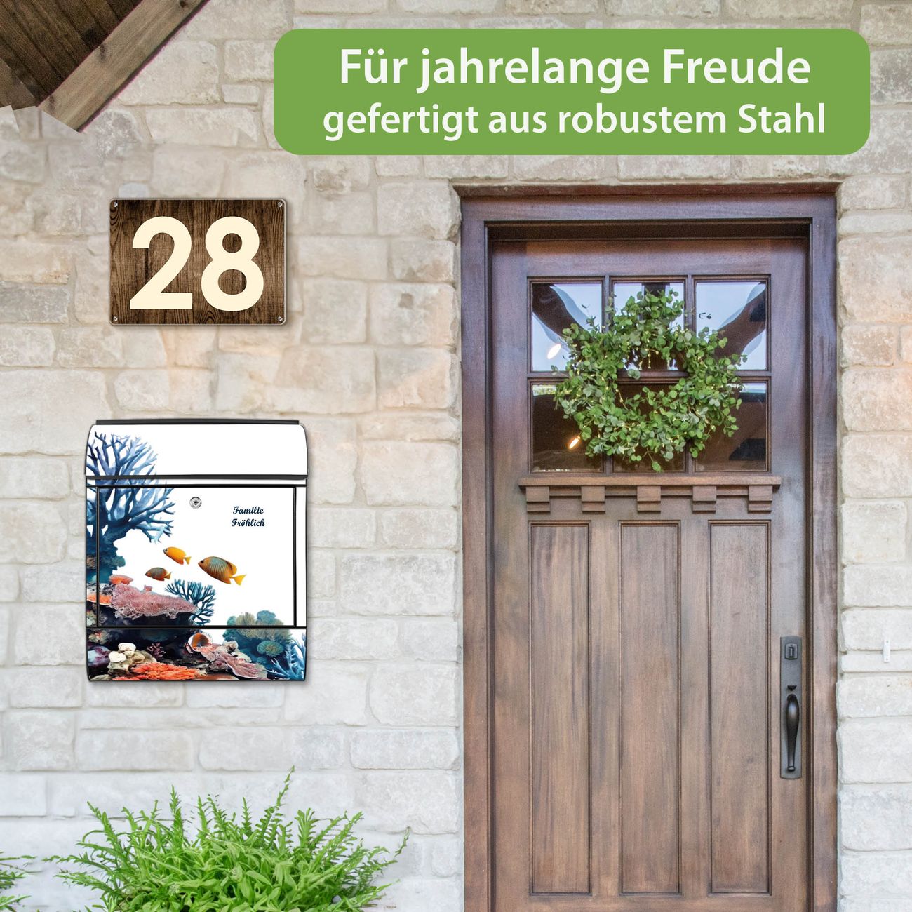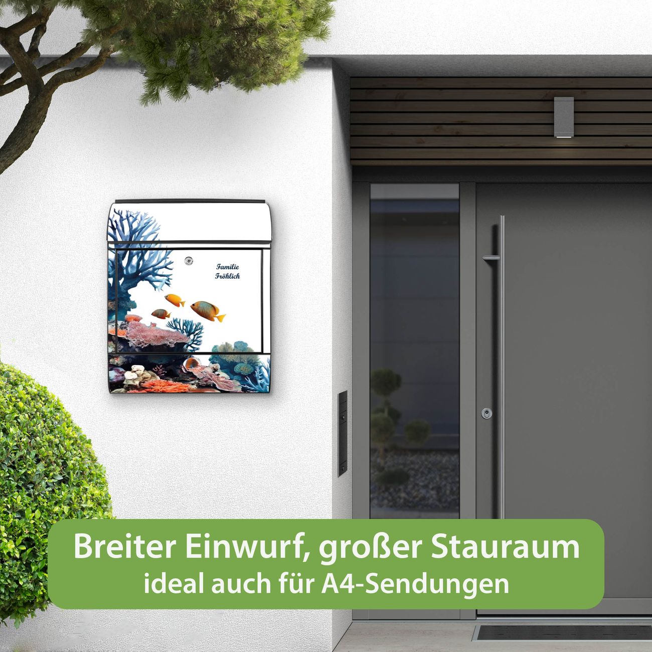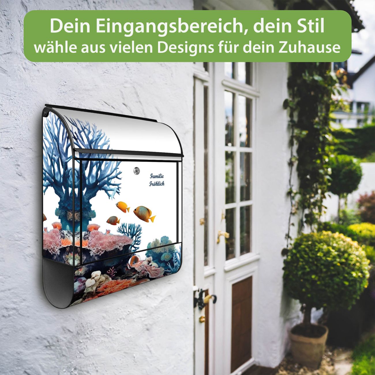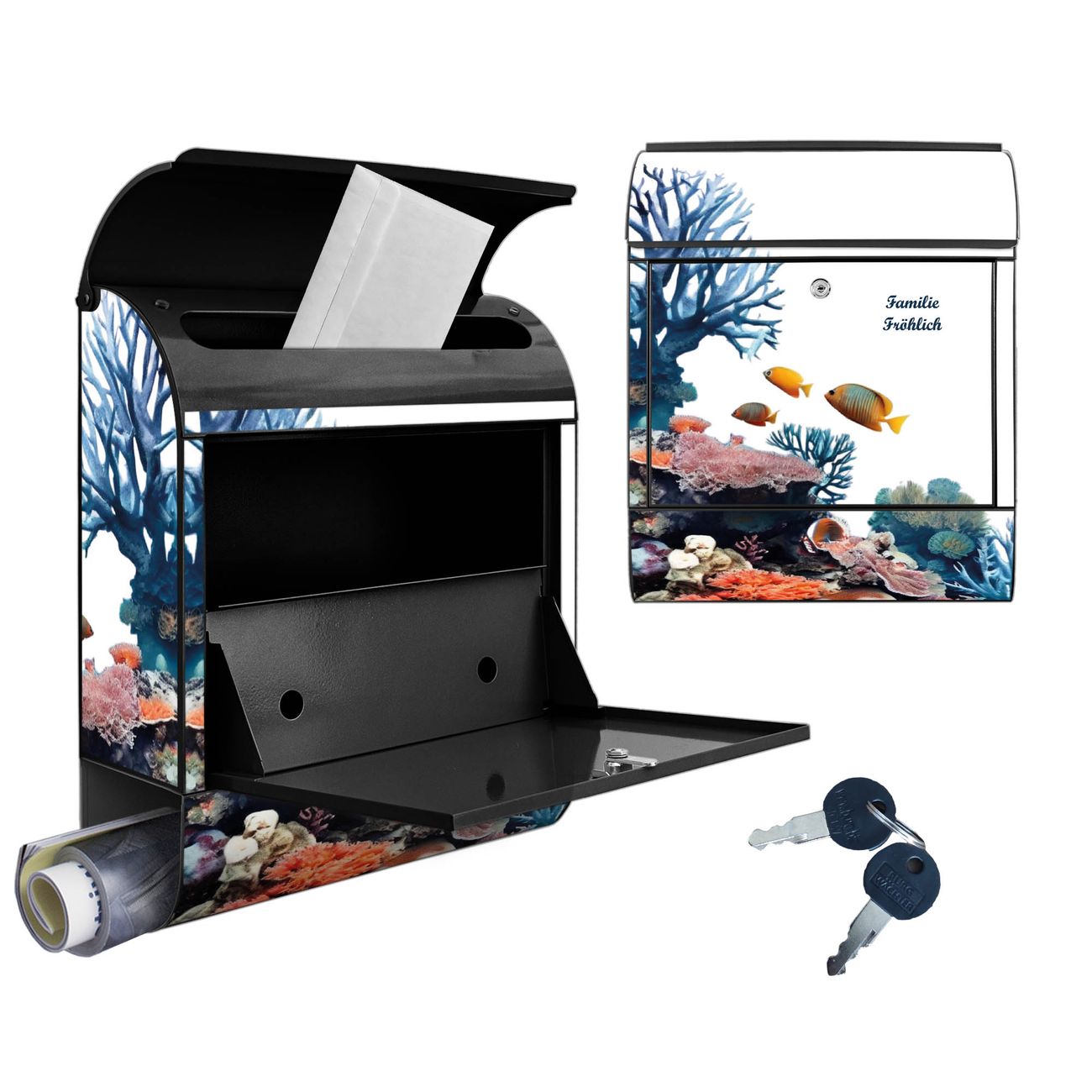 Großer Stahl Briefkasten Motiv Korallenriff und Fische