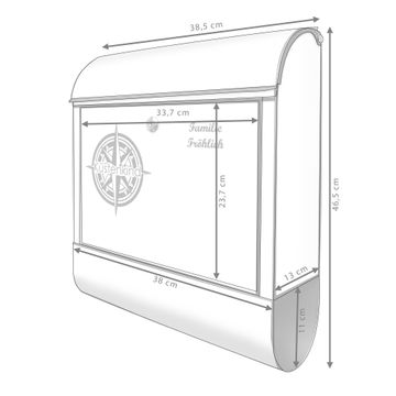 Großer Stahl Briefkasten Motiv Küstenkind Kompass 2