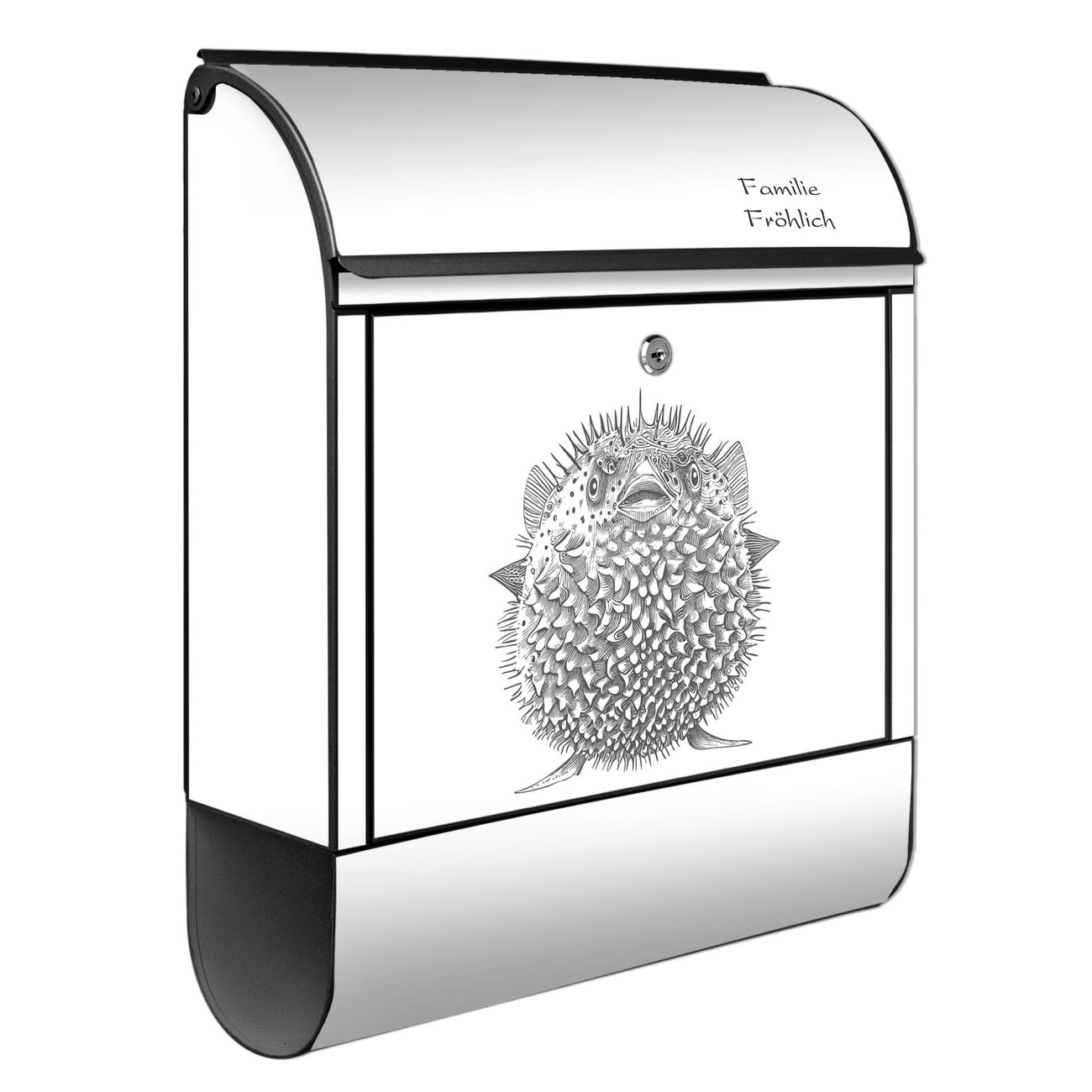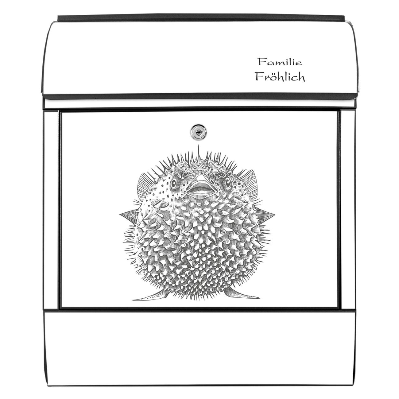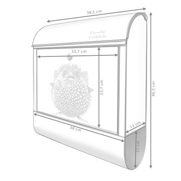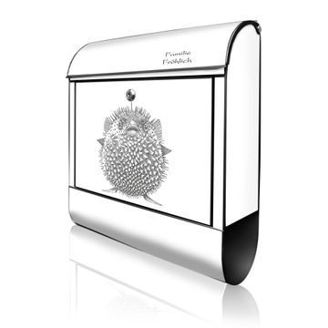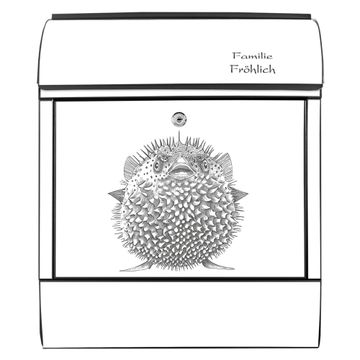 Großer Stahl Briefkasten Motiv Kugelfisch 2